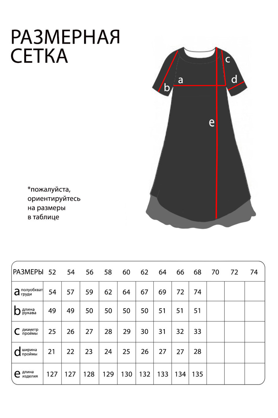 Таблица размеров