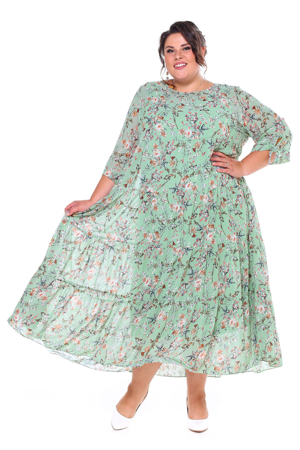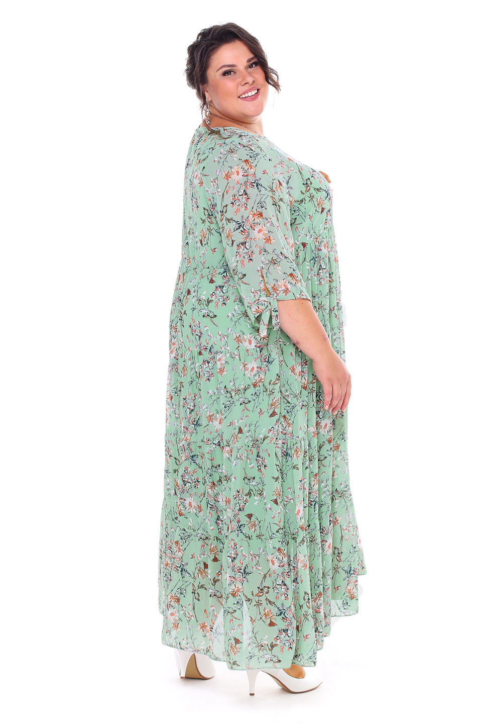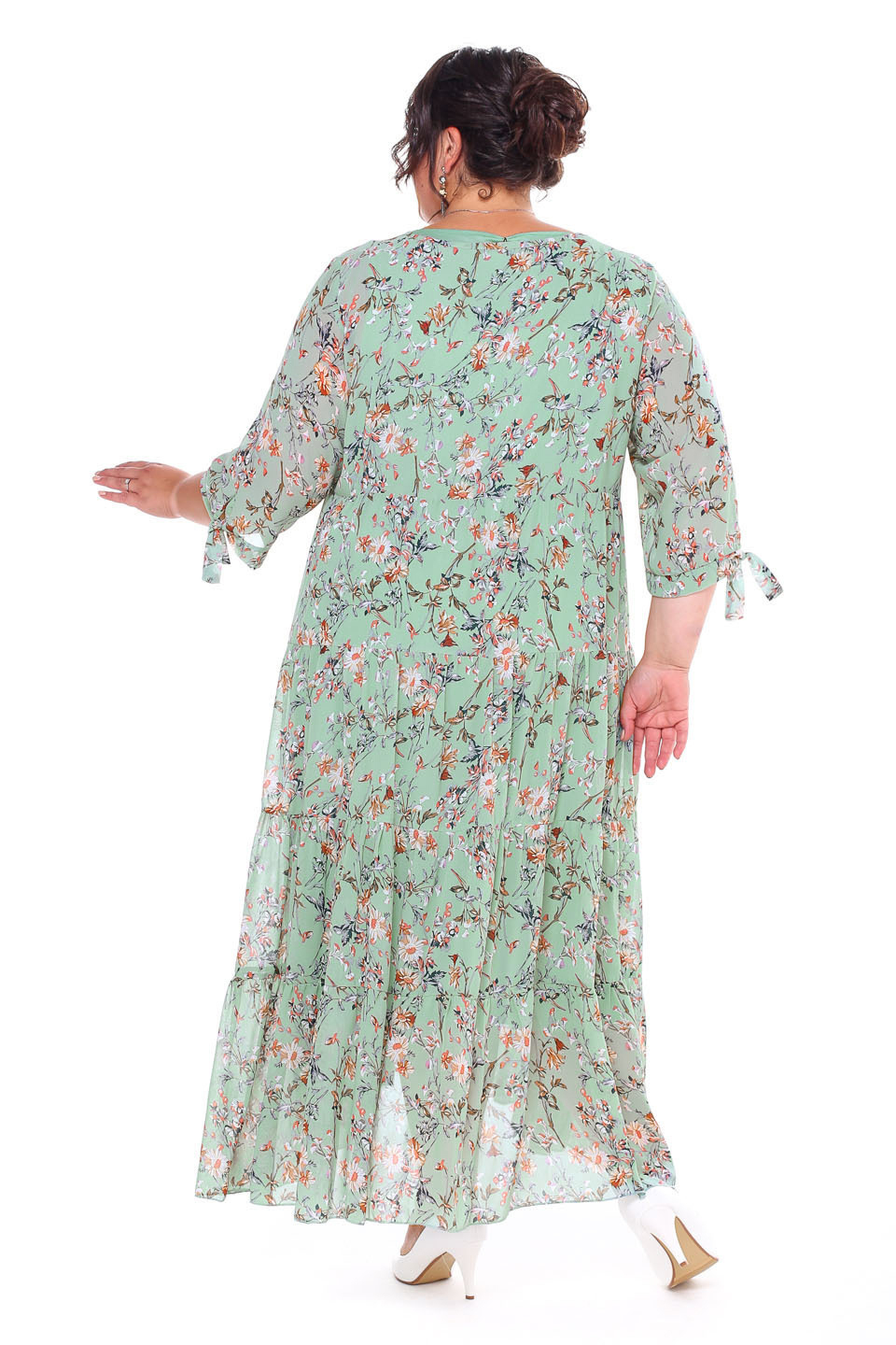 Платье шифон ярусы "цветы" длинное мята