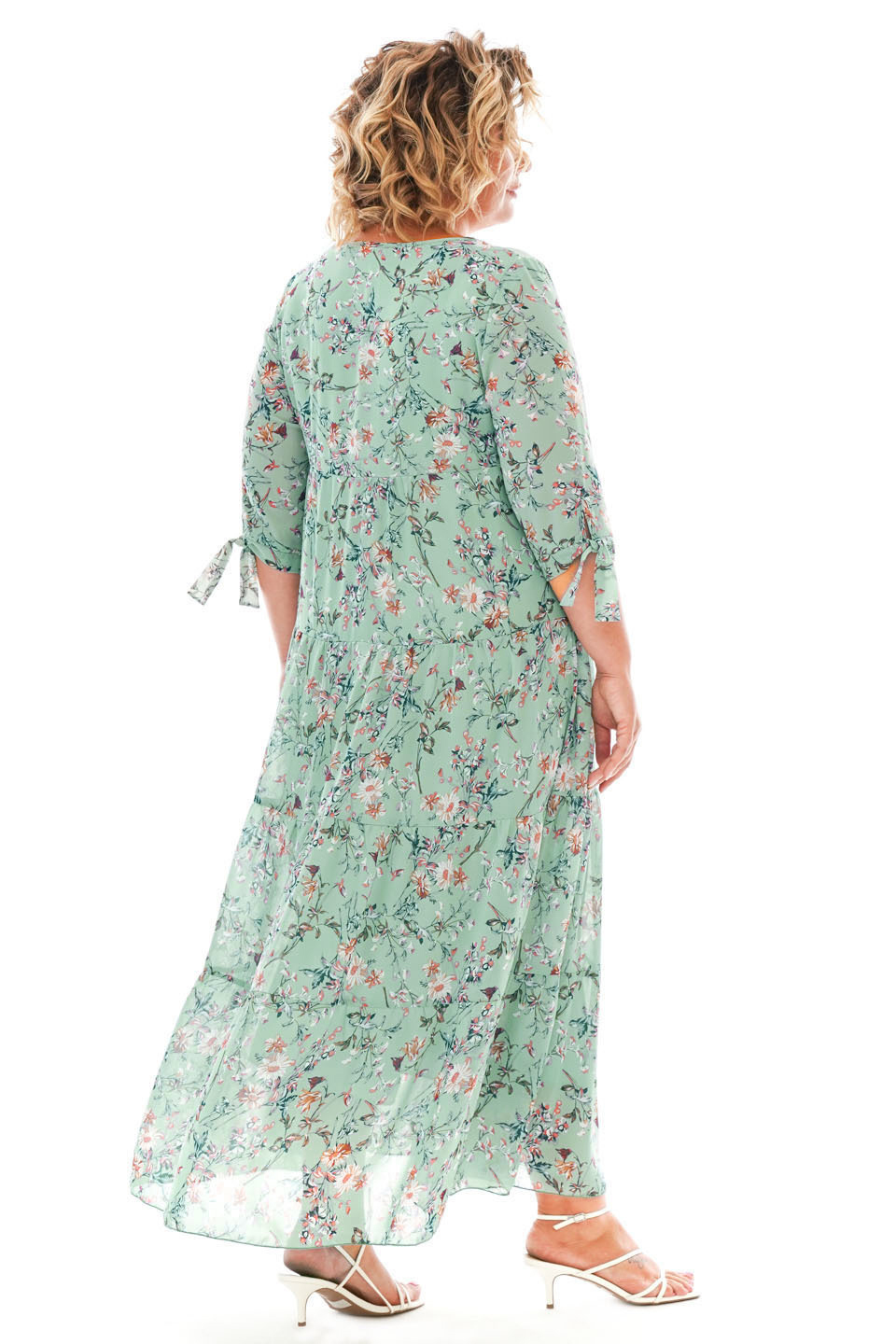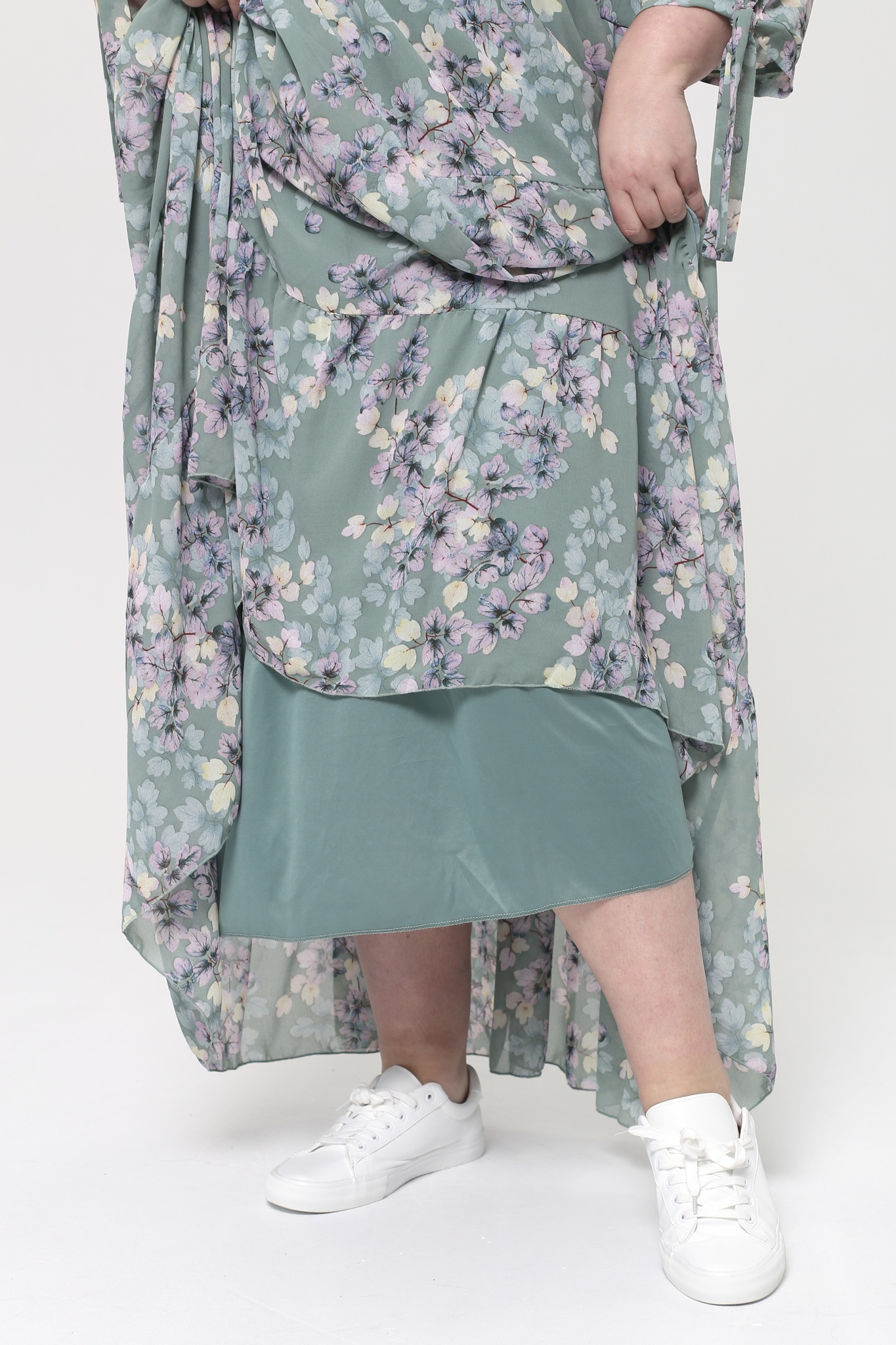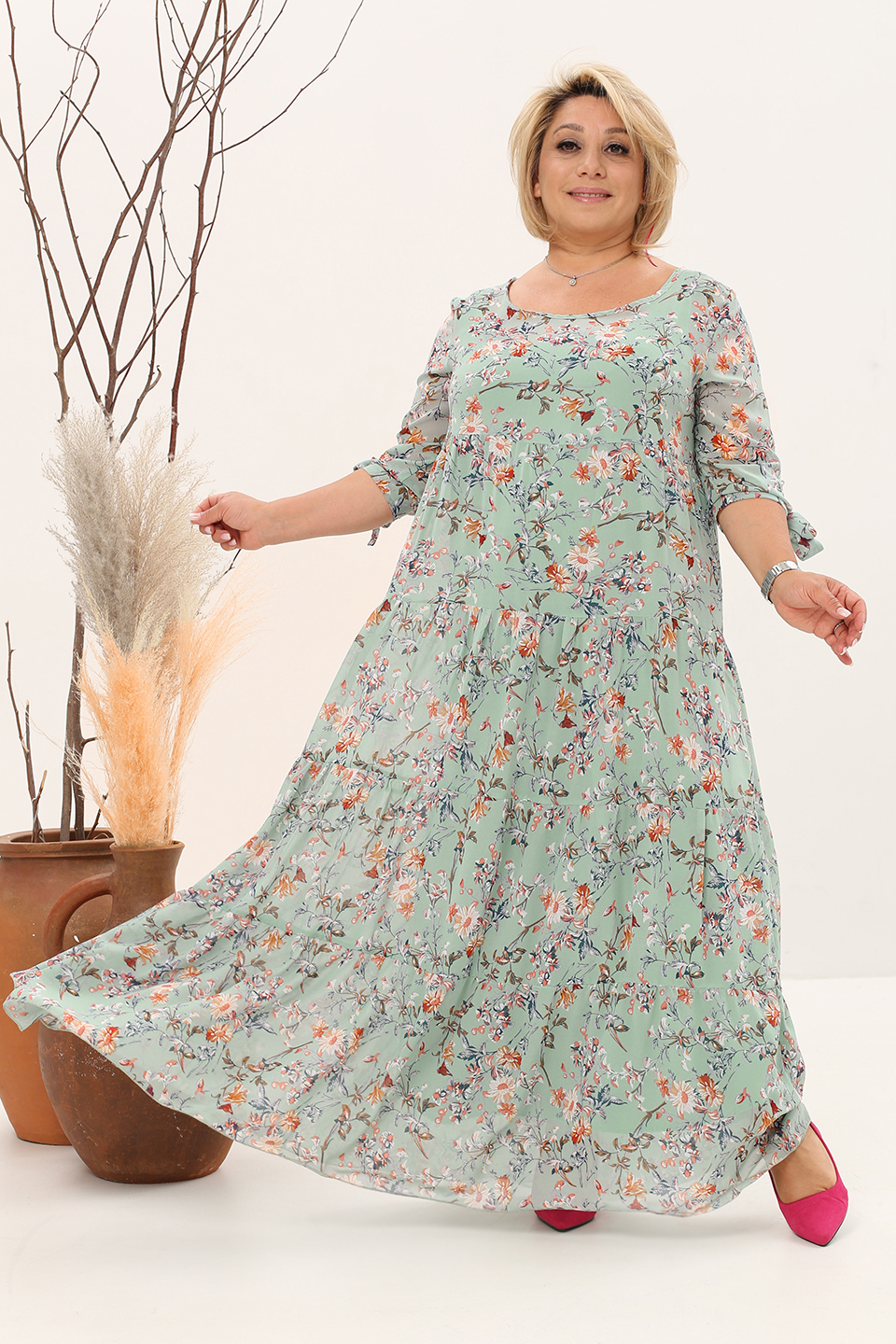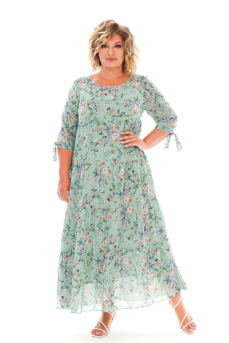 Платье шифон ярусы "цветы" длинное мята
