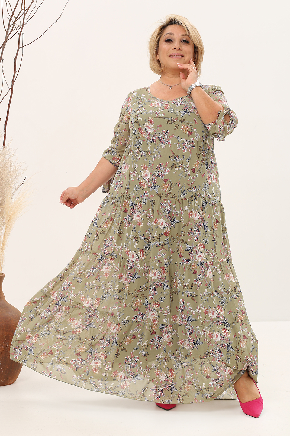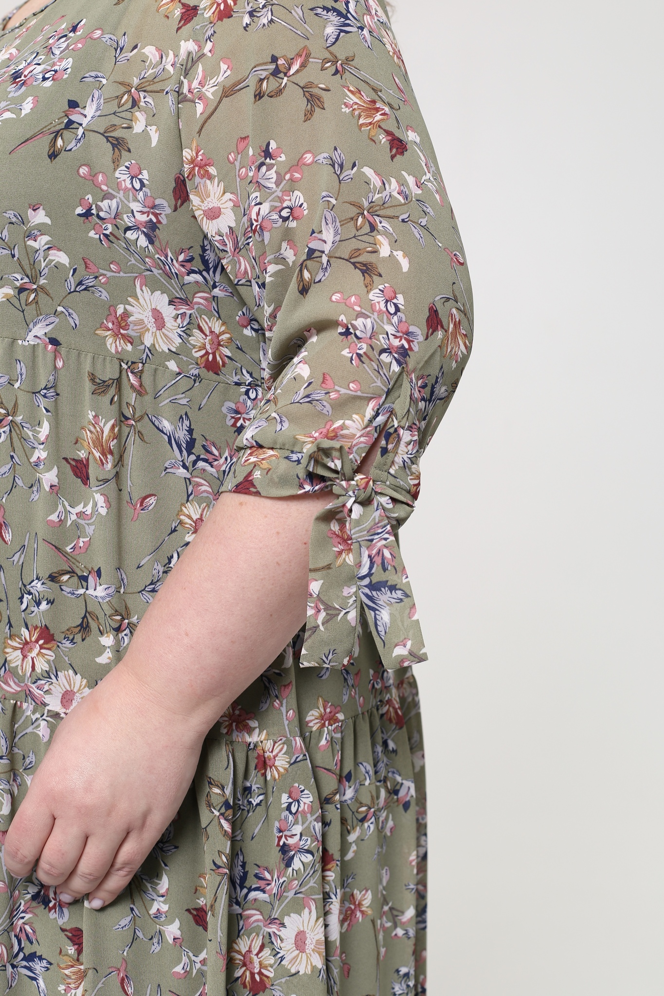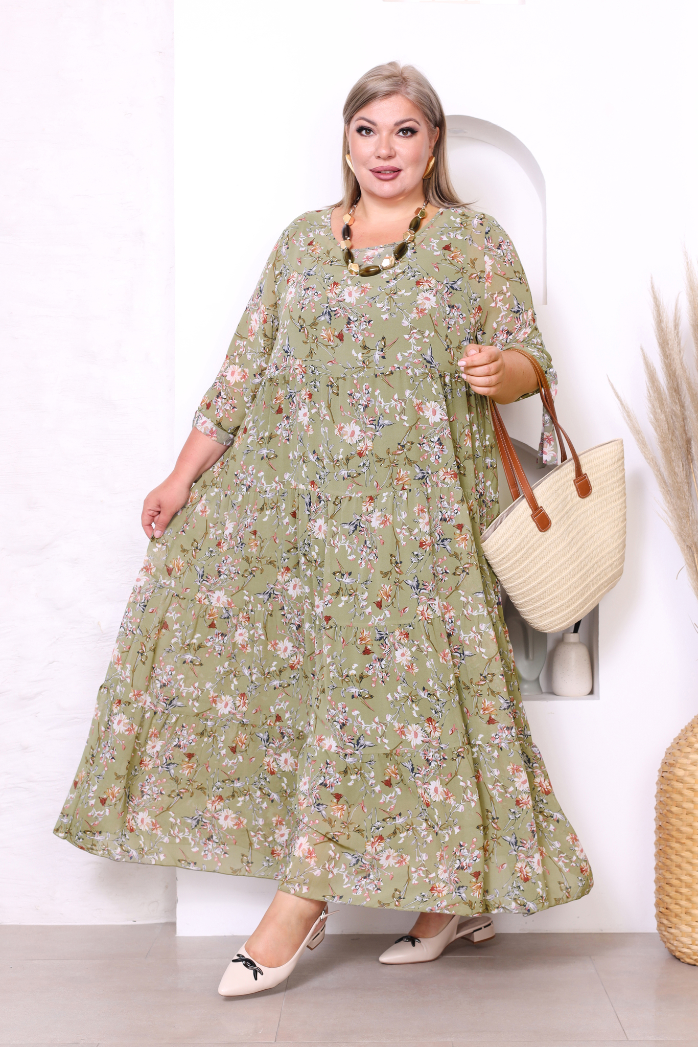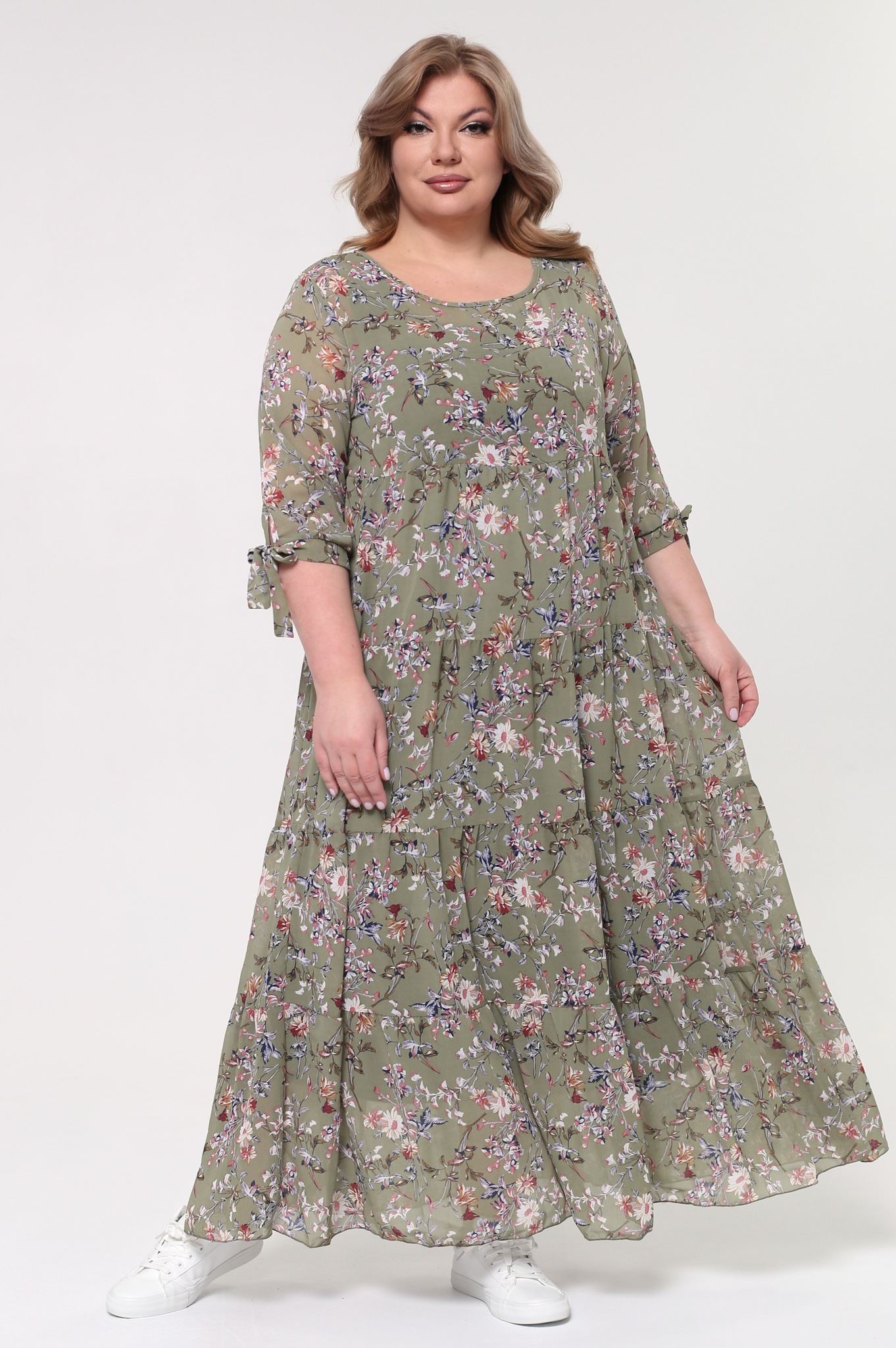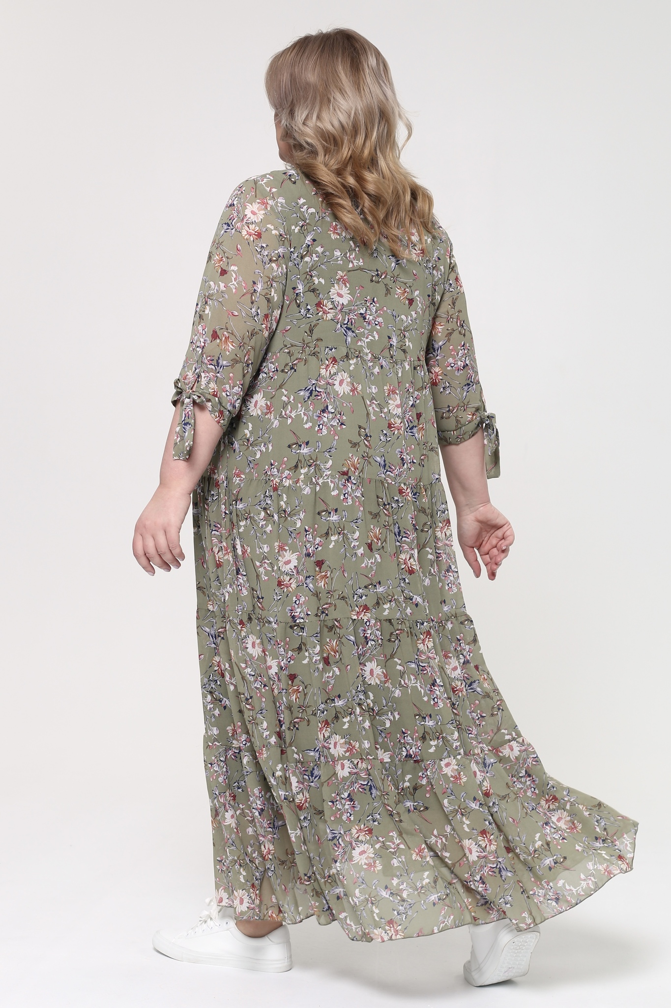 Легкое шифоновое платье "макси" свободного силуэта на съемной подкладе. имеет круглый вырез и рукава с манжетами на завязках. платье отрезное по линии груди с многоярусной расклешенной юбкой. свободный крой не сковывает движений и скрывает несовершенства фигуры. модель приятна телу, хорошо сидит и красиво обыгрывает фигуру. нежный принт по всему изделию добавляет образу динамичности. стильное платье в пол идеально подойдет для торжественных мероприятий разного характера и для летних прогулок. подчеркните лаконичность образа длинными серьгами и туфлями на высоких каблуках.