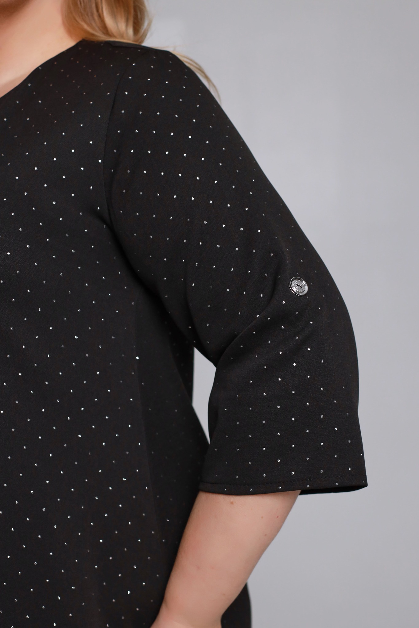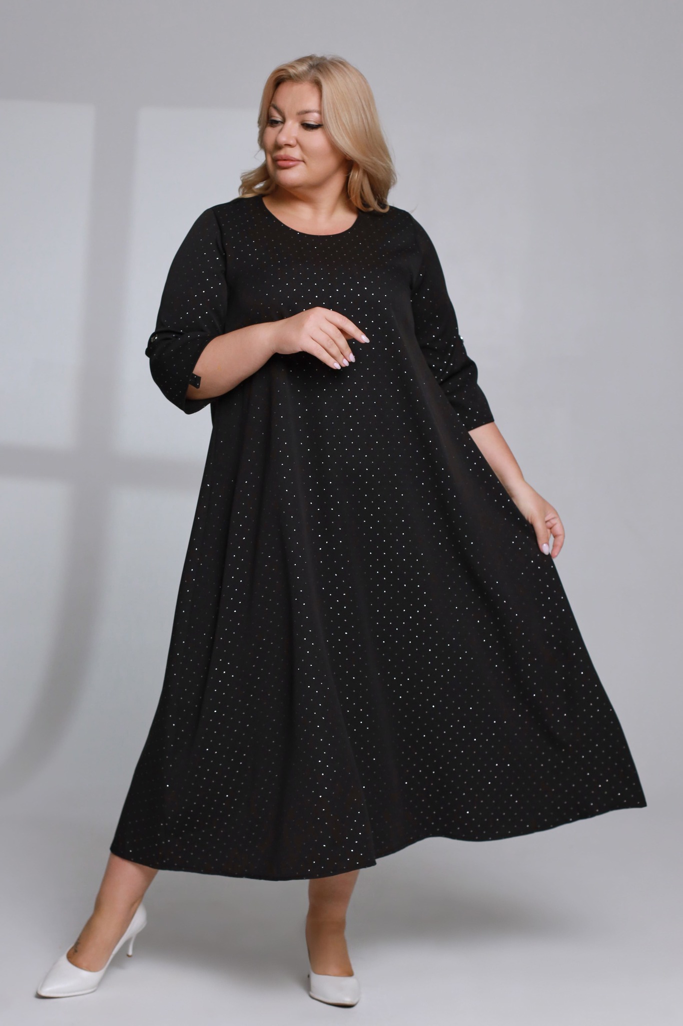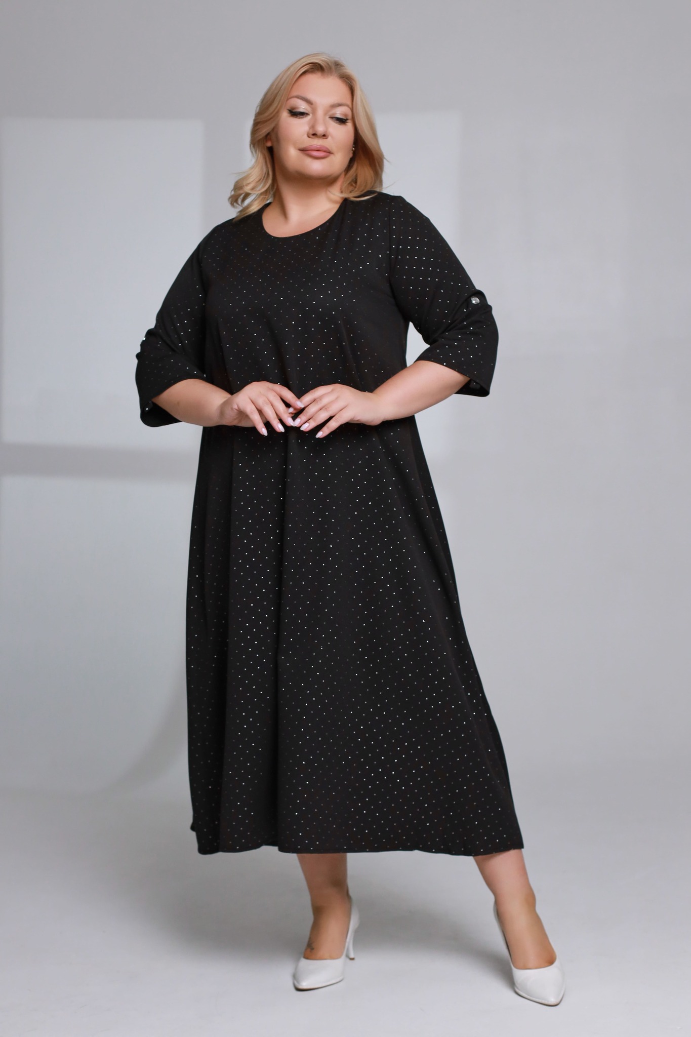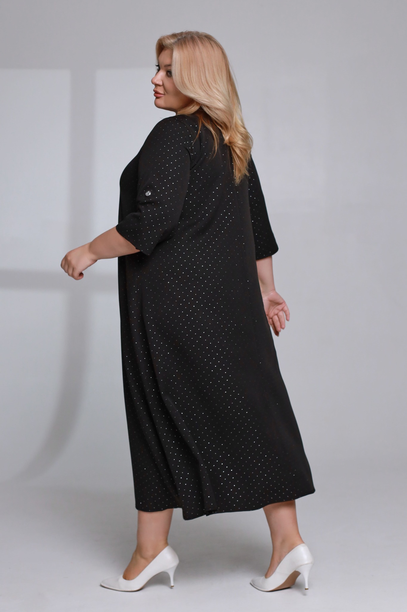 Платье Стильное платье из мягкого материала. модель имеет u-образный вырез. рукава длиной 3/4 можно присобрать, при желании, хлястиком. небольшие стразы по всему платью добавляют наряду блеск и изящество. свободный силуэт и мягкий материал искусно обыгрывают фигуру и дарят комфорт в течение всего дня. платье создано для того, чтобы подчеркивать достоинства и скрывать недостатки. стильный клатч и туфли на каблуках станут идеальным дополнением к нарядному образу. Параметры модели: Рост 173 см, Размер 54