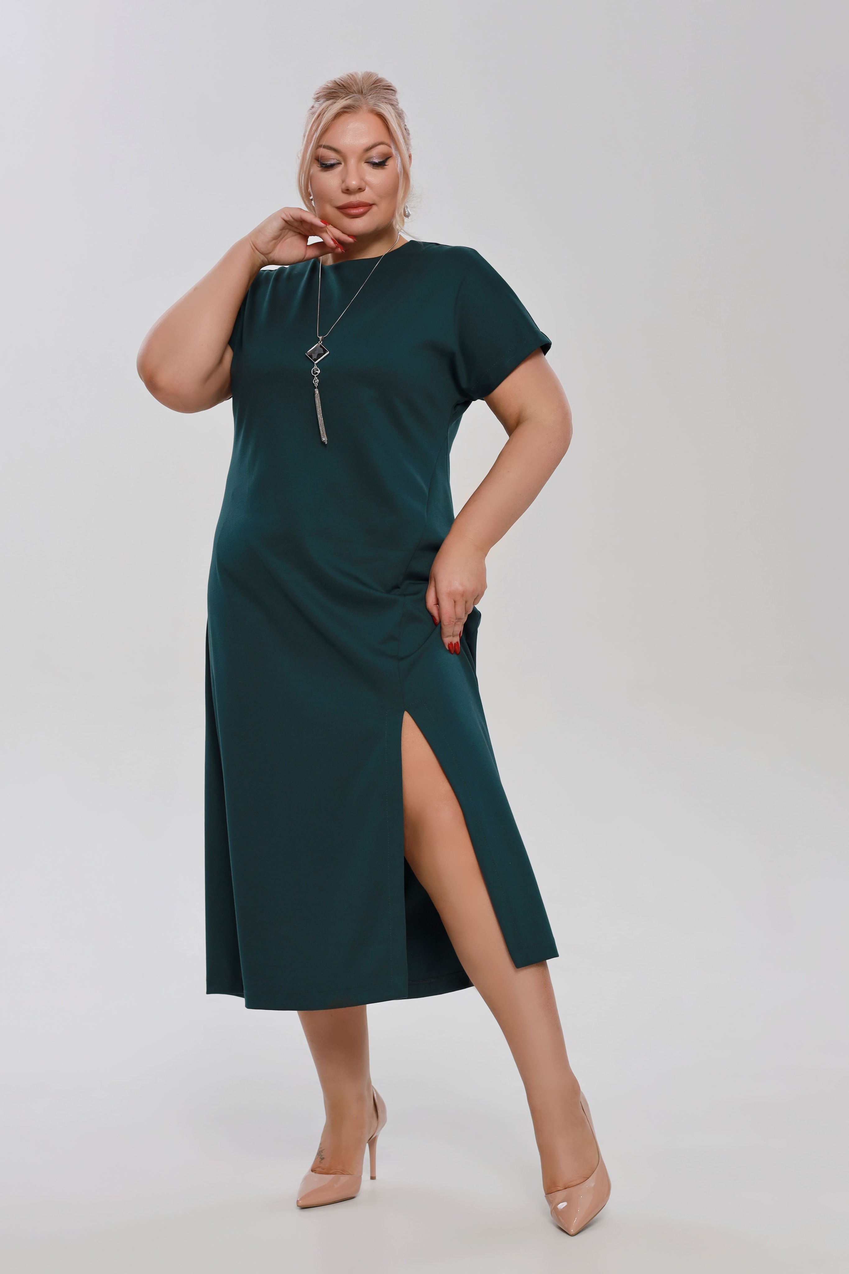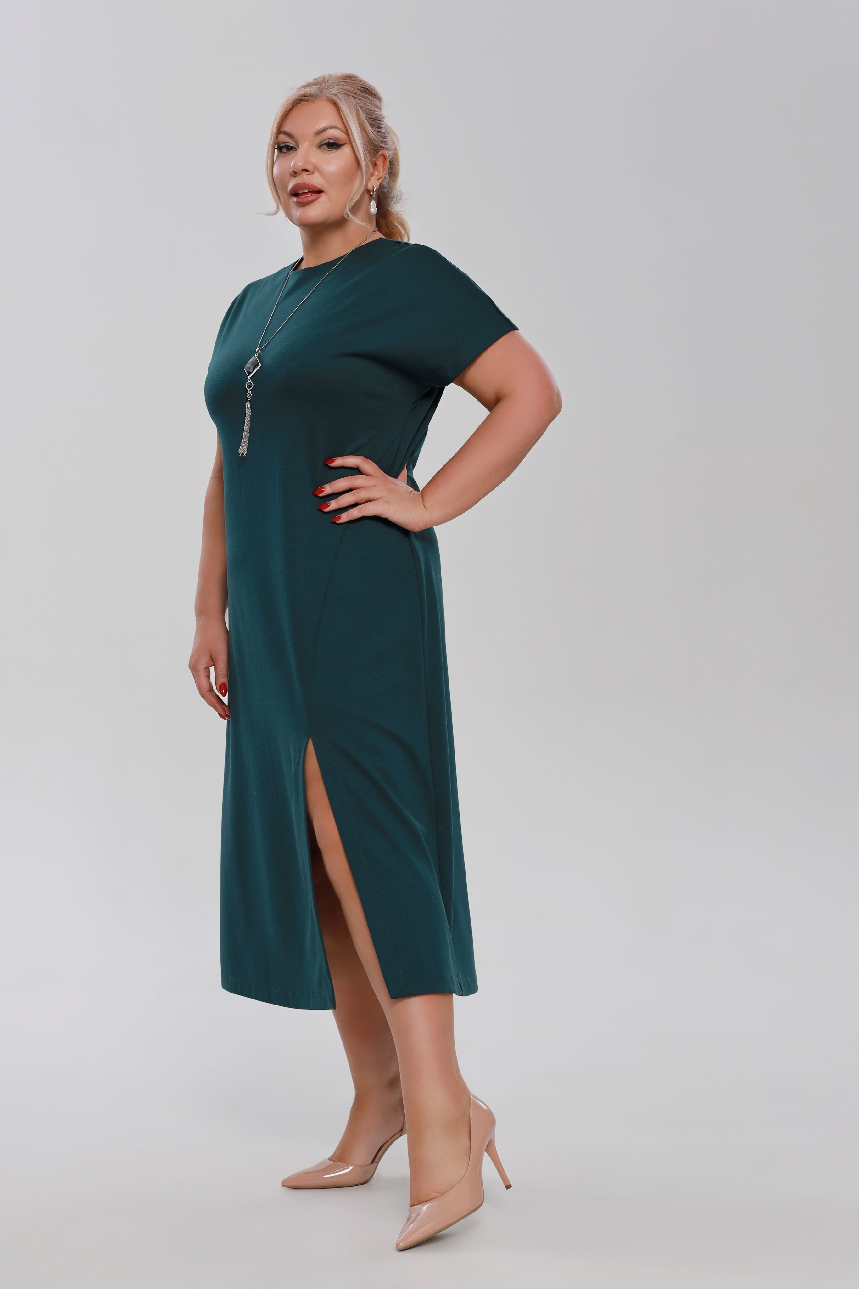 Платье "париж" однотонное с разрезом сбоку морская волна
