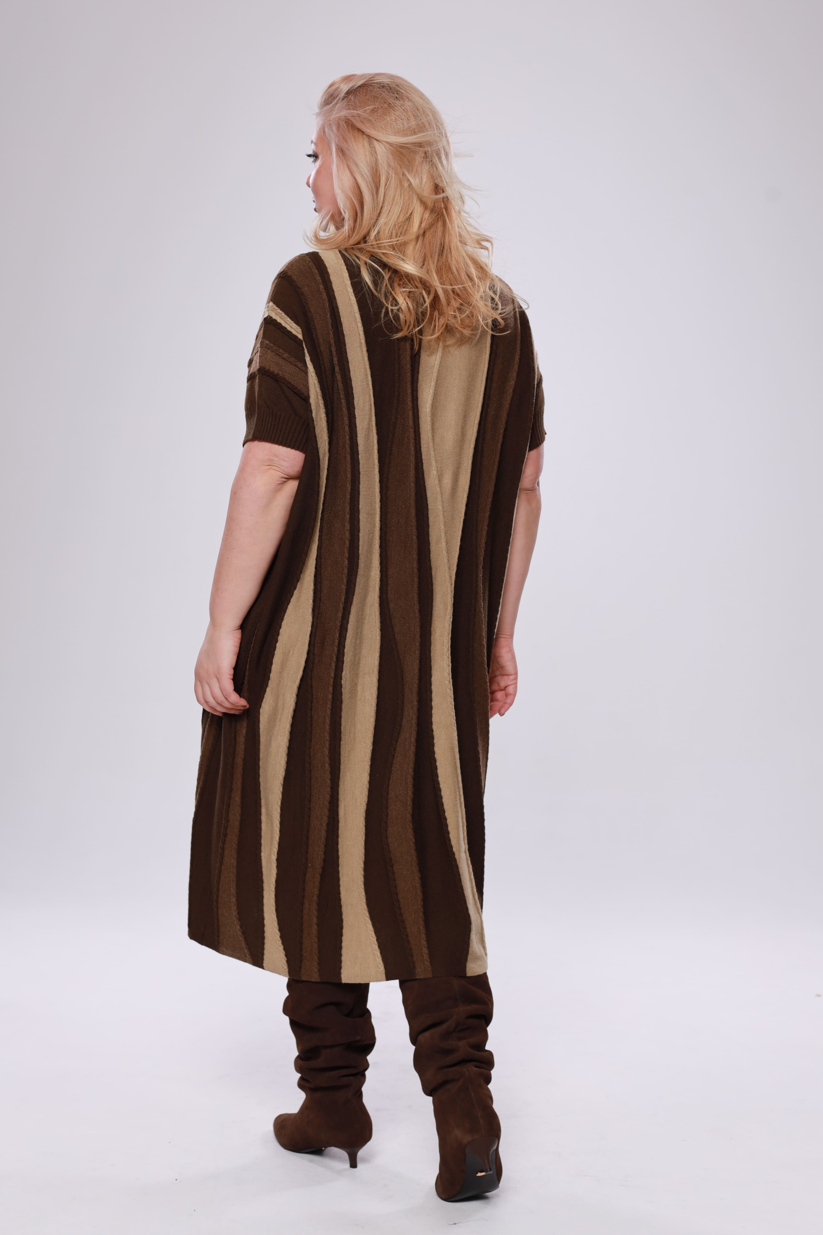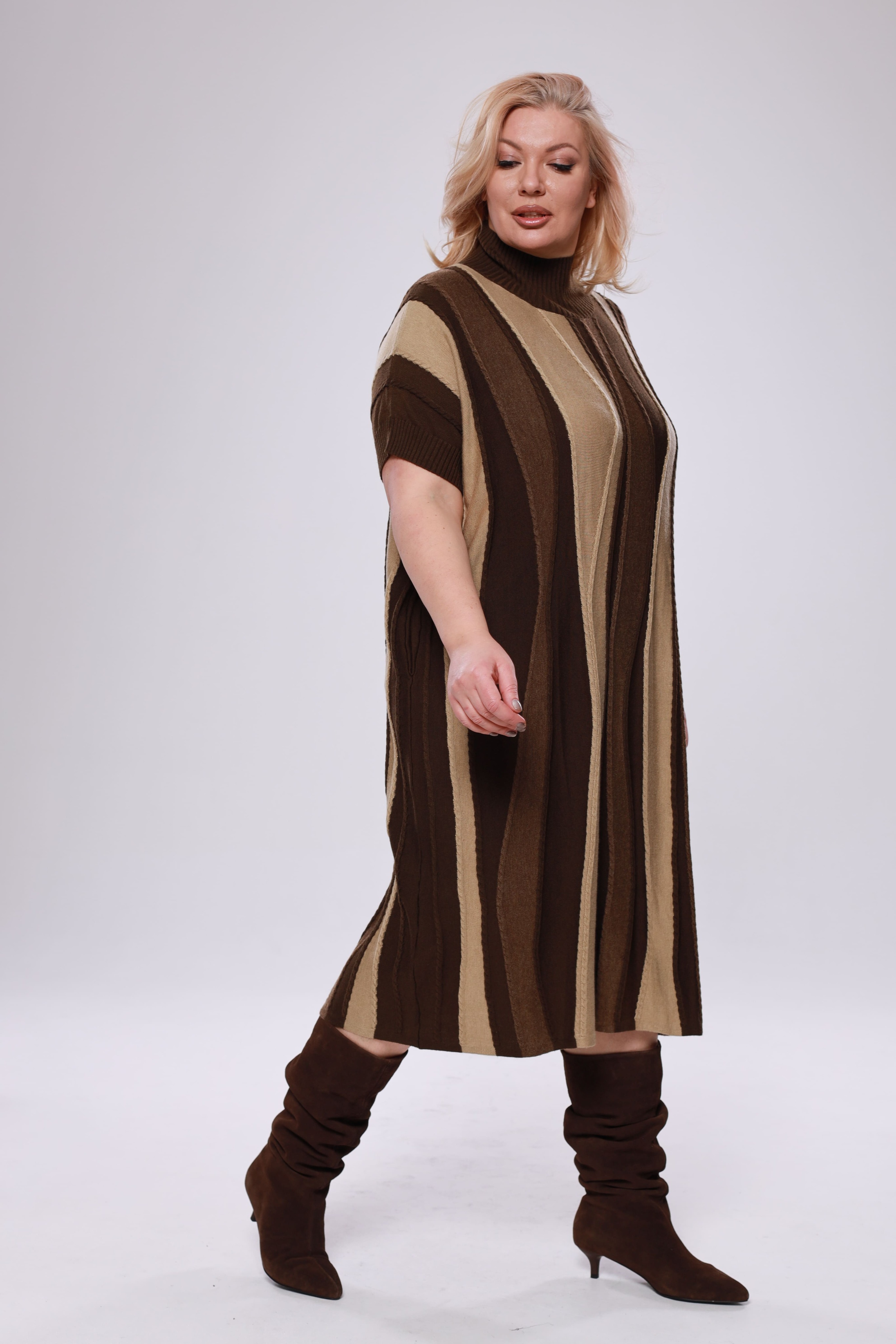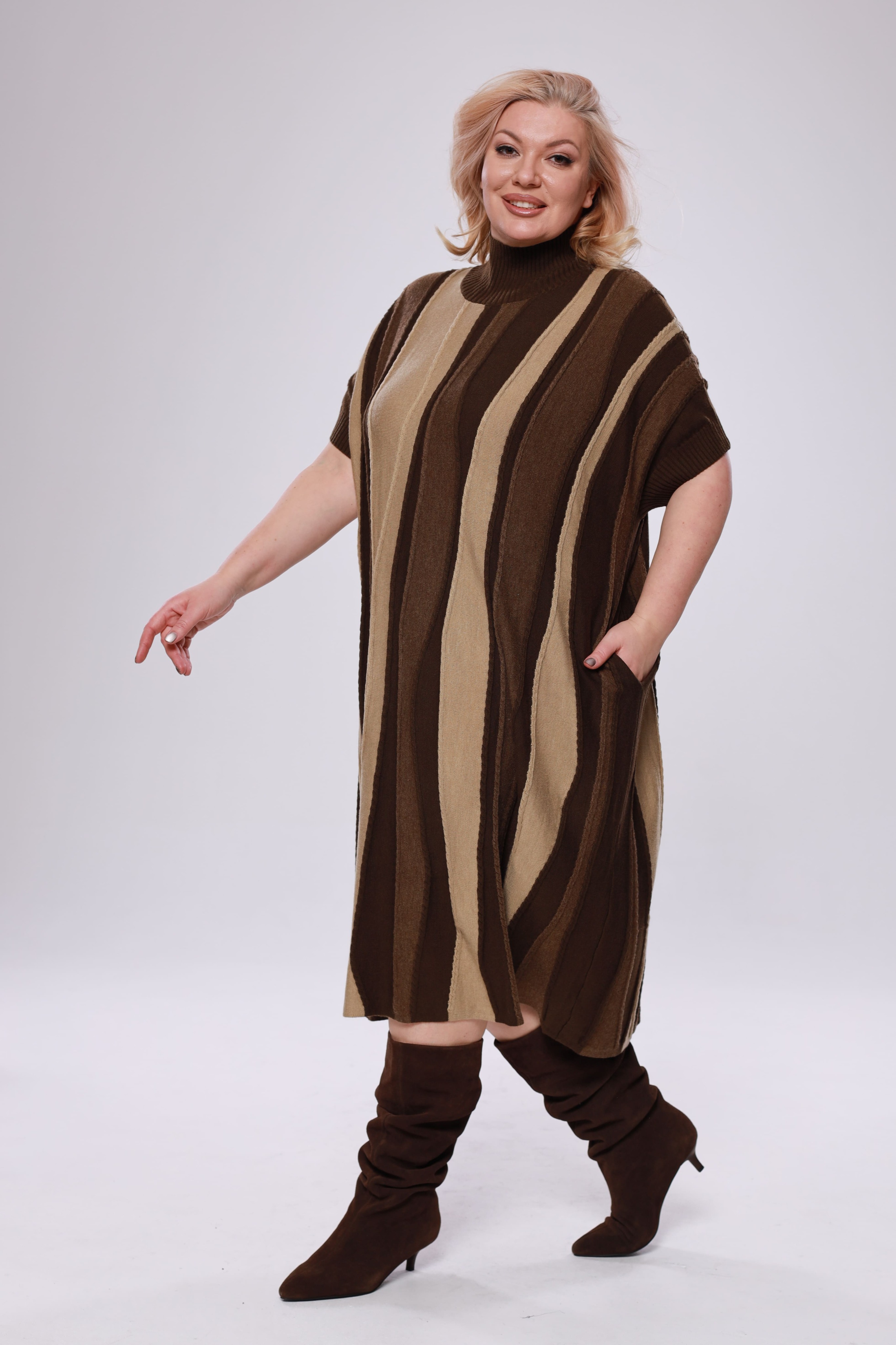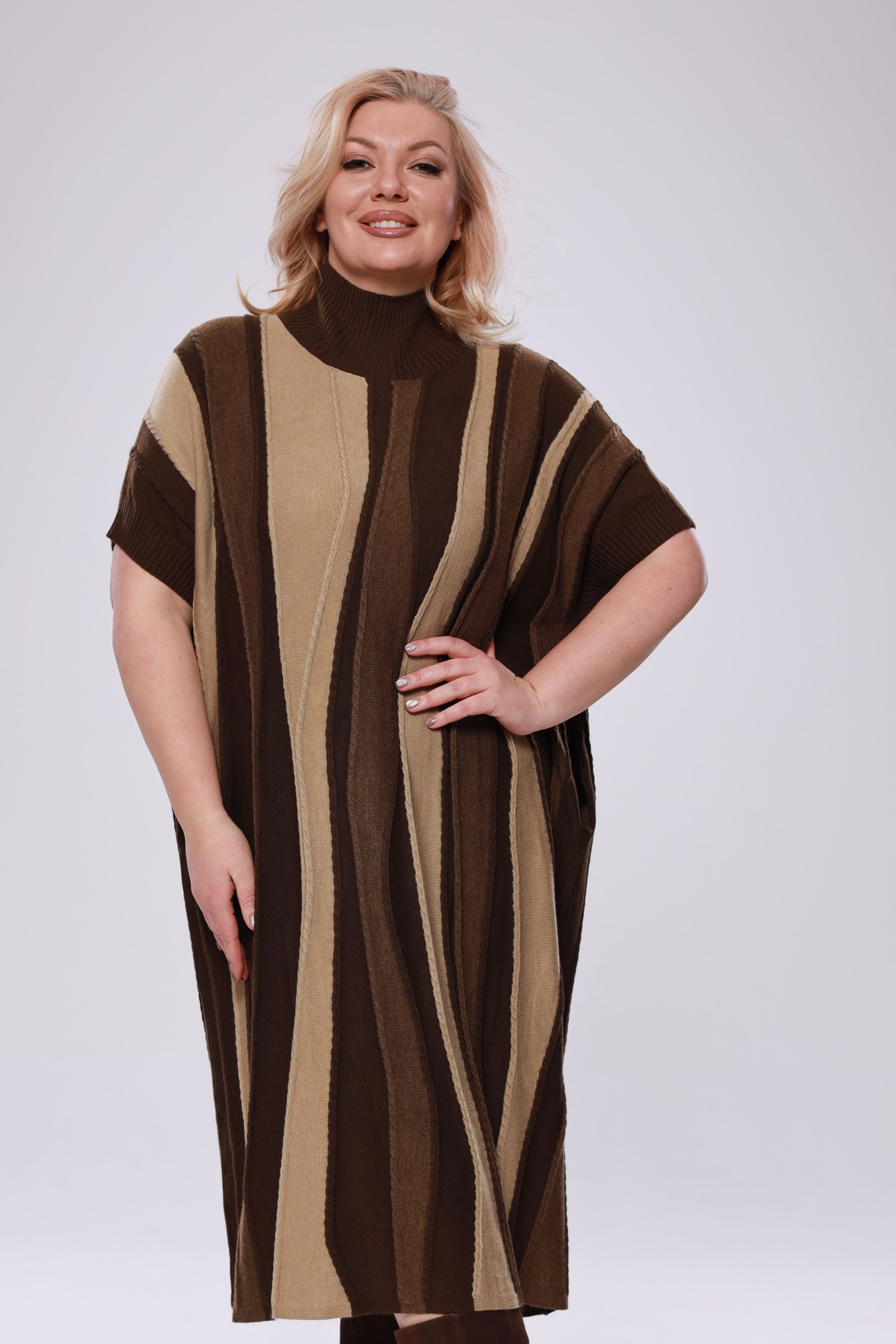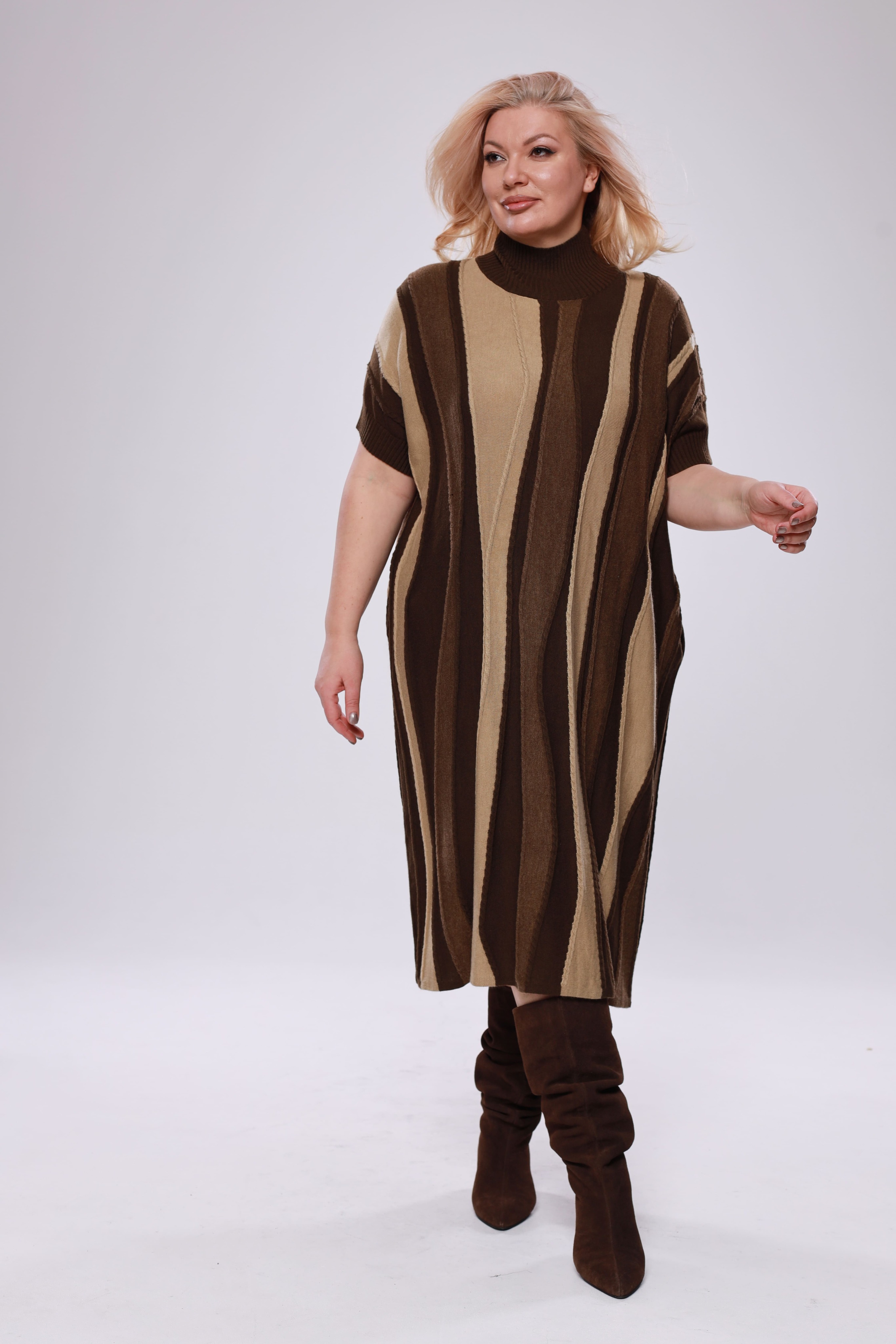 Элегантное платье-свитер из мягкого трикотажа и вязанного материала - идеальный выбор для прохладных дней, когда важно оставаться стильной и комфортной. модель имеет короткие приспущенные рукава. ворот с отворотом греет и защищает область шеи. благодаря своему крою и свободному силуэту, платье отлично подходит для женщин больших размеров, подчеркивая достоинства фигуры и создавая элегантный, женственный образ. модель легко сочетается с различными аксессуарами и обувью, что дает возможность создавать разнообразные образы — от строгого до более повседневного. создайте элегантный образ, который подчеркнет вашу индивидуальность и позволит чувствовать себя уверенно в любой ситуации.