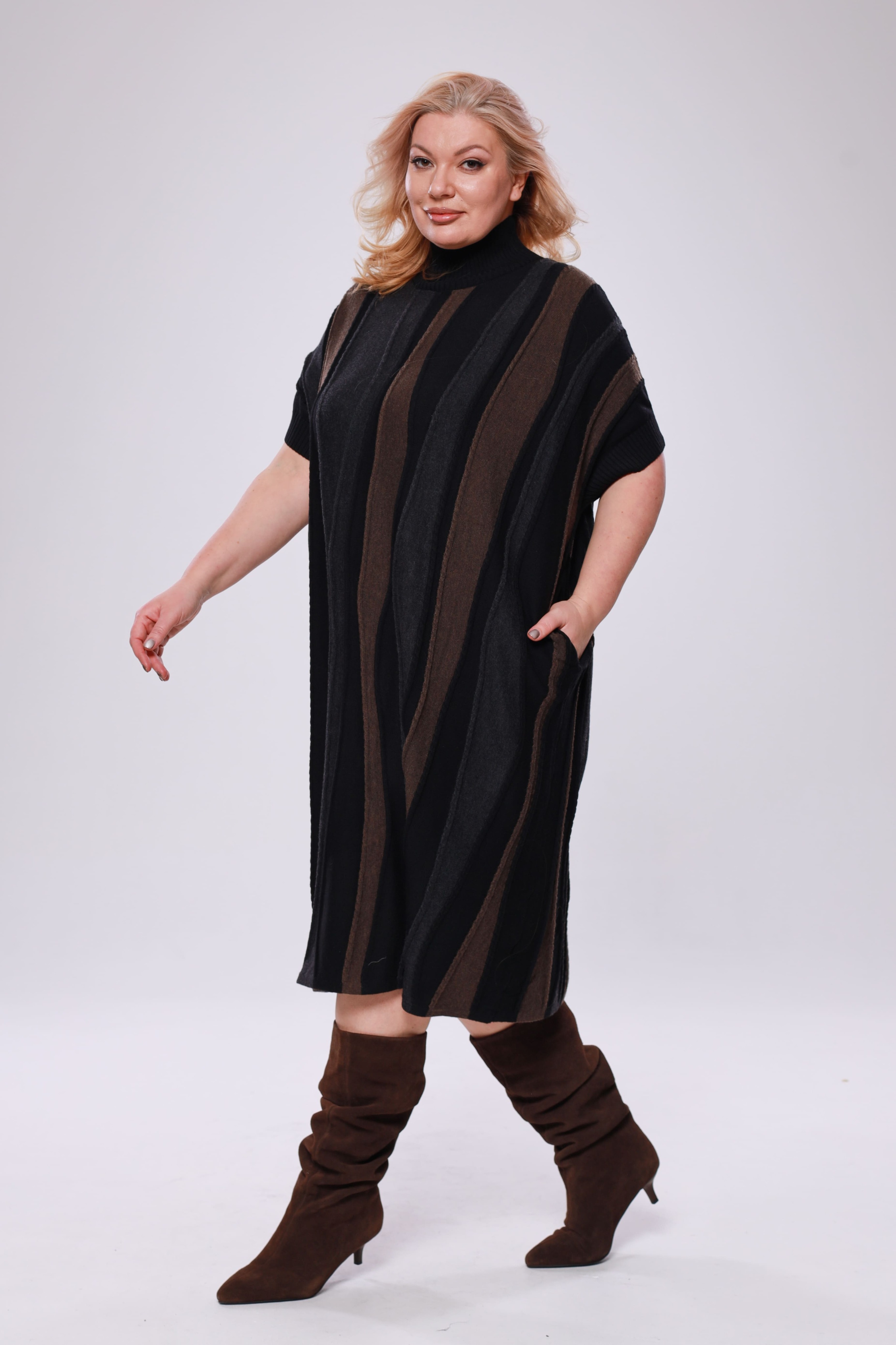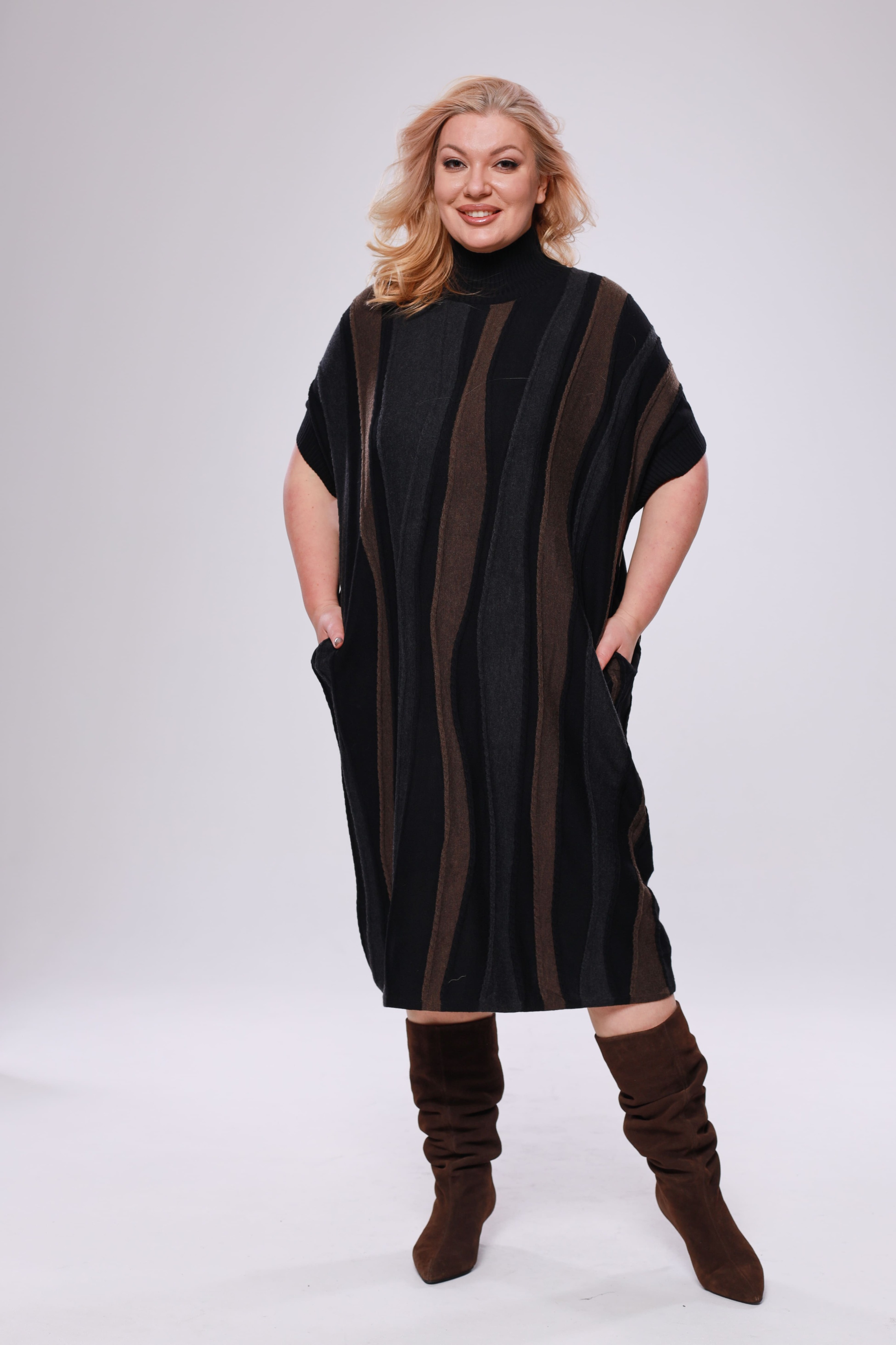 Элегантное платье-свитер из мягкого трикотажа и вязанного материала - идеальный выбор для прохладных дней, когда важно оставаться стильной и комфортной. модель имеет короткие приспущенные рукава. ворот с отворотом греет и защищает область шеи. благодаря своему крою и свободному силуэту, платье отлично подходит для женщин больших размеров, подчеркивая достоинства фигуры и создавая элегантный, женственный образ. модель легко сочетается с различными аксессуарами и обувью, что дает возможность создавать разнообразные образы — от строгого до более повседневного. создайте элегантный образ, который подчеркнет вашу индивидуальность и позволит чувствовать себя уверенно в любой ситуации.