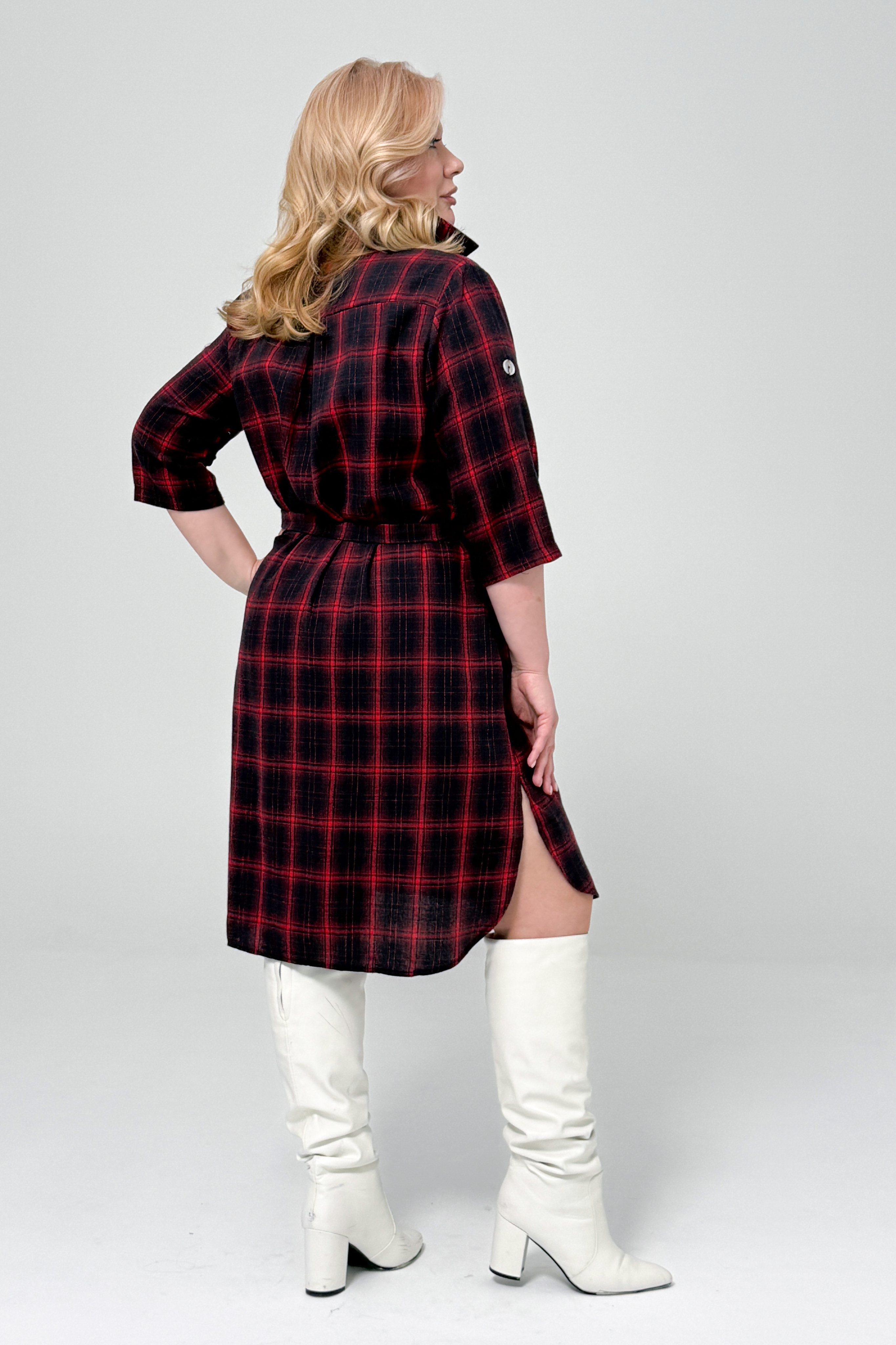 Платье-рубашка на пуговицах в клетку темно-синее