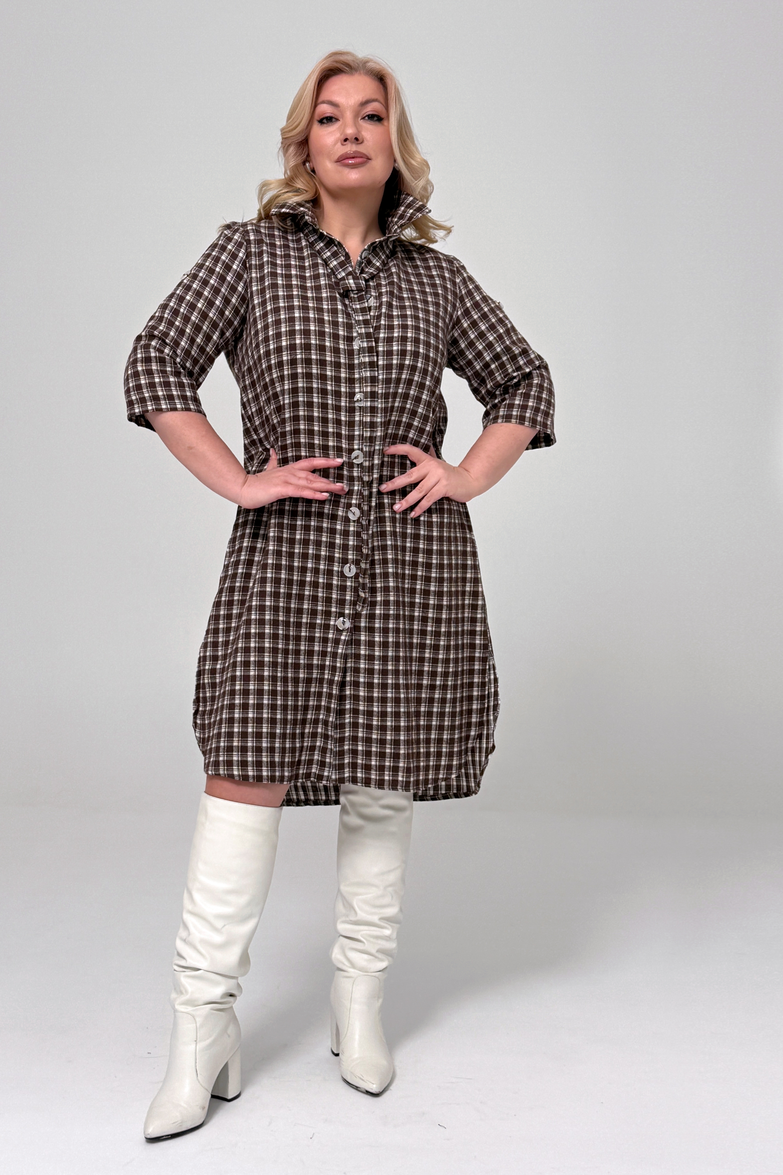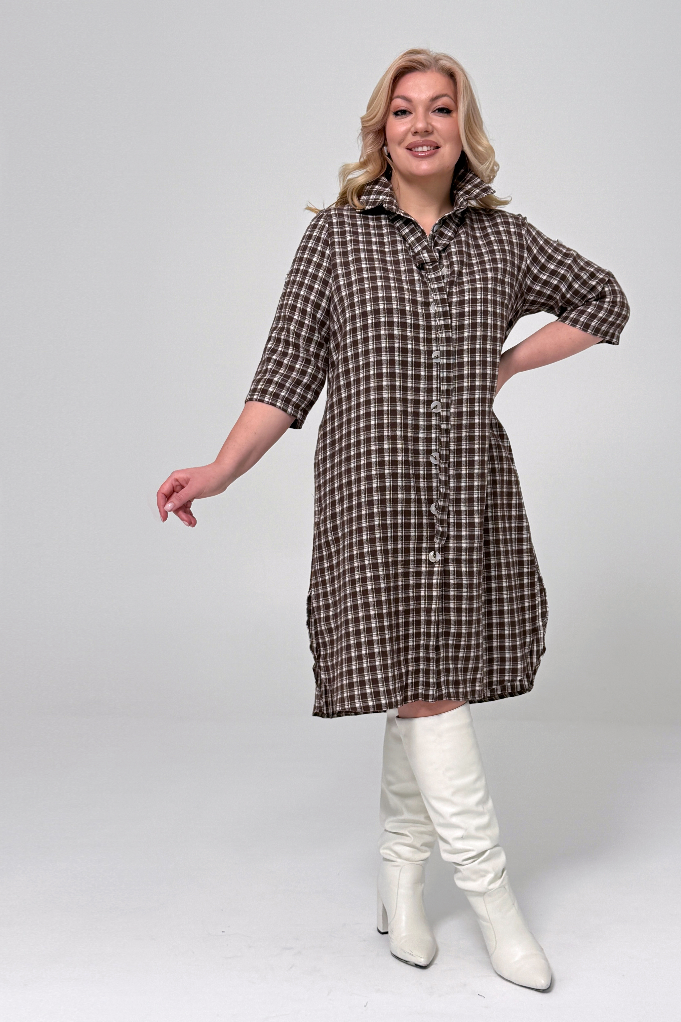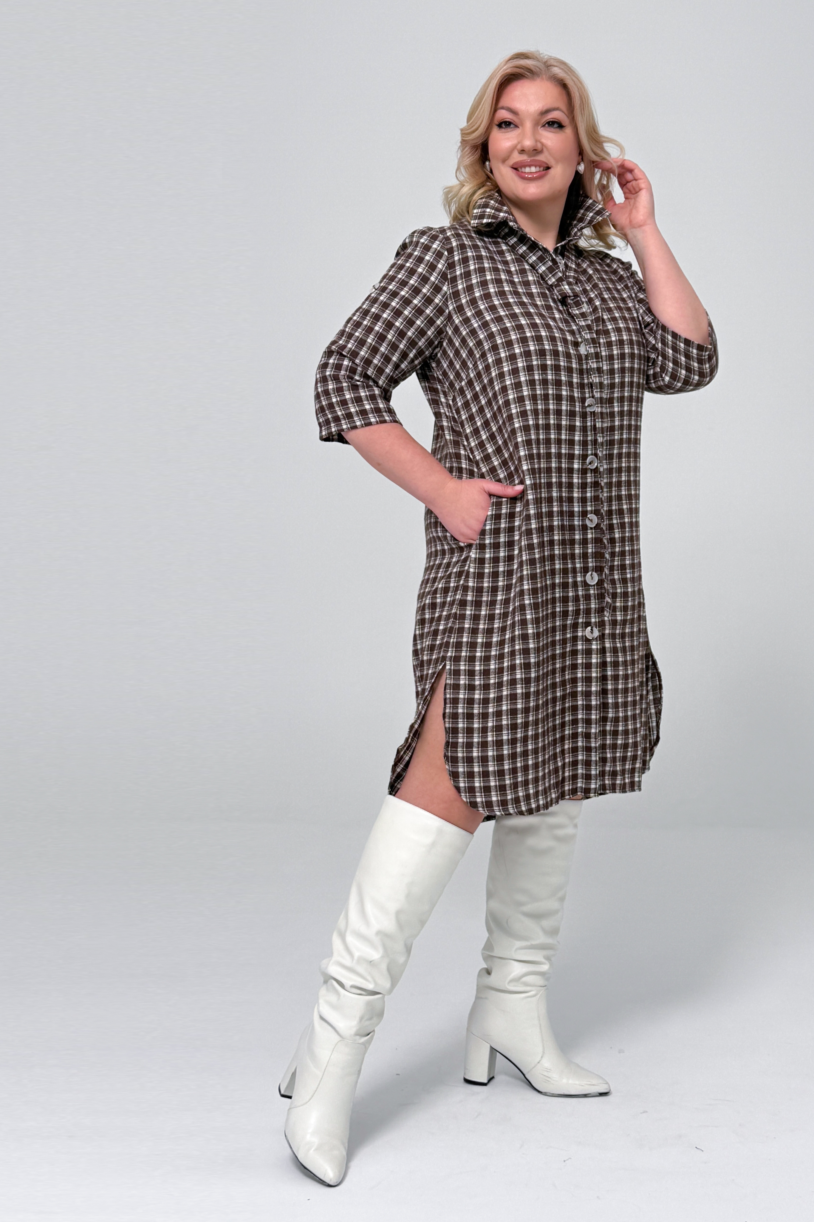 Оригинальное платье-рубашка прямого кроя идеальный вариант для женщин, ценящих простоту и элегантность. модель имеет классический отложной воротник и рукава длиной 3/4, которые при желании можно красиво присобрать патами. платье застегивается по всей длине на пуговицы под планку. по бокам практичные вшивные карманы. вытачки на груди и кокетка по спинке способствуют оптимальной посадке по фигуре, а закругленные края по бокам визуально стройнят. актуальный принт добавляет модели оригинальности и динамичности. полуприлегающий силуэт не сковывает движений и искусно обыгрывает фигуру, маскируя мелкие недостатки. при желании можно обозначить линию талии поясом в тон. для завершения стильного образа можно использовать как туфли на высоких каблуках, так и спортивную обувь.