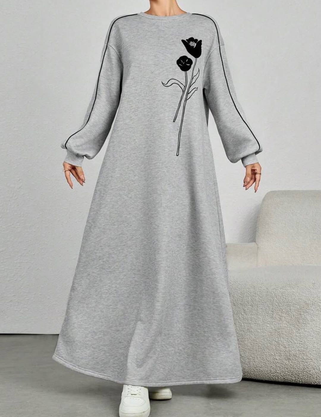 платья из ткани оригинального флис с начесом и рисунок цветок