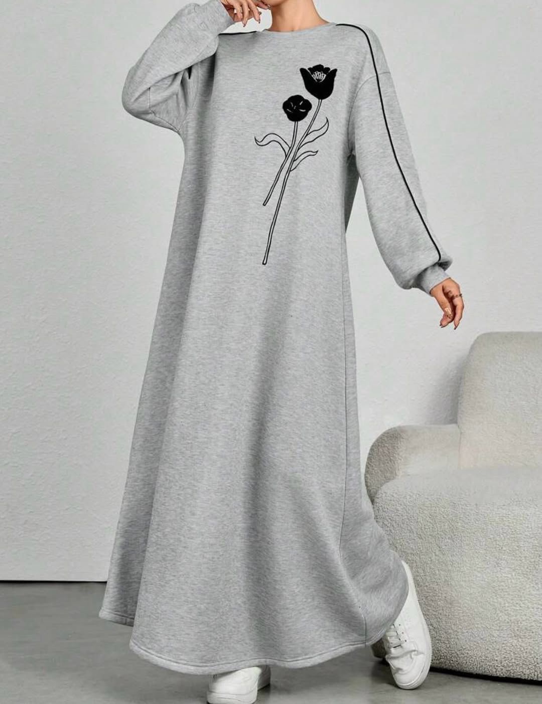 платья из ткани оригинального флис с начесом и рисунок цветок