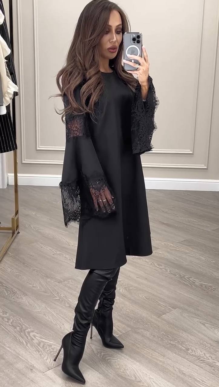 стильное платье для вечеринки Создайте незабываемый образ для любого праздничного мероприятия! это платье станет вашим идеальным спутником на корпоративах, днях рождениях, свиданиях и особых торжествах. Ткань: креп и кружево