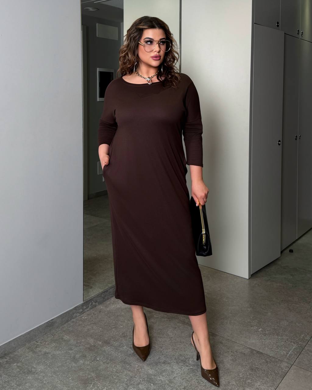 Платье легко сочетается с классическими челноками, сумками и украшениями, позволяя создавать как элегантные, так и более casual-образы.