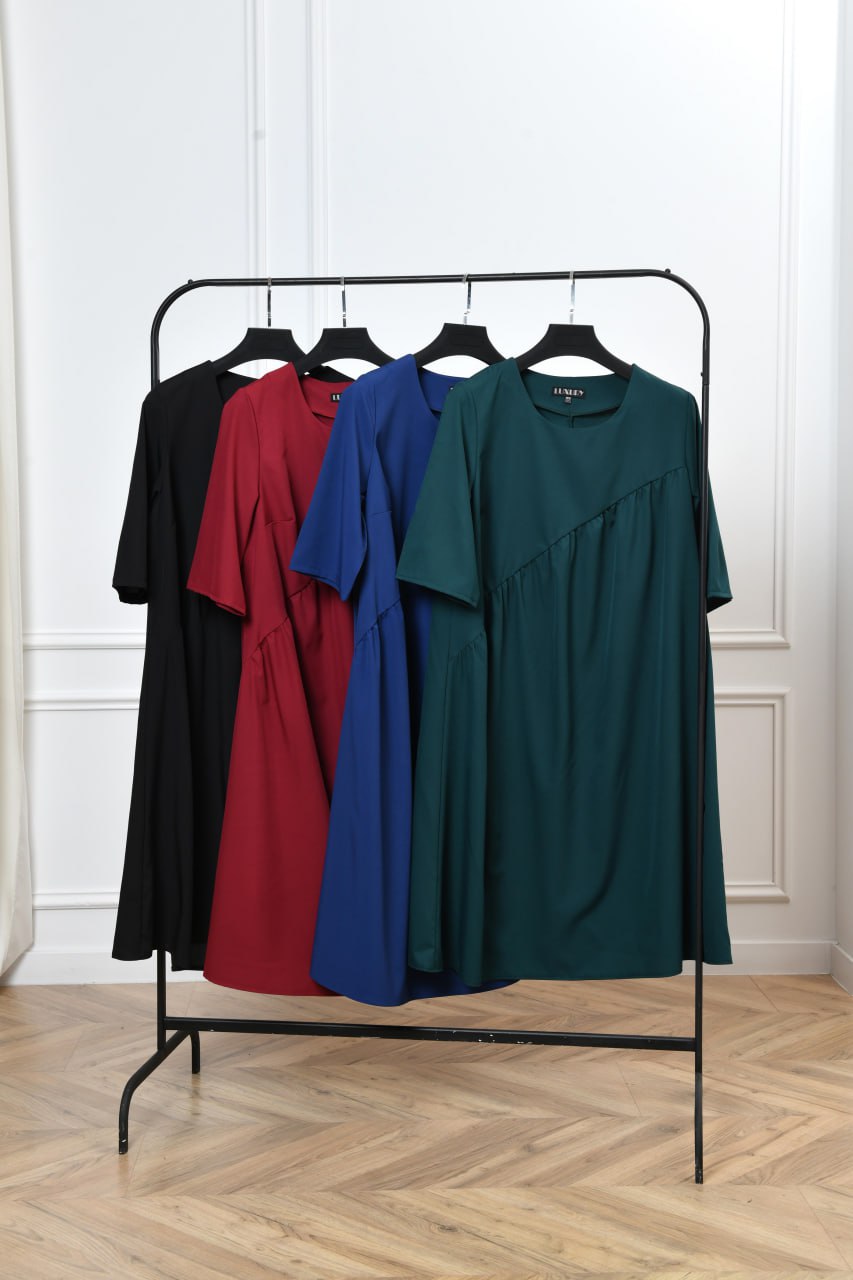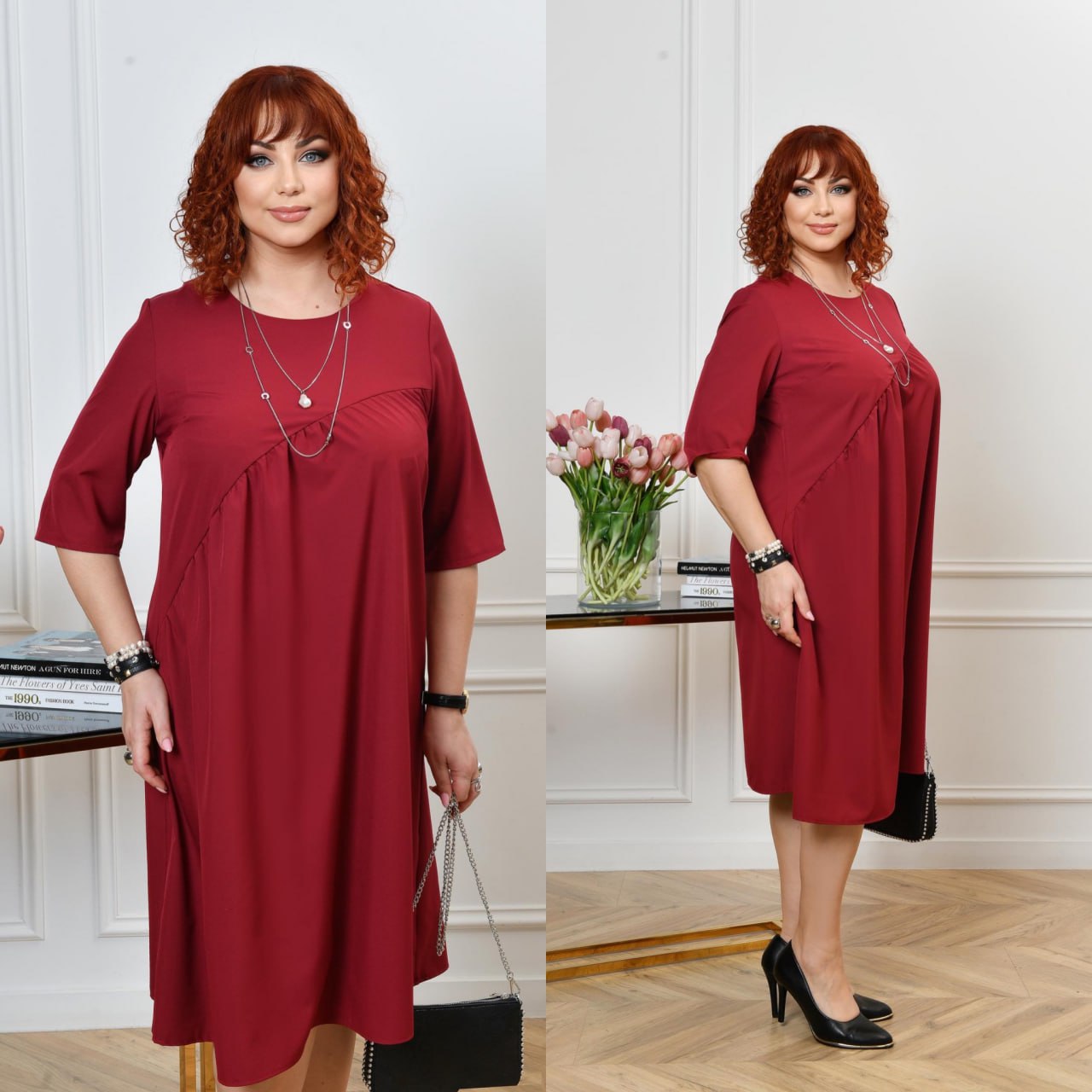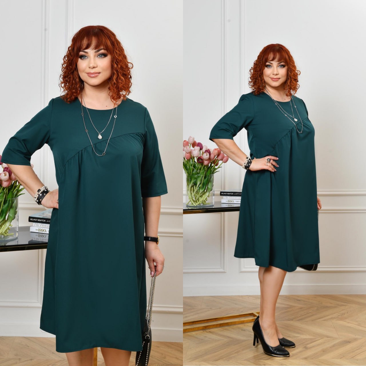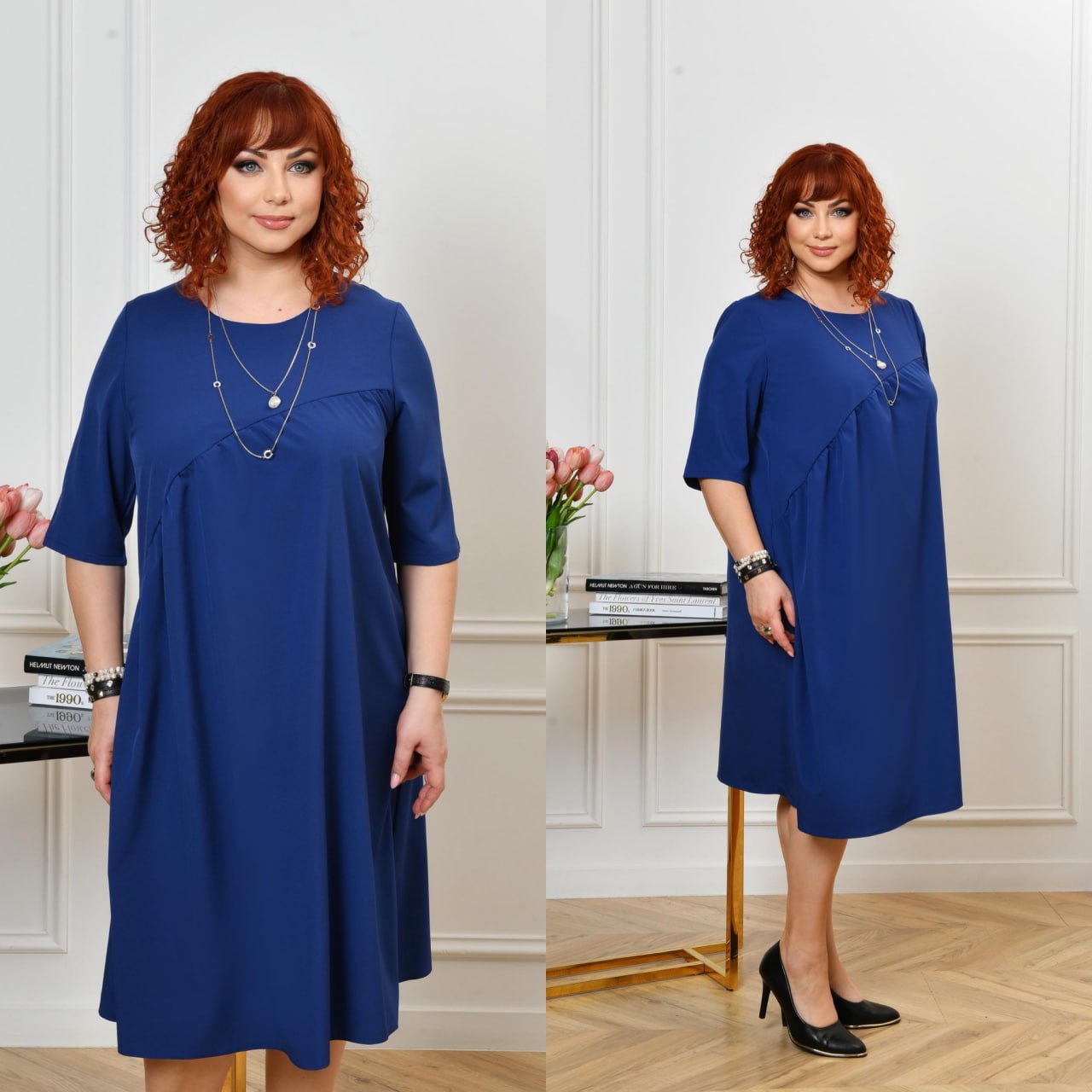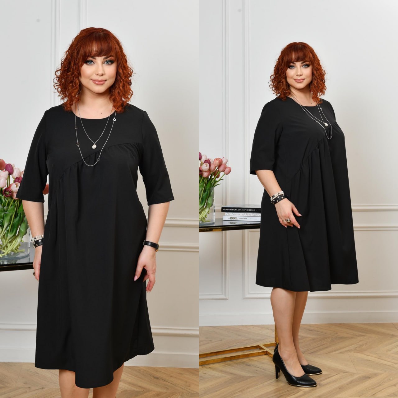 Это изысканное платье большого размера станет идеальным выбором для тех, кто ценит комфорт и элегантность в повседневном образе. изготовленная из мягкого, но не растяжимого софта, она нежно окутывает фигуру, деликатно маскируя все недостатки и подчеркивая естественную женственность.