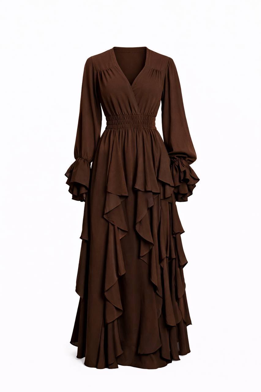 Платье макси каскад. идеально садится по фигуре, подчеркивает талию – благодаря прошитым резинкам на талии, которые не давят, а мягко обнимают. юбка украшена вертикальными воланами – тренд сезона. они делают платье воздушным, добавляют шарма