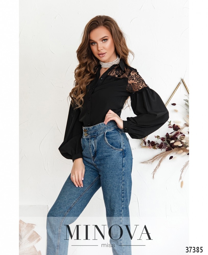 Праздничная рубашка из лёгкой ткани, украшенная кружевом на плечах и спине сверху. по центру – планка с полным рядом пуговиц. рукава с небольшими манжетами, на манжетах по одной пуговице. подшиты к кружеву и присобраны. спереди и по спинке – продольные вытачки. воротничок отложной.