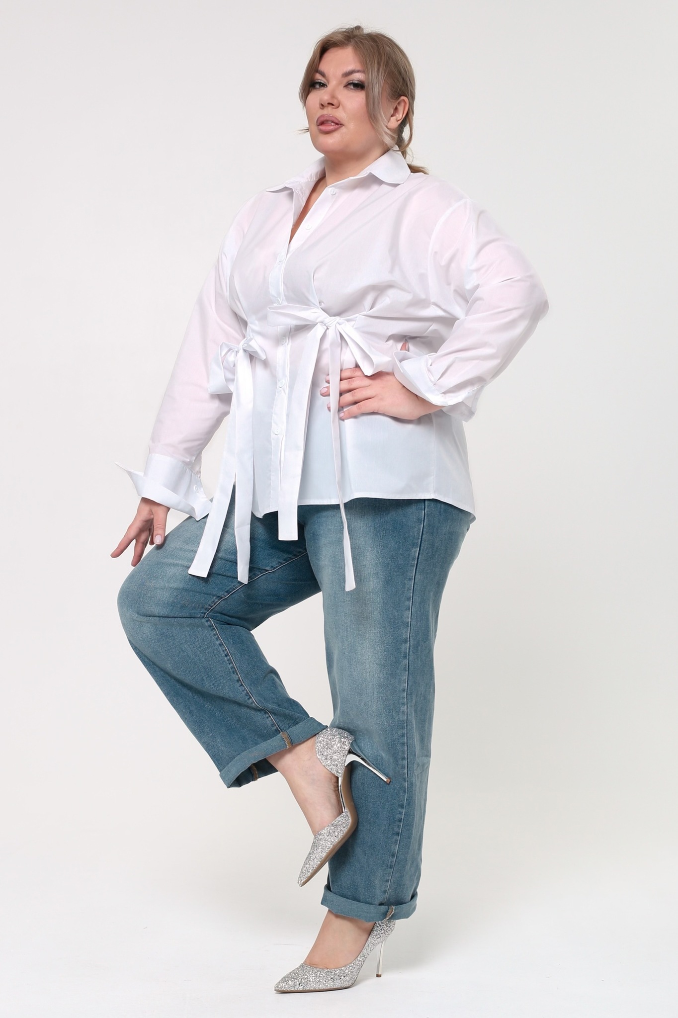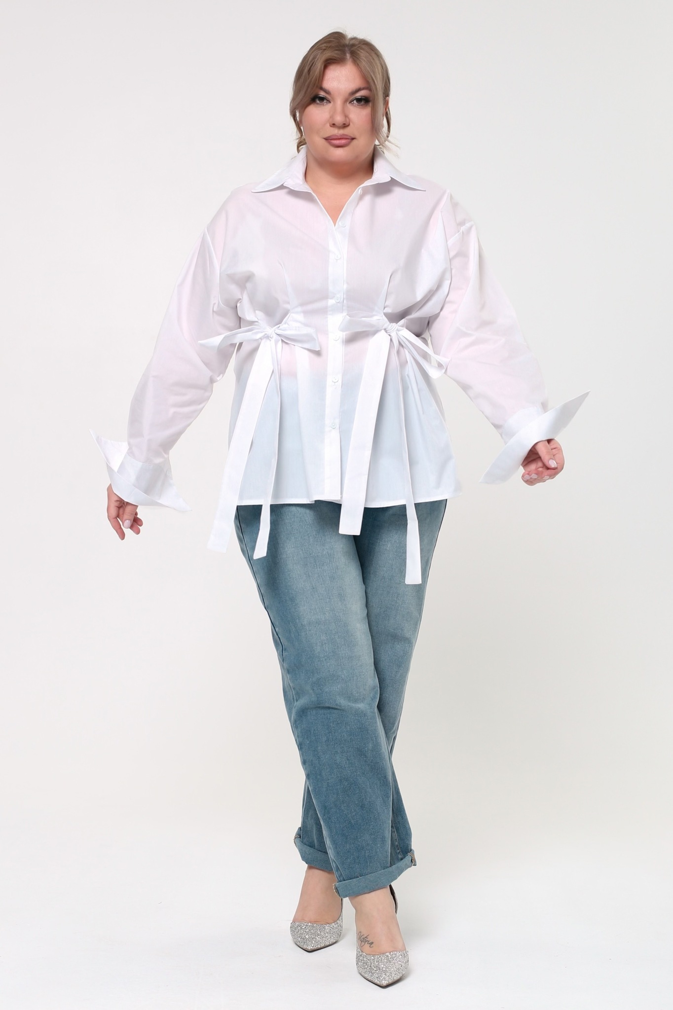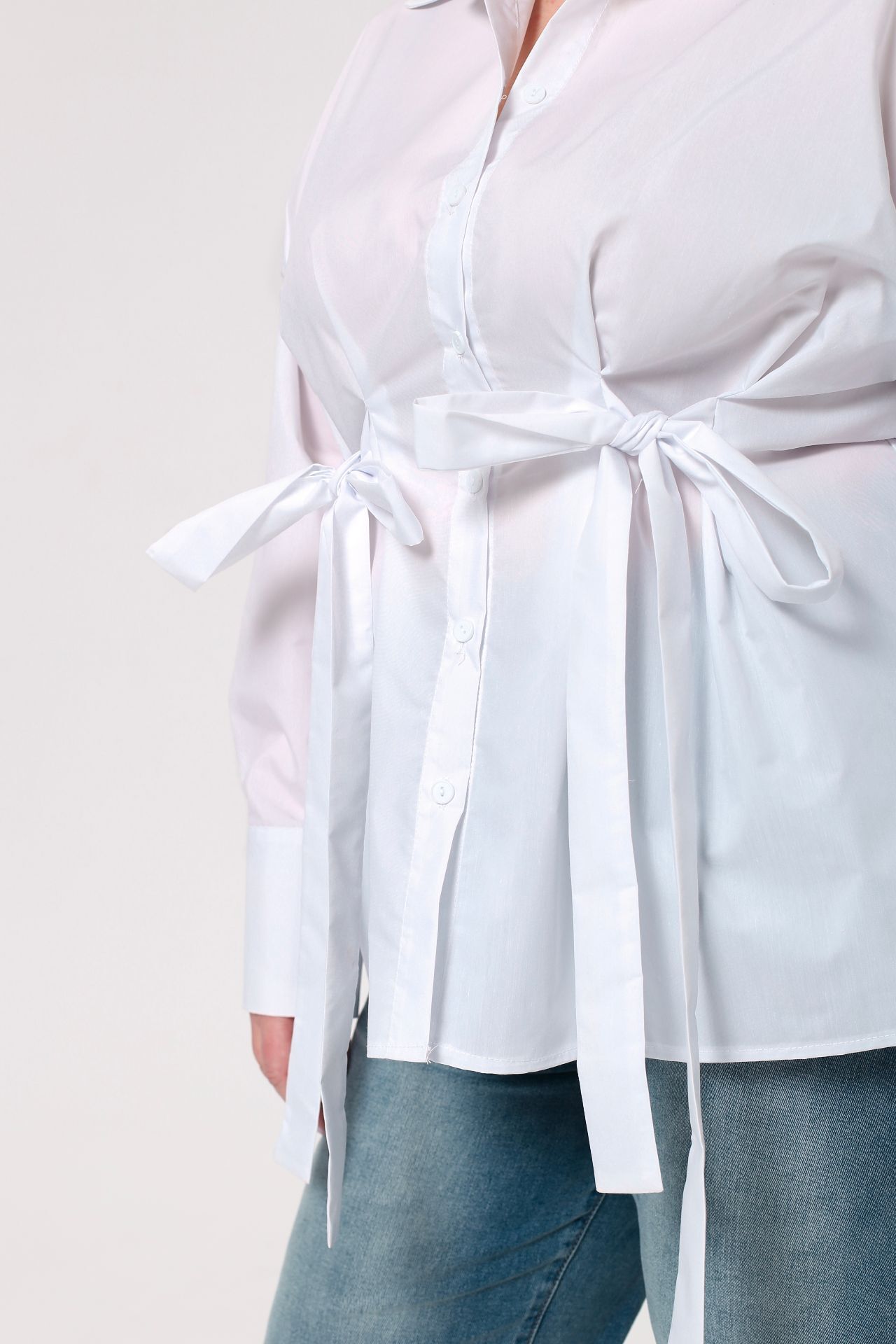 Удлиненная рубашка из мягкого материала. модель прямого кроя имеет классический отложной воротник. застегивается спереди на пуговицы под планку по всей длине. приспущенные рукава полной длины по низу оформлены широкими манжетами. с помощью оригинальных завязок по переду можно обозначить талию. полуприлегающий силуэт не сковывает движений и искусно обыгрывает фигуру, маскируя мелкие недостатки. отлично подходит для комбинирования с брюками и легинсами.