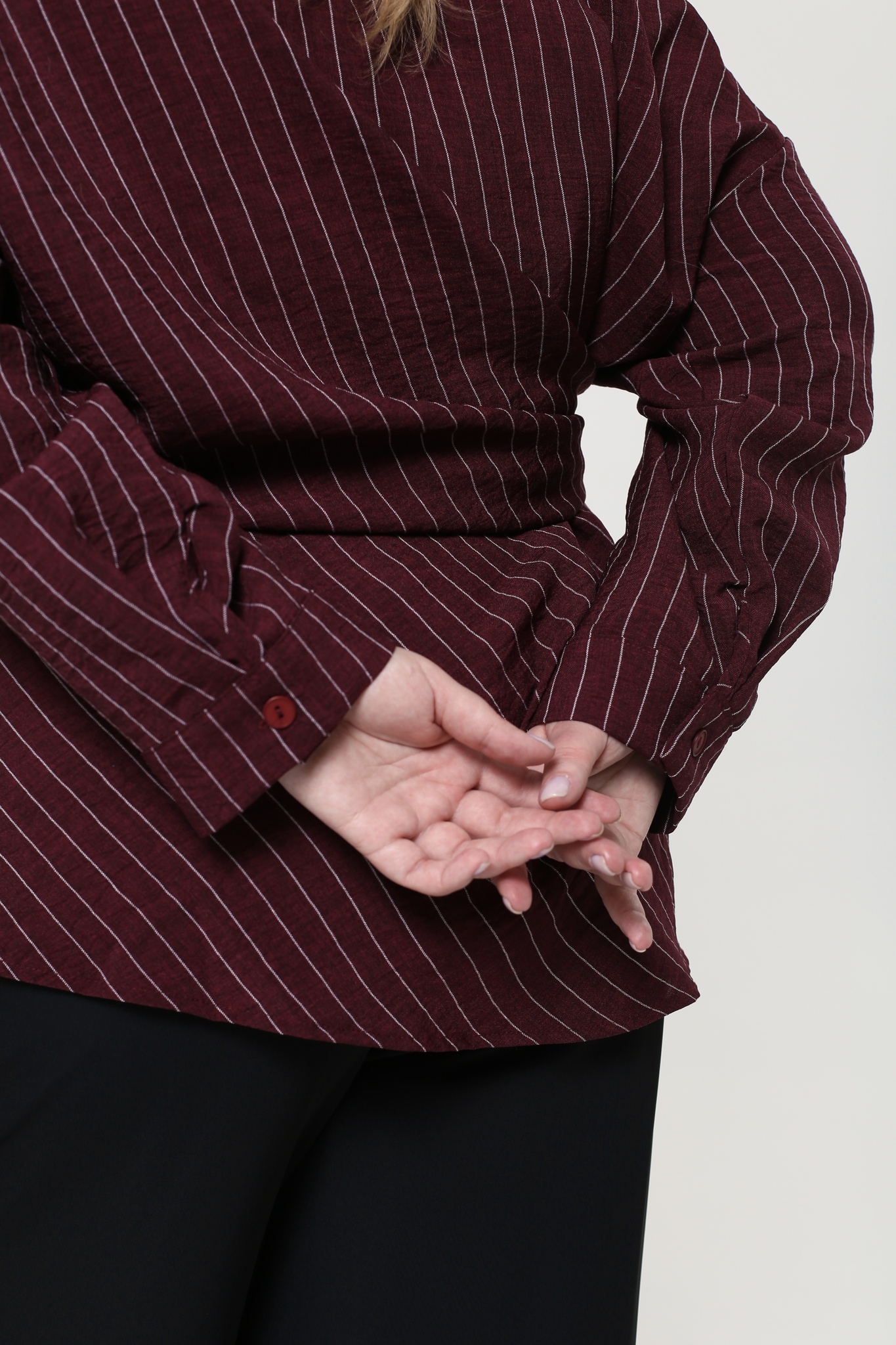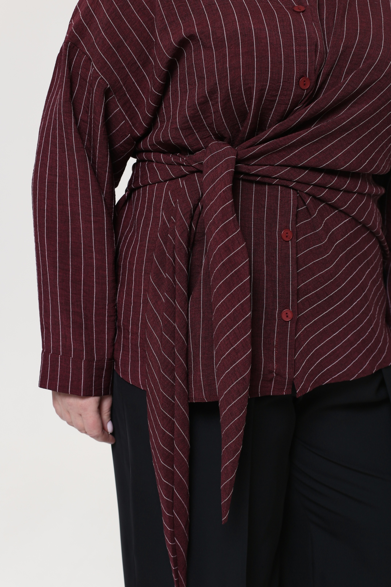 Оригинальная рубашка прямого кроя из мягкого материала. приспущенные рукава полной длины присобраны по низу манжетами, которые завязываются на пуговки. круглый вырез дополнен классическим отложным воротником. модель застёгивается на небольшие пуговки под планку. оригинальные завязки по переду способствуют оптимальной посадке по фигуре. полосатый принт добавляет динамичности. рубашка превосходно сочетается как с юбками, так и с брюками и легинсами.