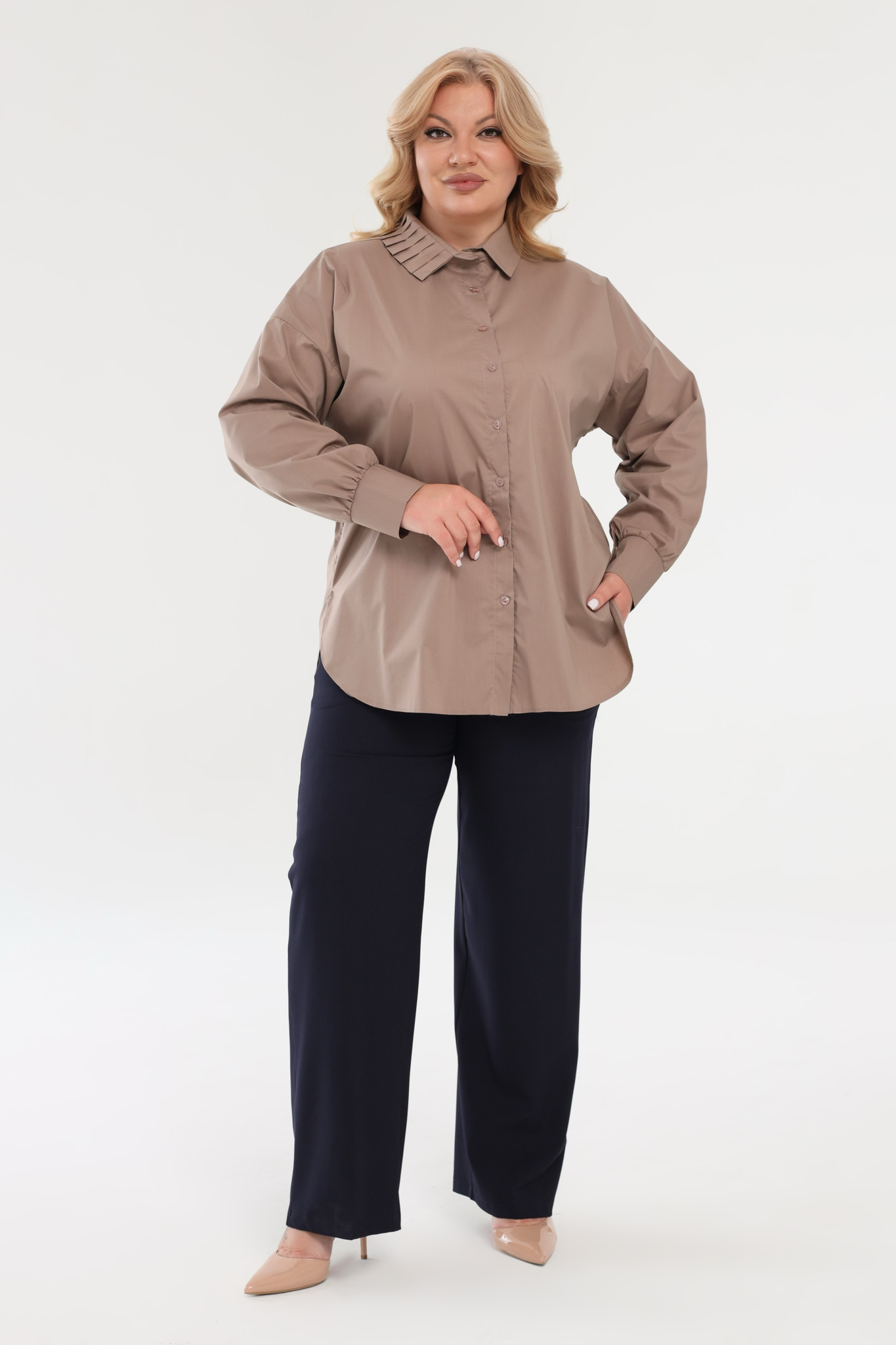 Удлиненная рубашка прямого кроя из мягкого материала - идеальный вариант для женщин, ценящих простоту и элегантность. модель привлекает оригинальным дизайном. рубашка застегивается спереди на пуговки под планку. имеет классический отложной воротник, который сбоку декорирован небольшими складочками, что придает модели изящности и женственности. приспущенные рукава полной длины застегиваются по низу на пуговки. закругленные бока с небольшими разрезами обеспечивают оптимальную посадку по фигуре. свободный крой искусно обыгрывает силуэт, а мягкий, приятный телу материал подарит комфорт на весь день. отлично подходит для комбинирования с брюками и юбками.