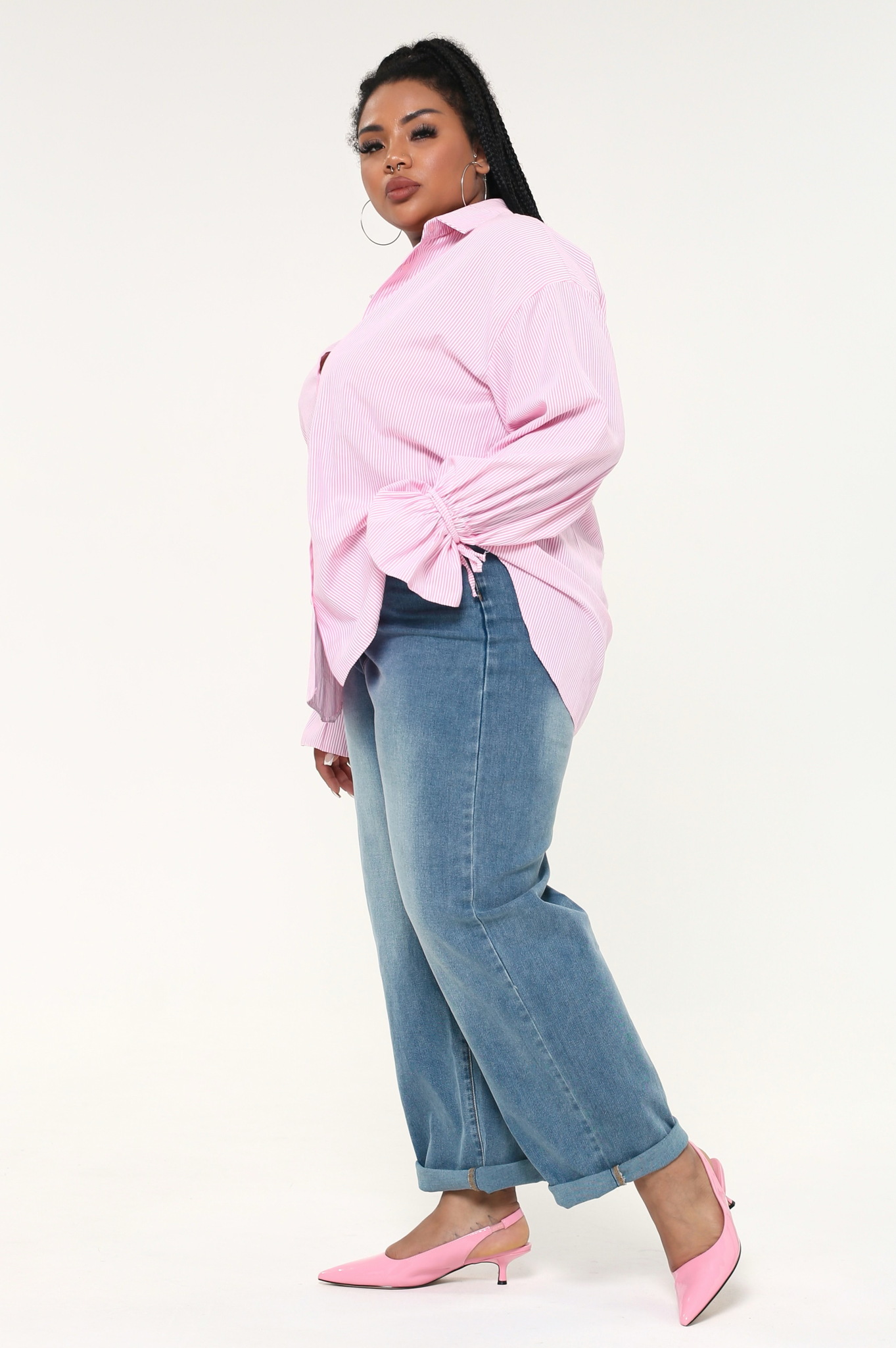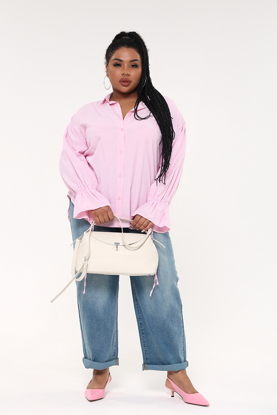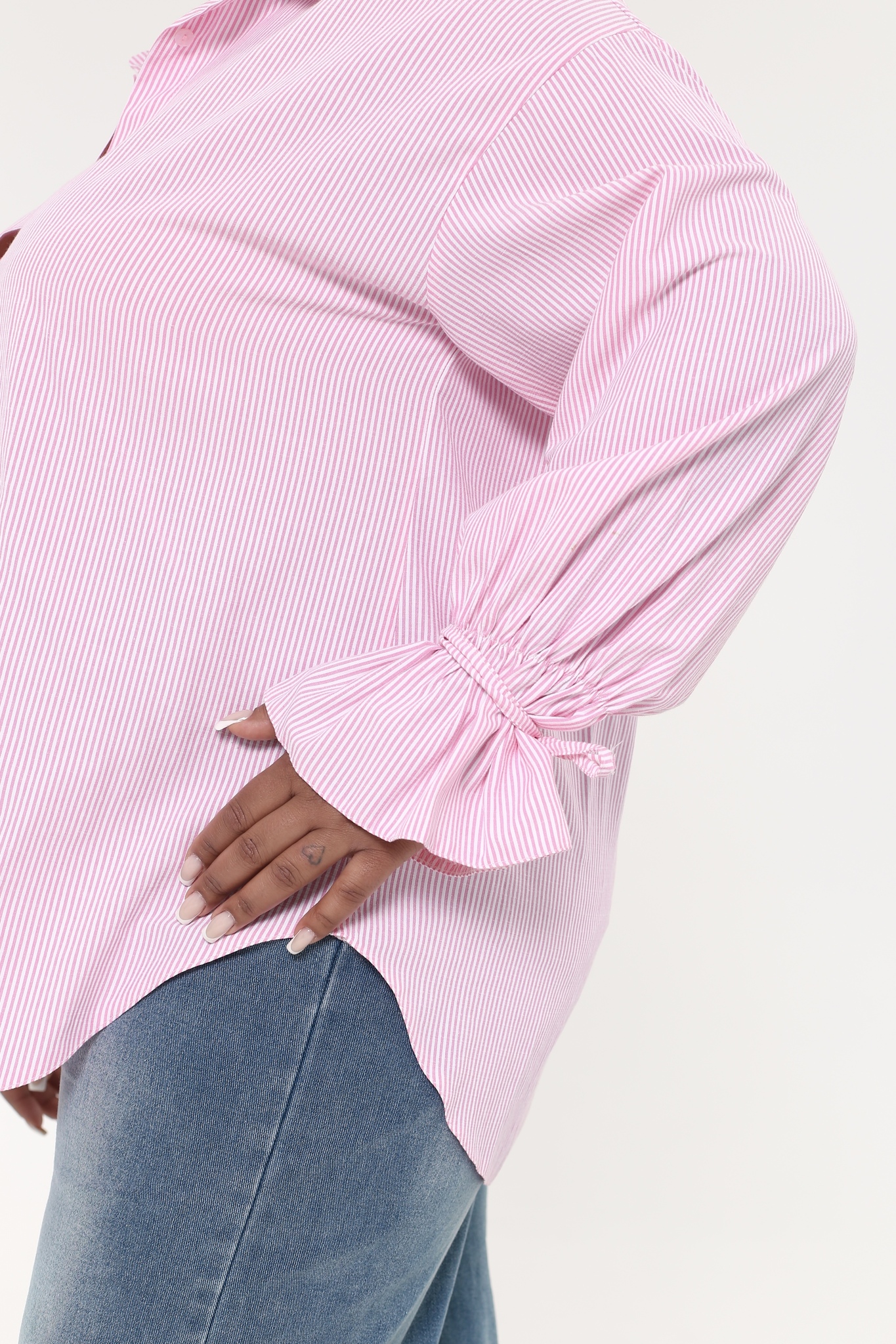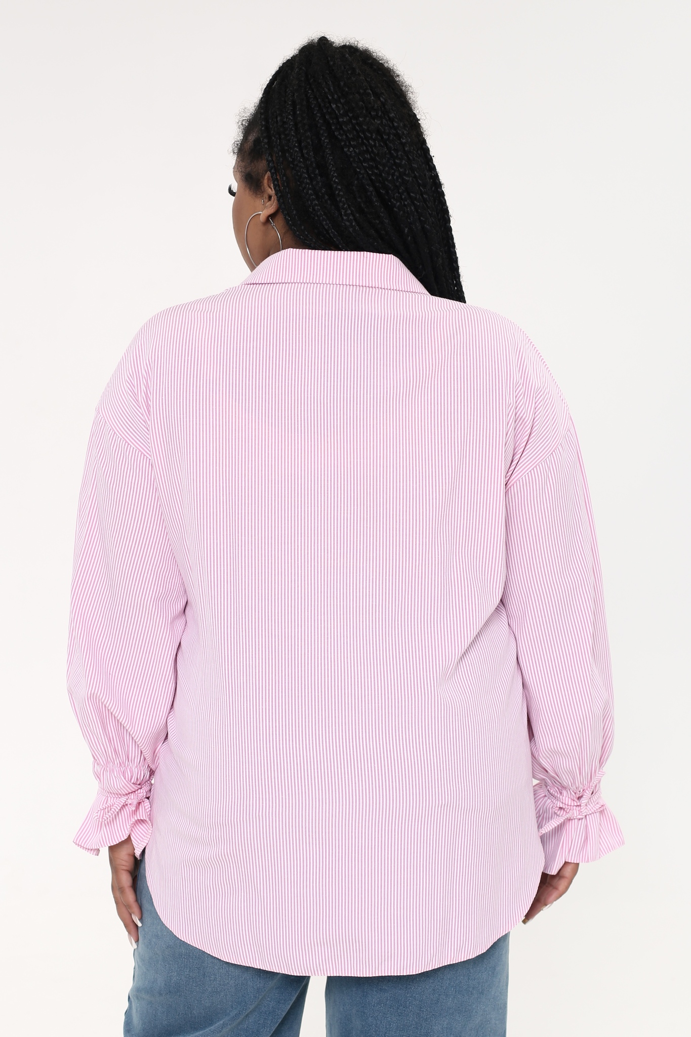 Оригинальная рубашка прямого кроя из мягкого материала. круглый вырез дополнен классическим отложным воротником. рукава полной длины с приспущенной проймой по низу присобраны на тонкие резиночки и дополнены оригинальными завязками, которыми можно регулировать объем манжеты. модель застёгивается на оригинальные пуговки под планку. актуальный полосатый принт добавляет динамичности. удлиненная спинка и закругленные бока не сковывают движений и искусно обыгрывают фигуру, маскируя мелкие недостатки. рубашка отлично сочетается как с брюками, так и с легинсами.