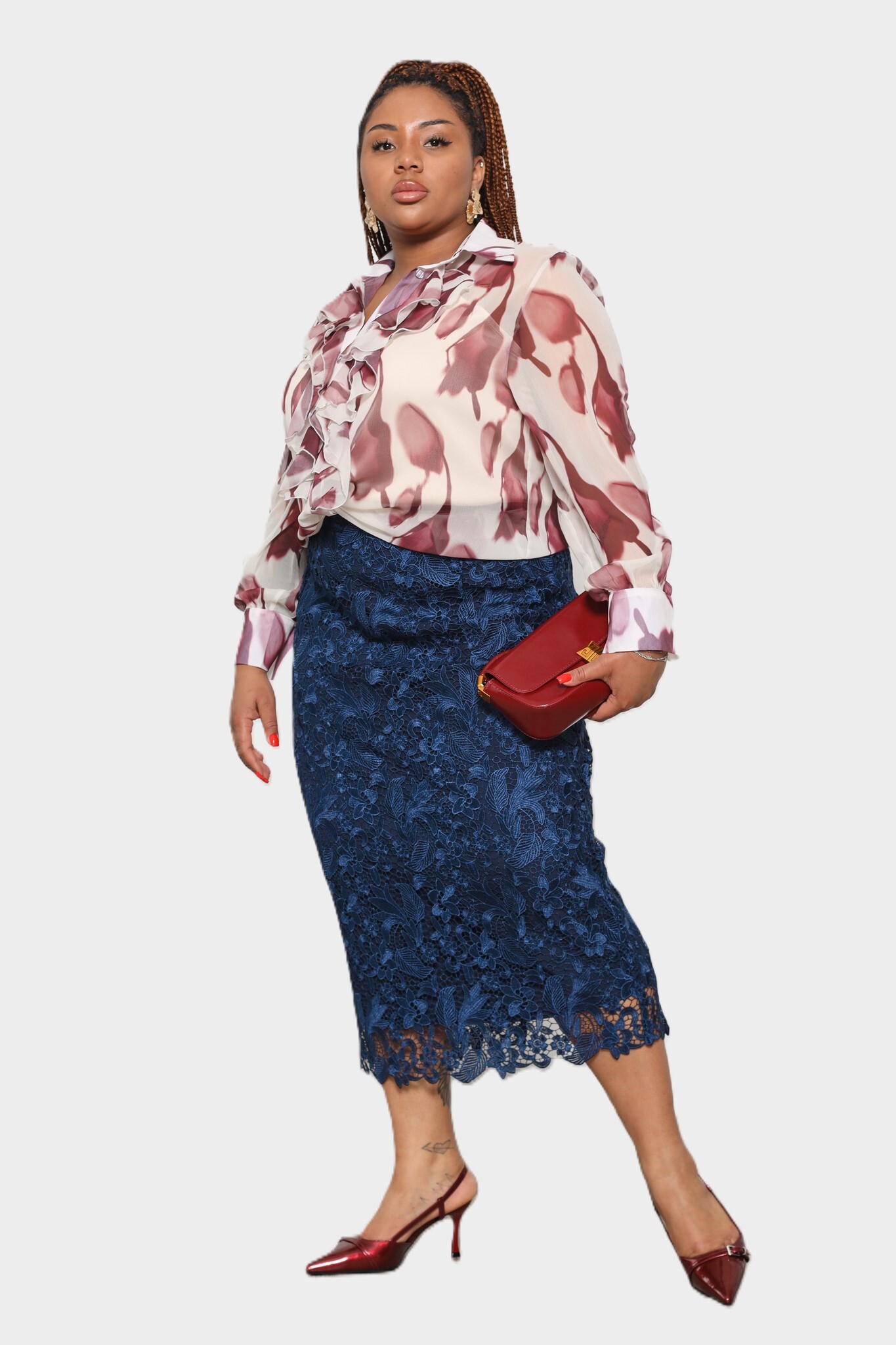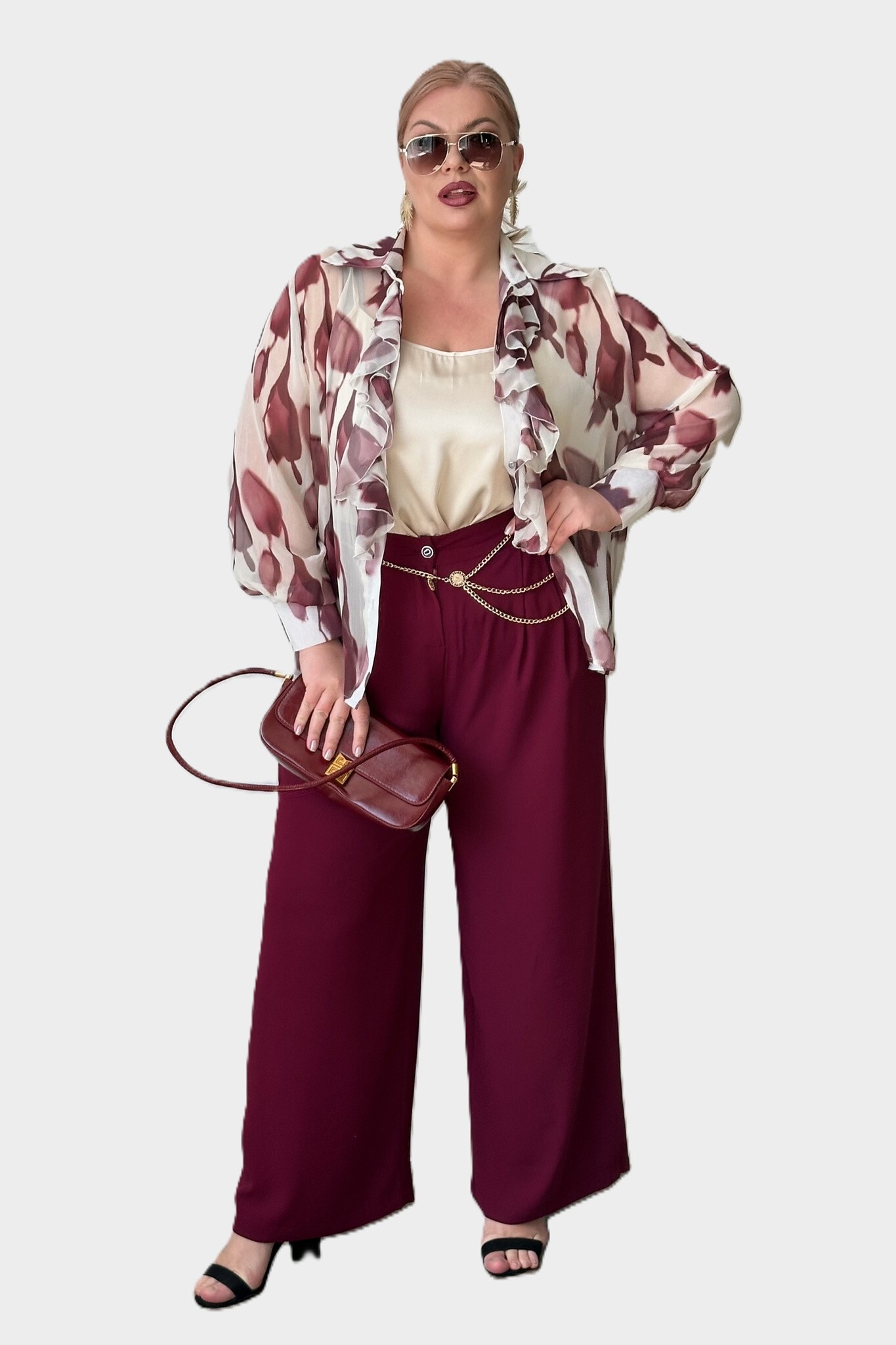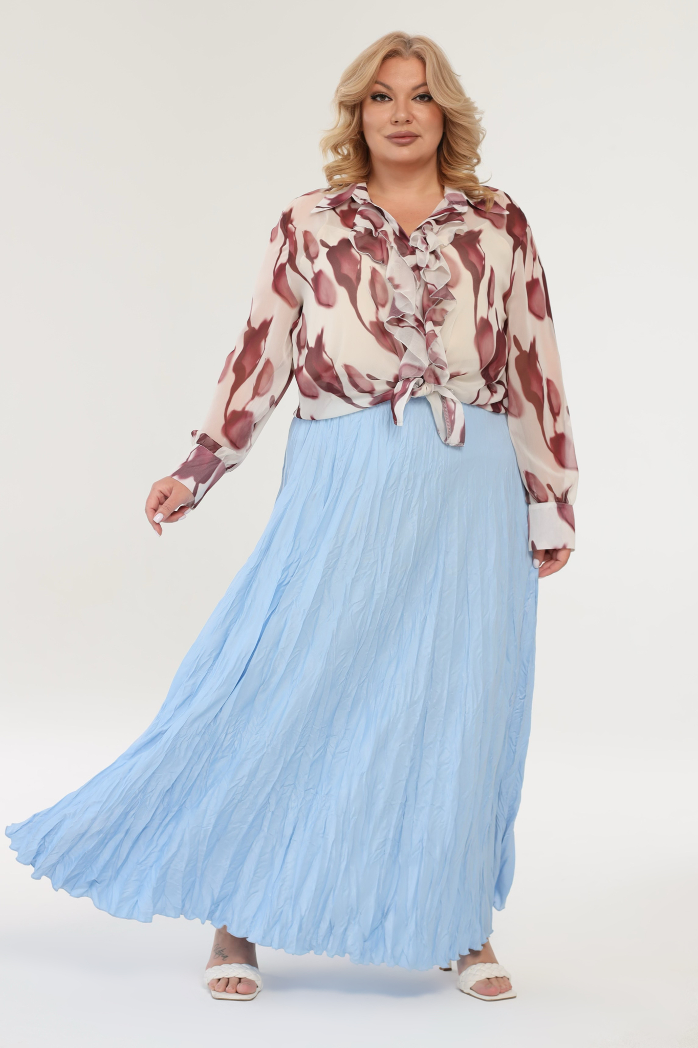 Комплект состоит из рубашки и топа. рубашка прямого кроя выполнена из мягкого шифона. модель привлекает внимание оригинальным дизайном. рубашка застегивается спереди по всей длине на пуговицы под планку. имеет классический отложной воротник и рукава полной длины на широких манжетах по низу. кокетливый волан по планке добавляет модели женственности, а растительный принт - динамичности.