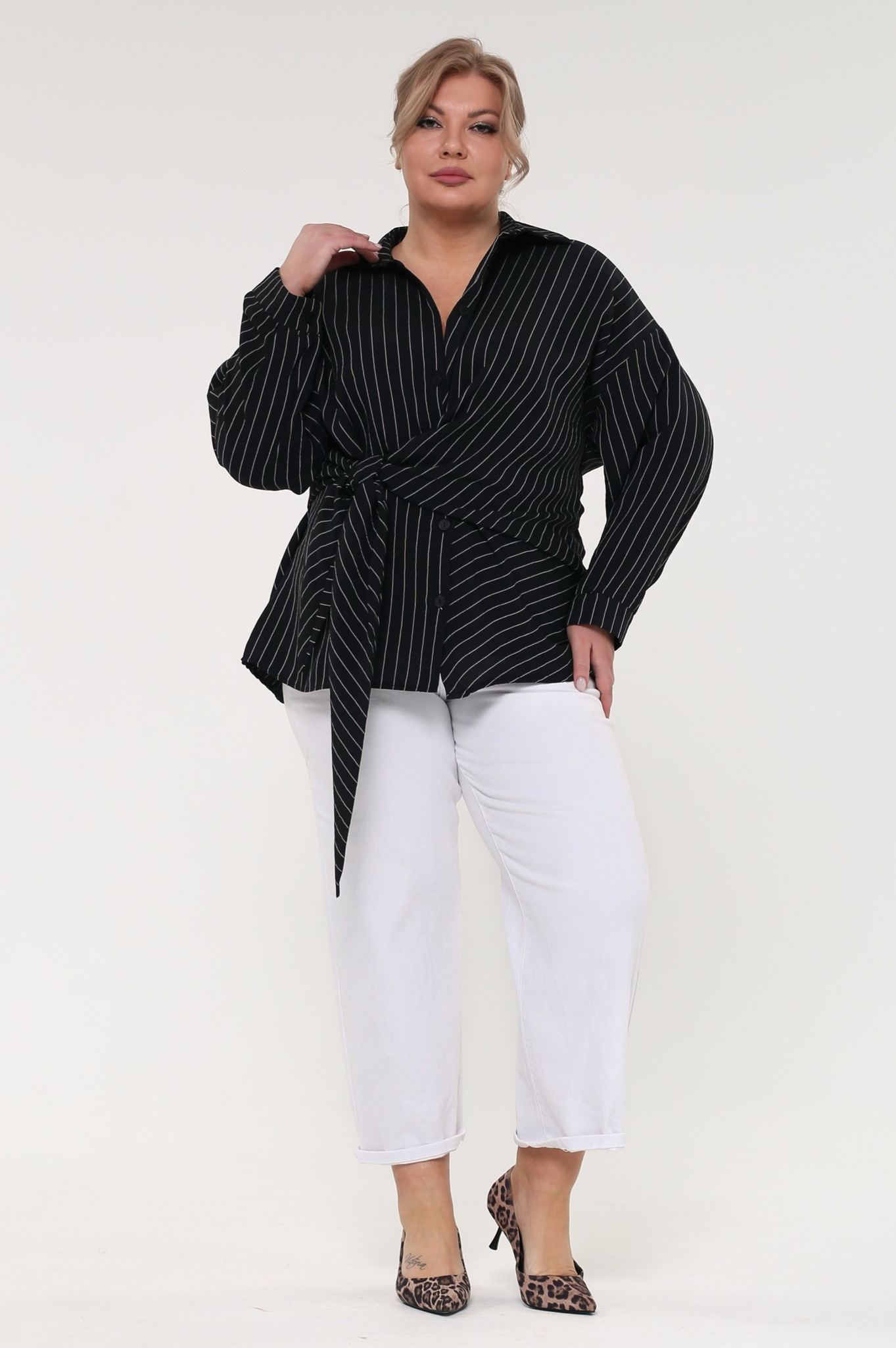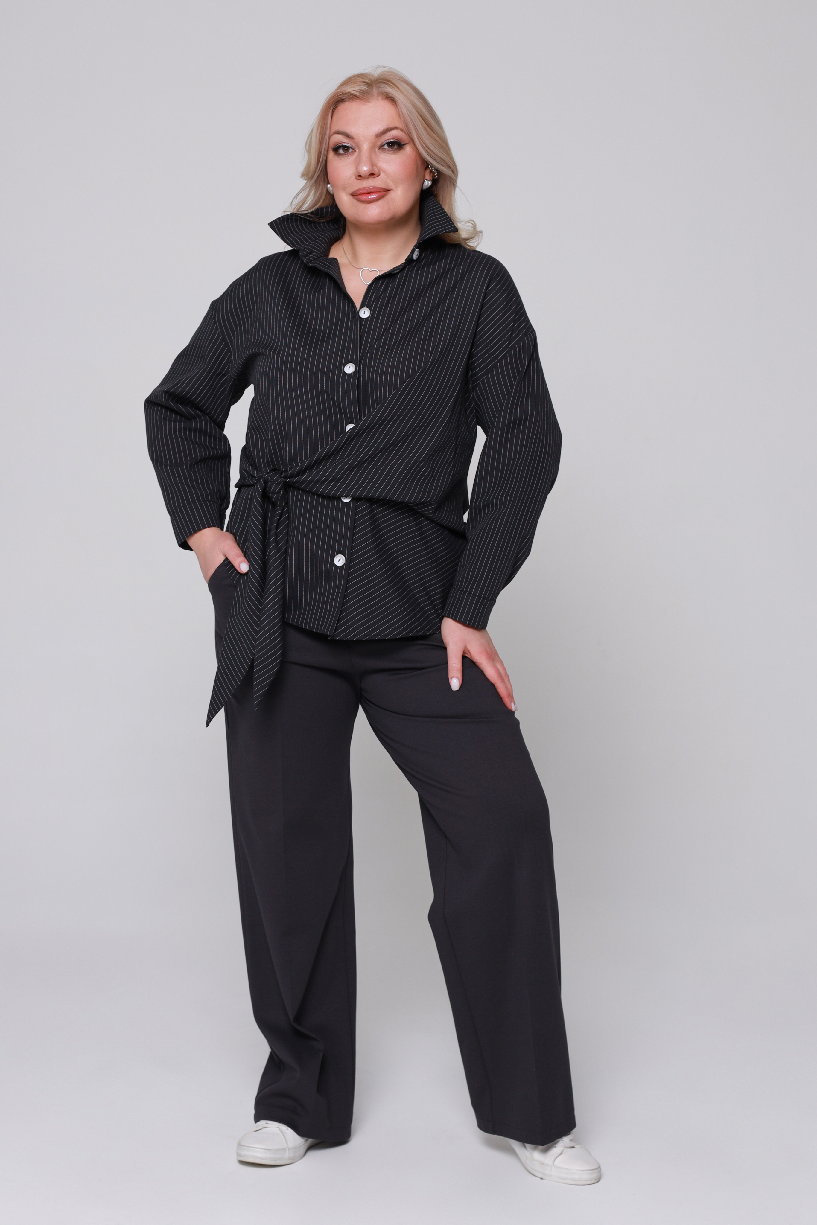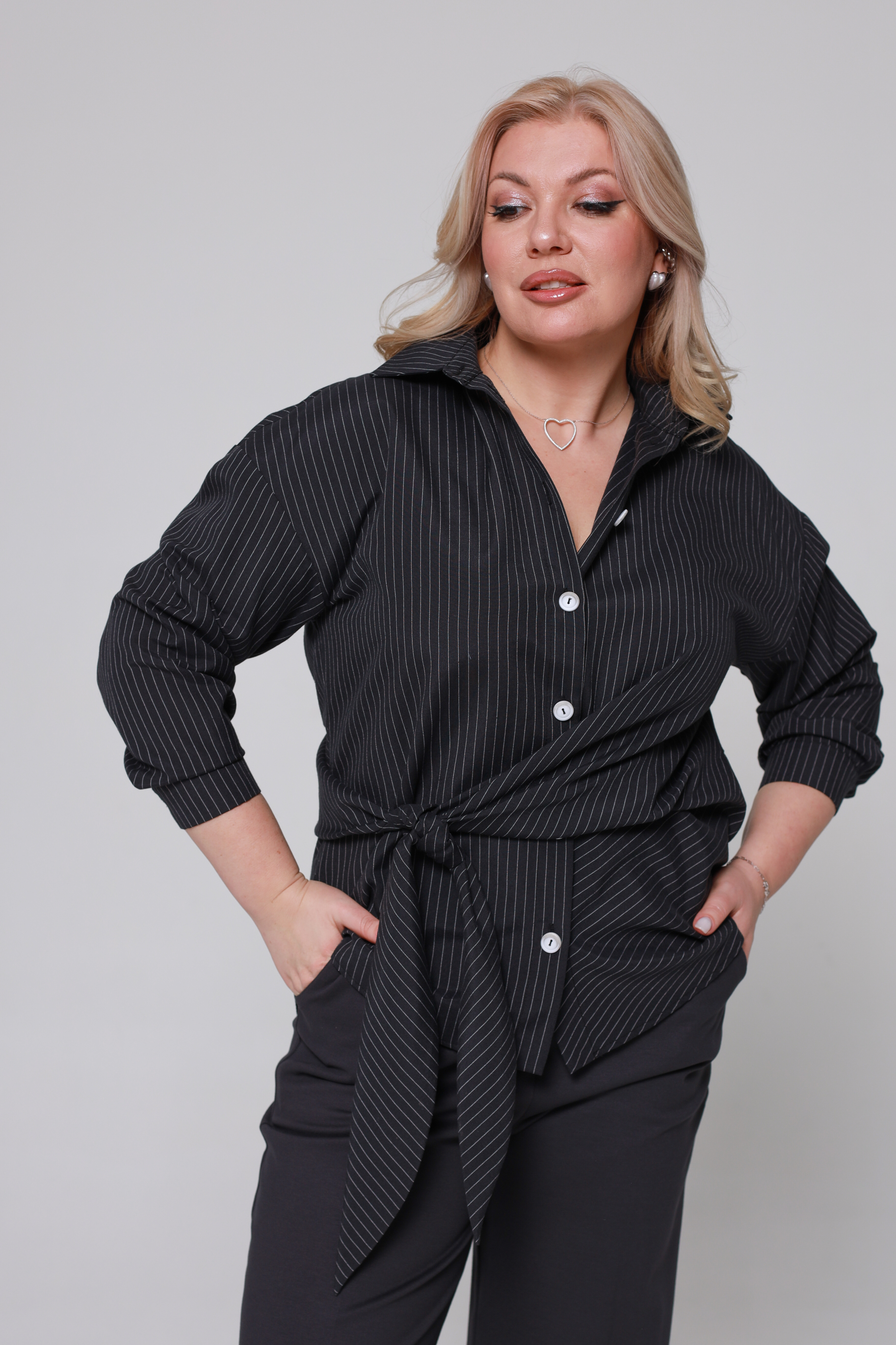 Рубашка "чикаго" полоска с завязкой сбоку черная