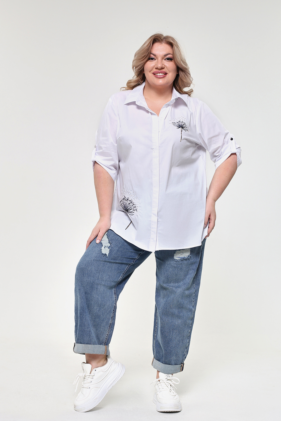 Рубашка "одуванчики" с удлиненной спинкой белая
