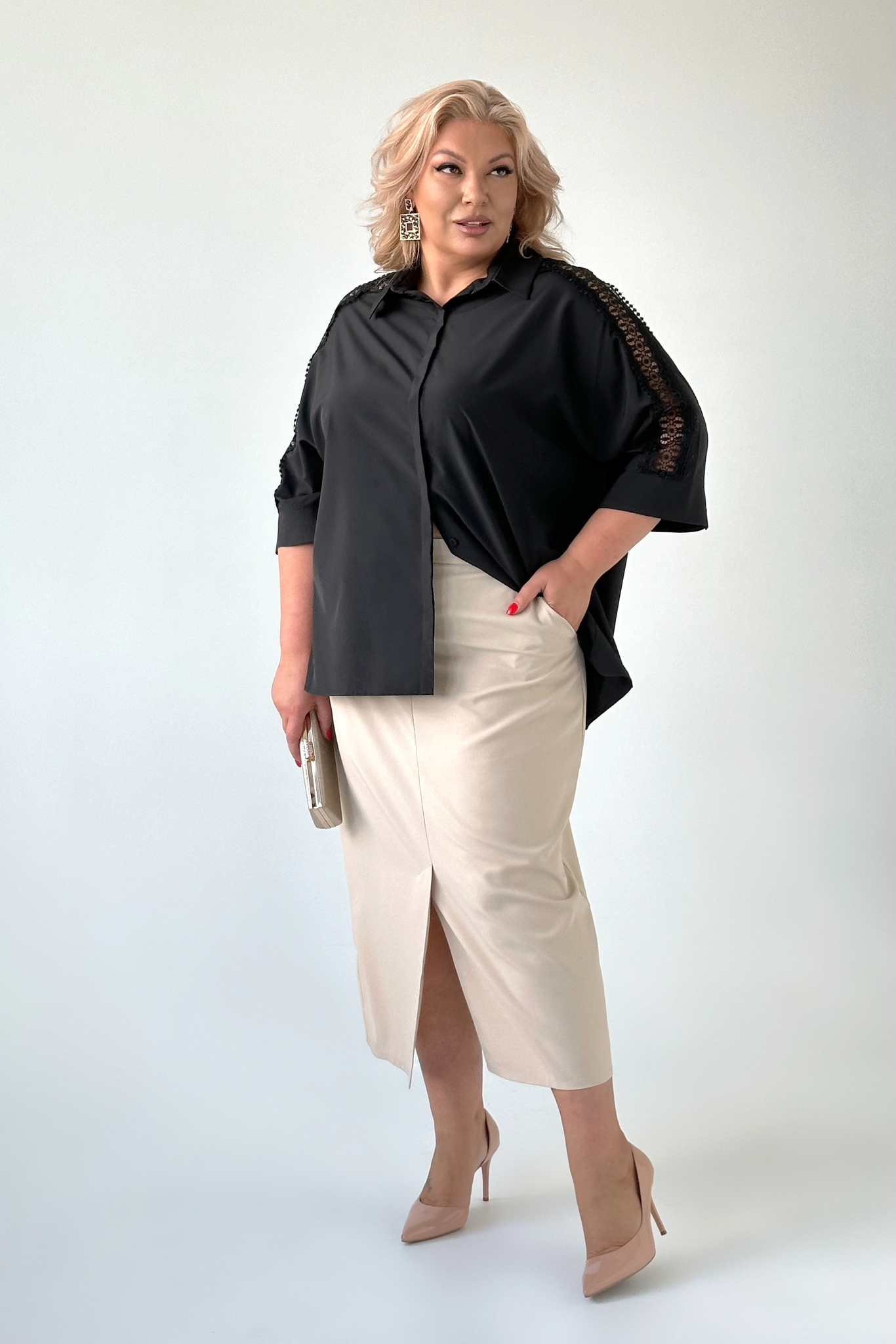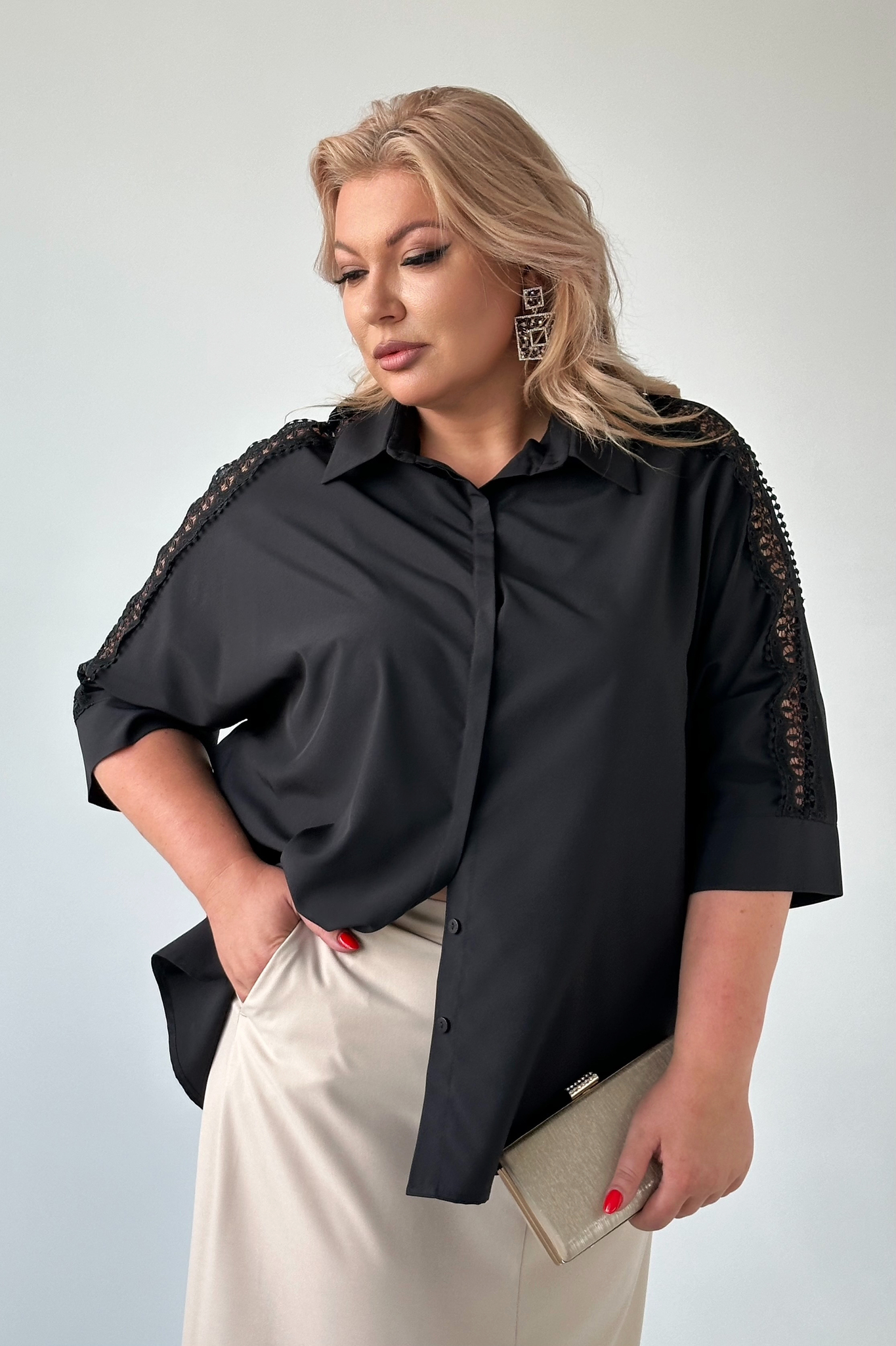 Удлиненная рубашка прямого кроя идеальный вариант для женщин, ценящих простоту и элегантность. модель привлекает внимание оригинальным дизайном. застегивается спереди на пуговицы под планку. имеет классический отложной воротник. цельнокроеные рукава длиной 3/4 сверху декорированы оригинальным кружевом, что добавляет модели женственности и нарядности. модные надписи на груди освежают образ и добавляют динамичности. удлиненная спинка способствует оптимальной посадке по фигуре. мягкий материал подарит комфорт на весь день. рубашку можно комбинировать как с узкими брюками, так и с легинсами.