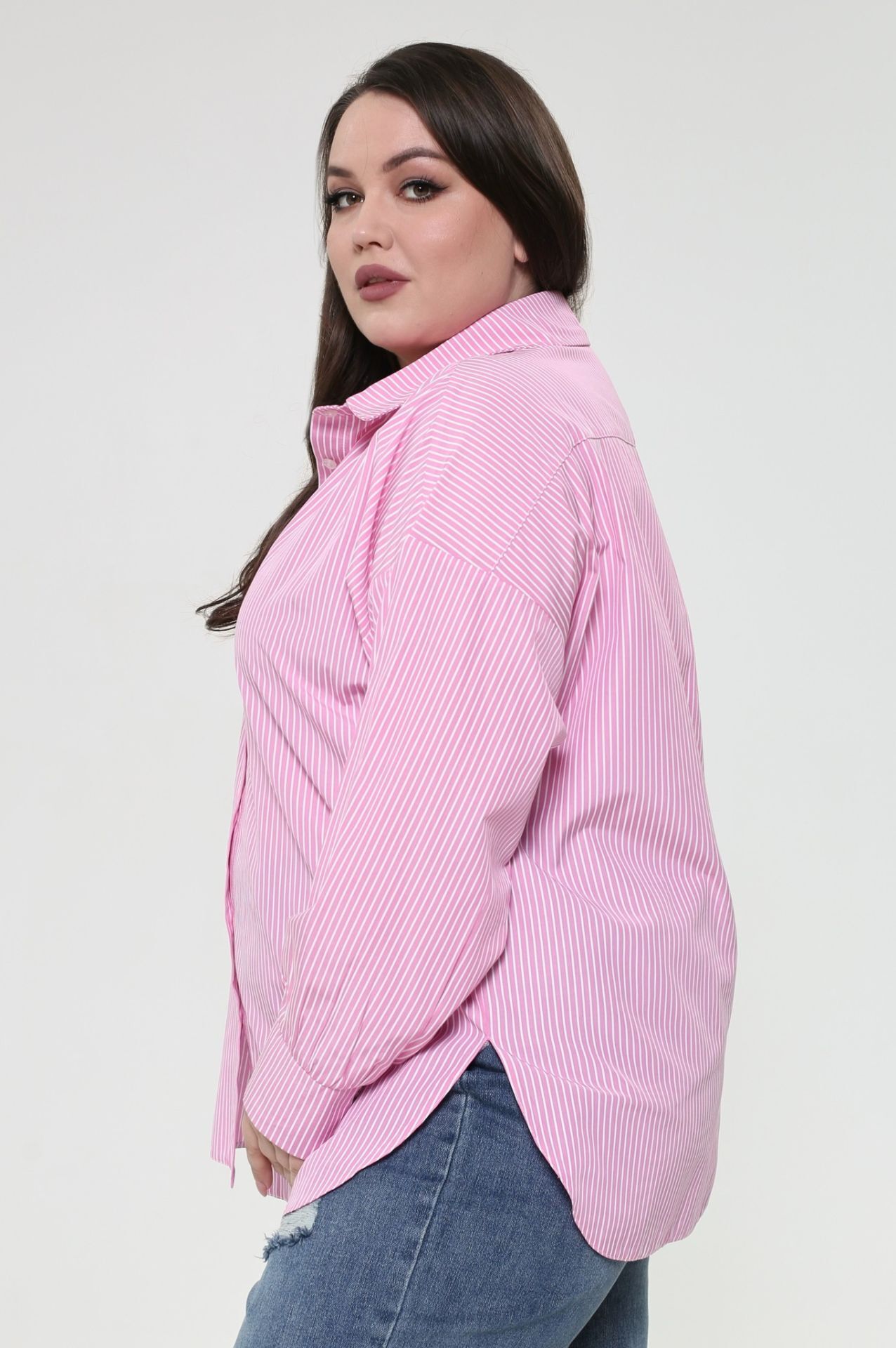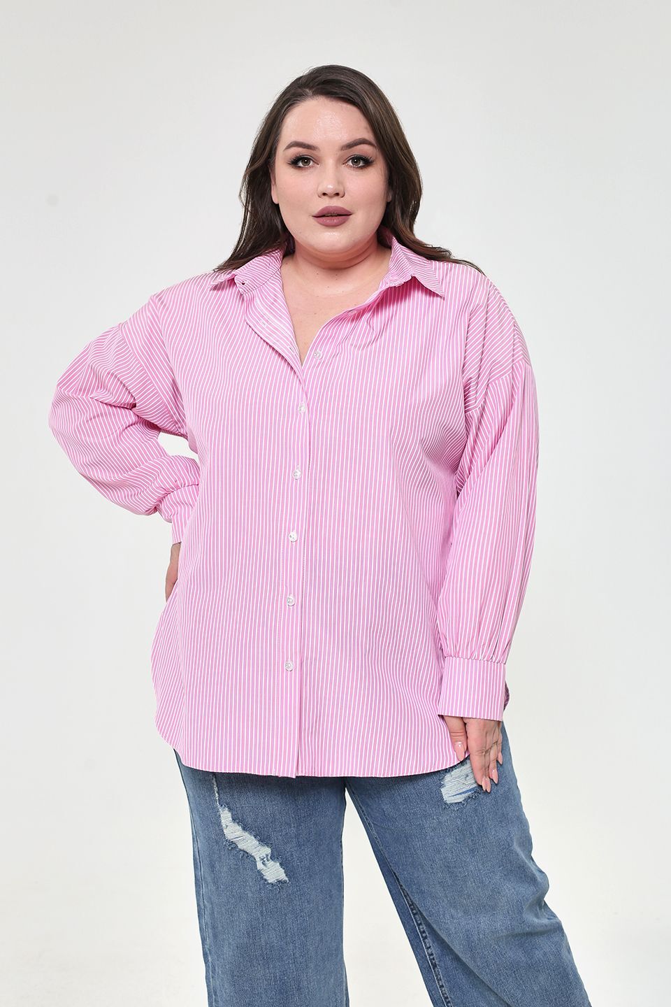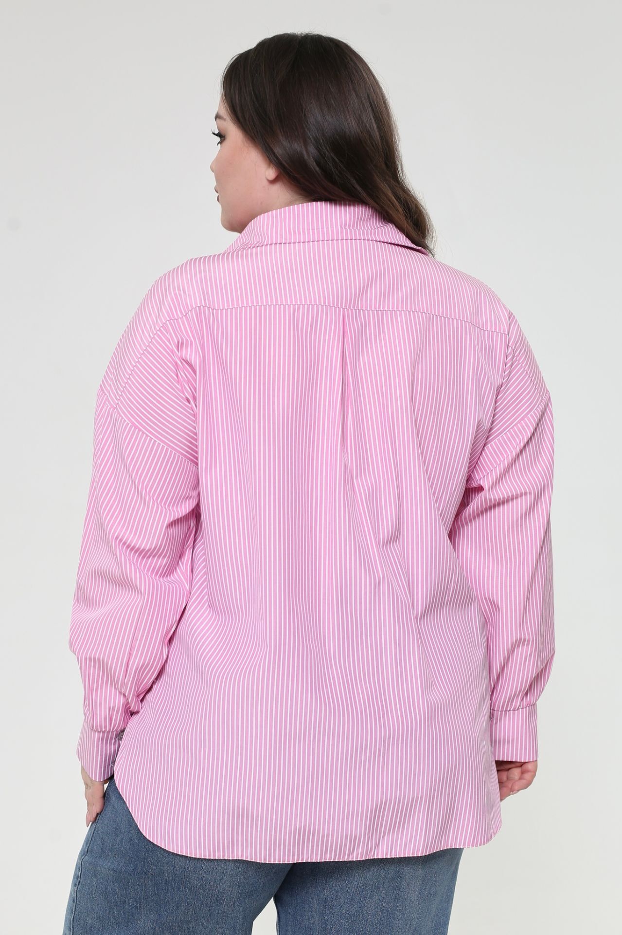 Рубашка в полоску высокий рост розовая