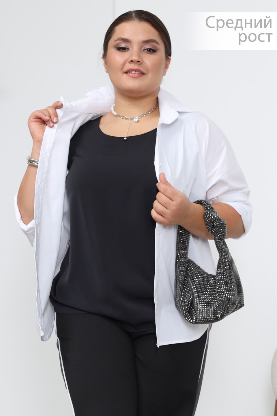 Рубашка со складками на вороте средний рост белая