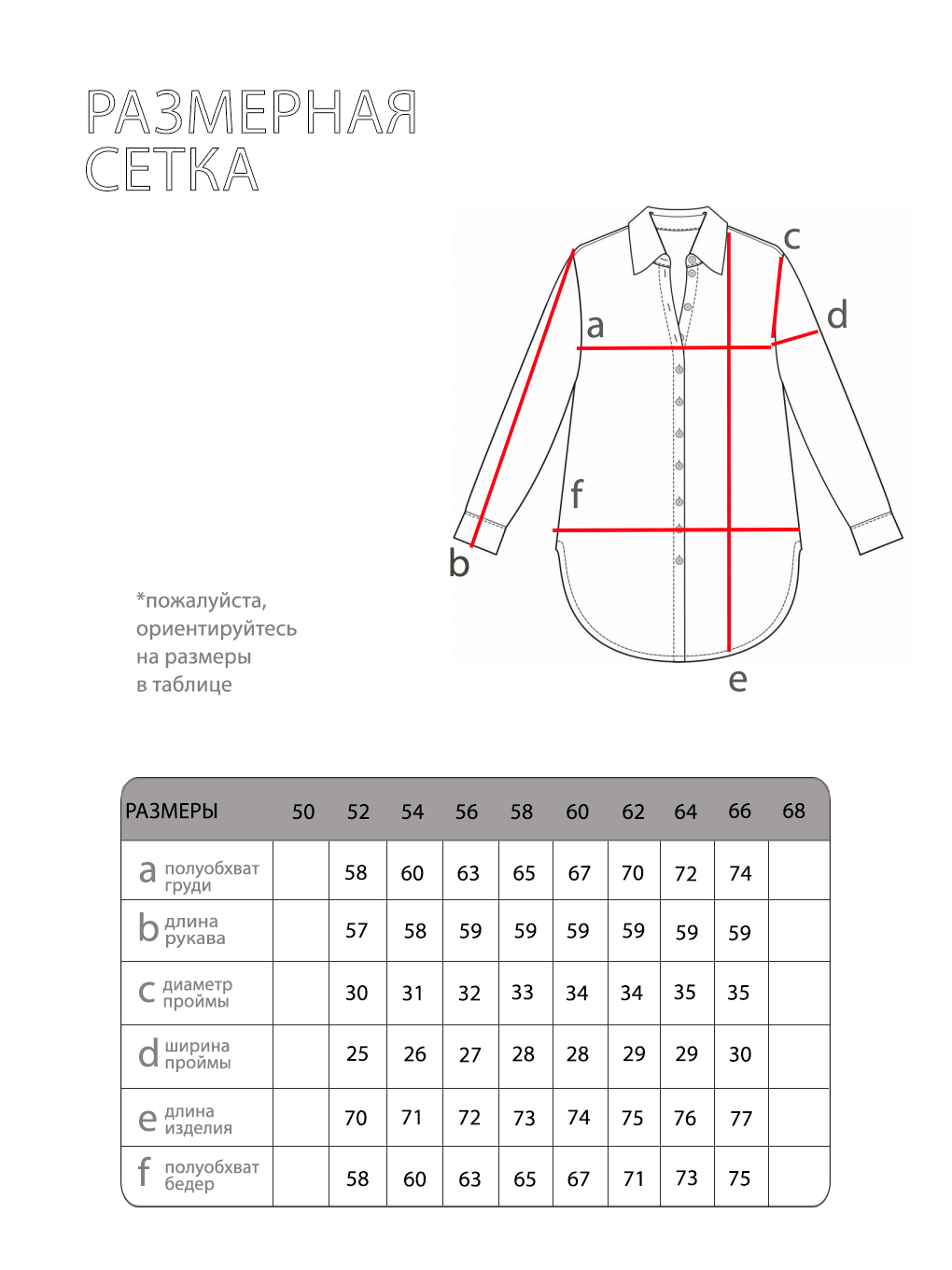 Просим обратить внимание, что в таблице приведены замеры фигуры, а не изделия.