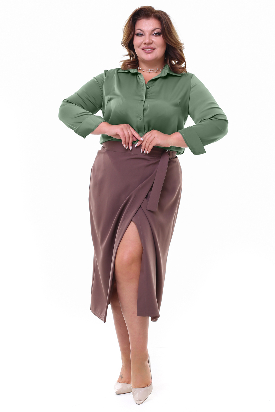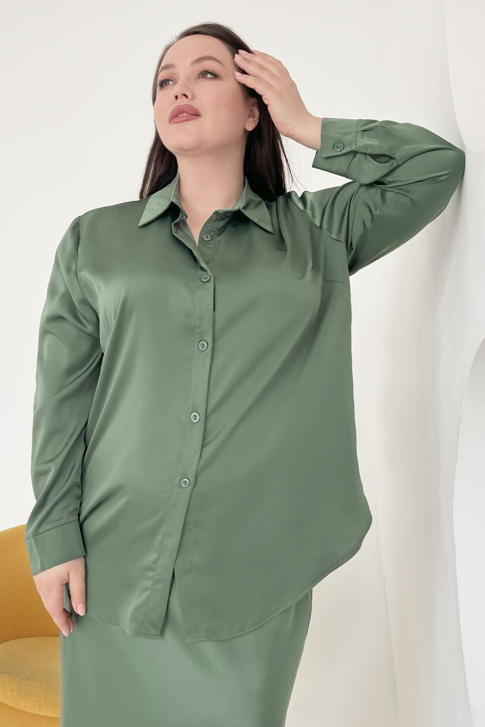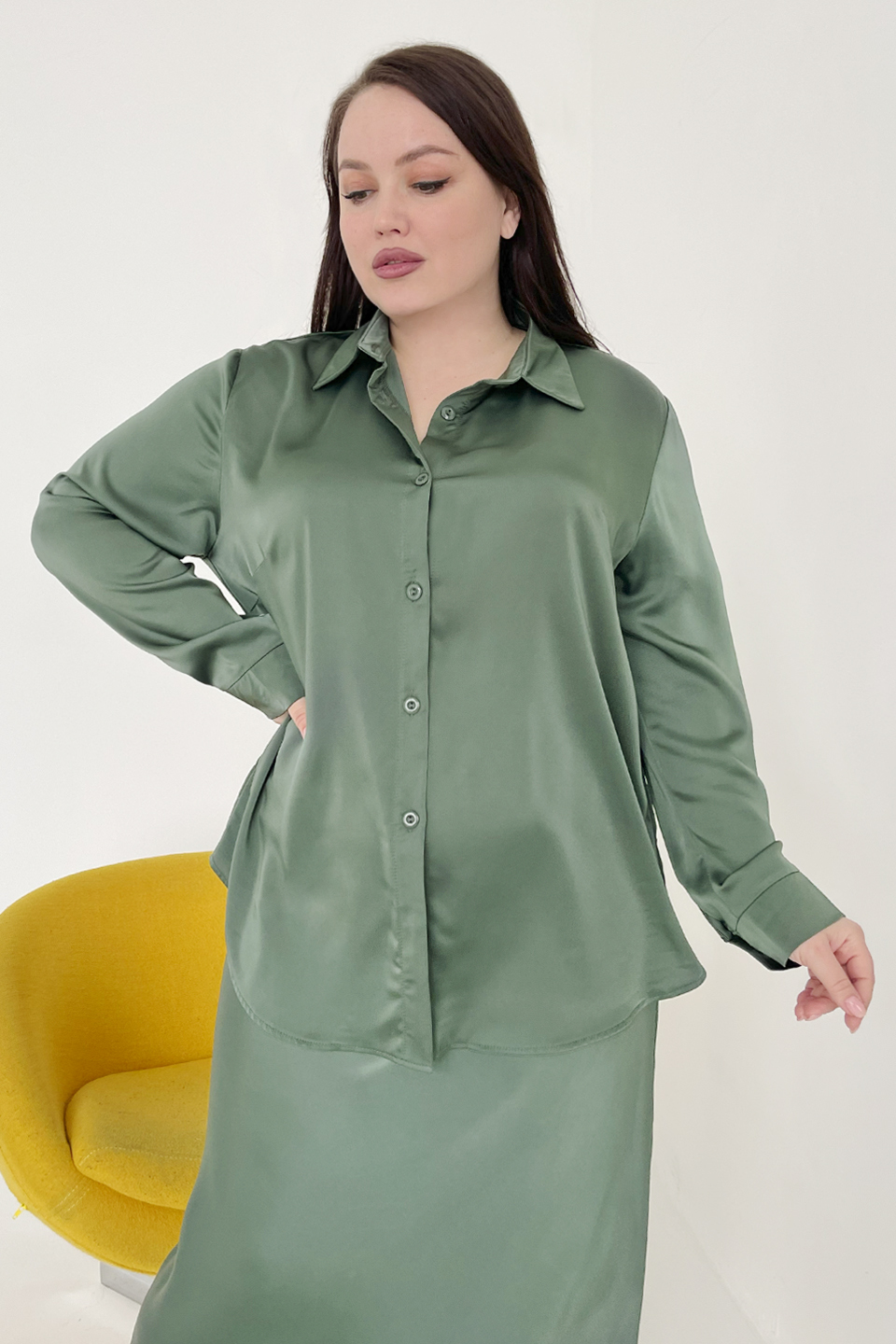 Рубашка атласная хаки