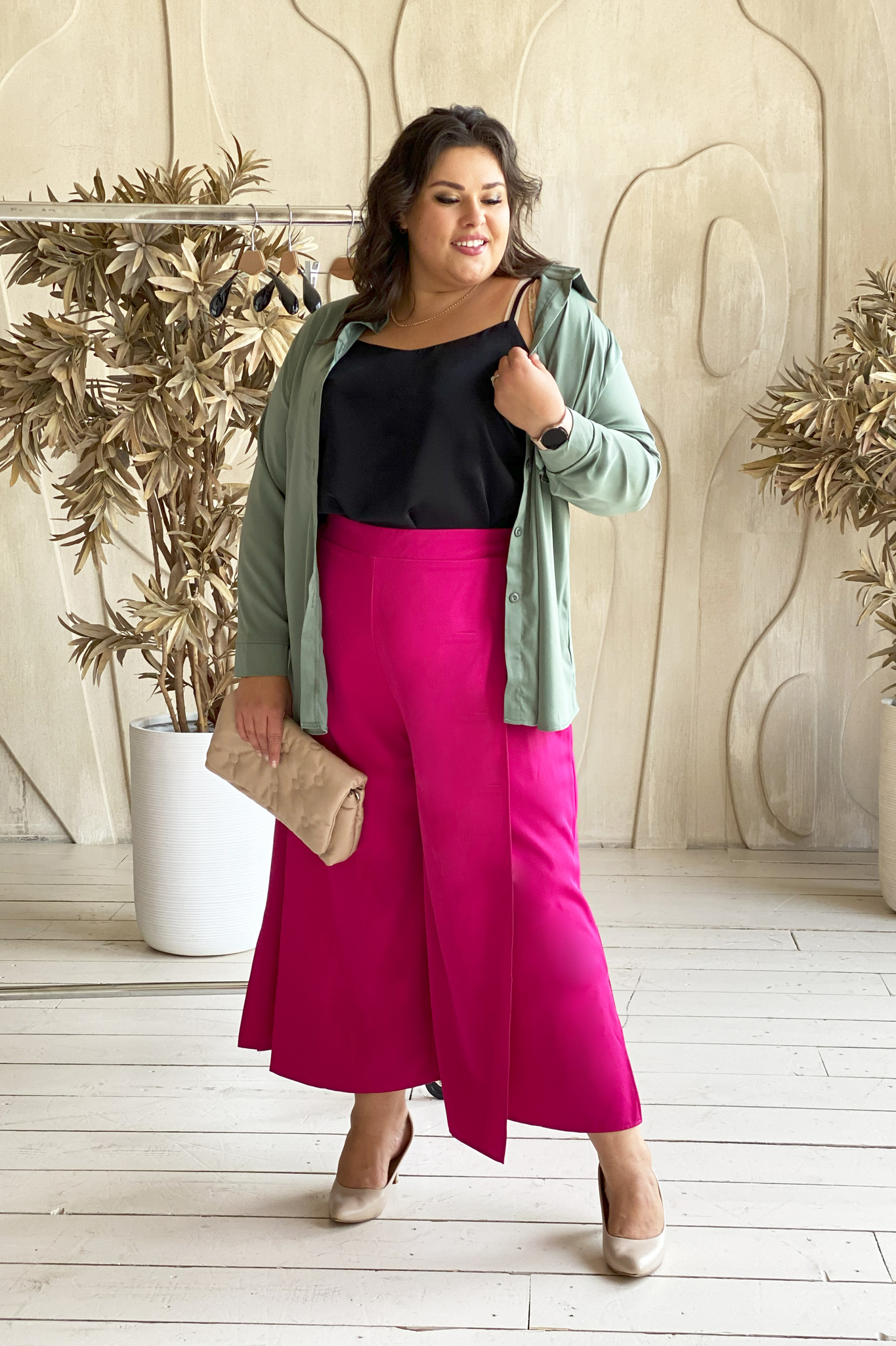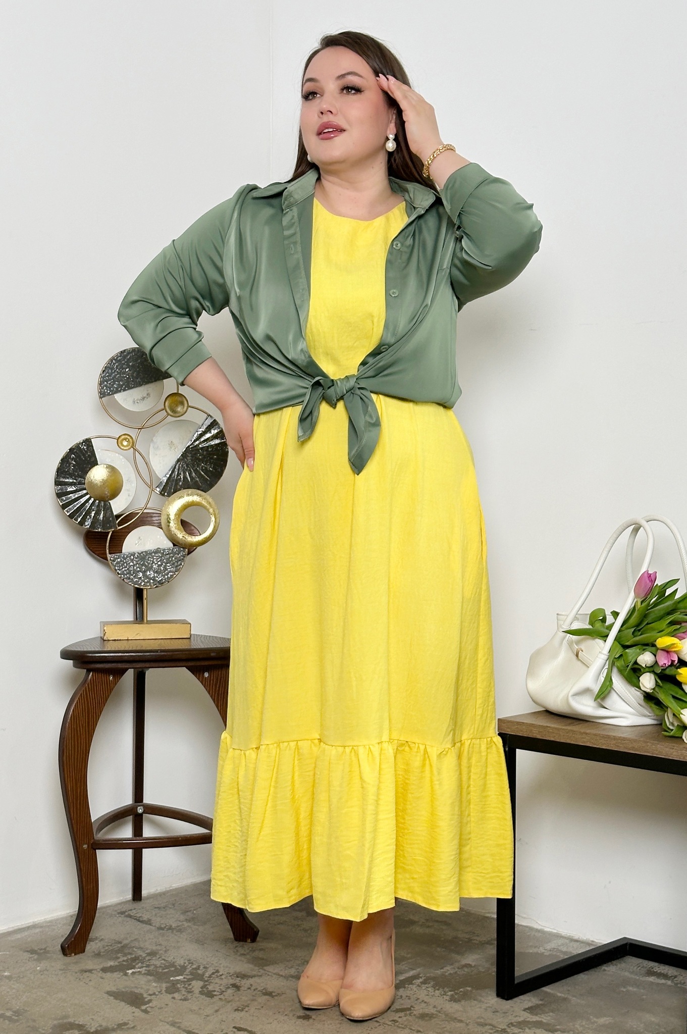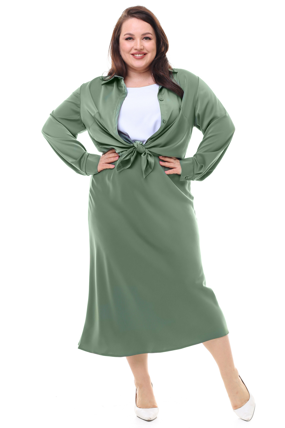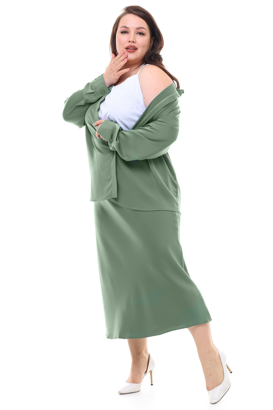 Рубашка атласная хаки