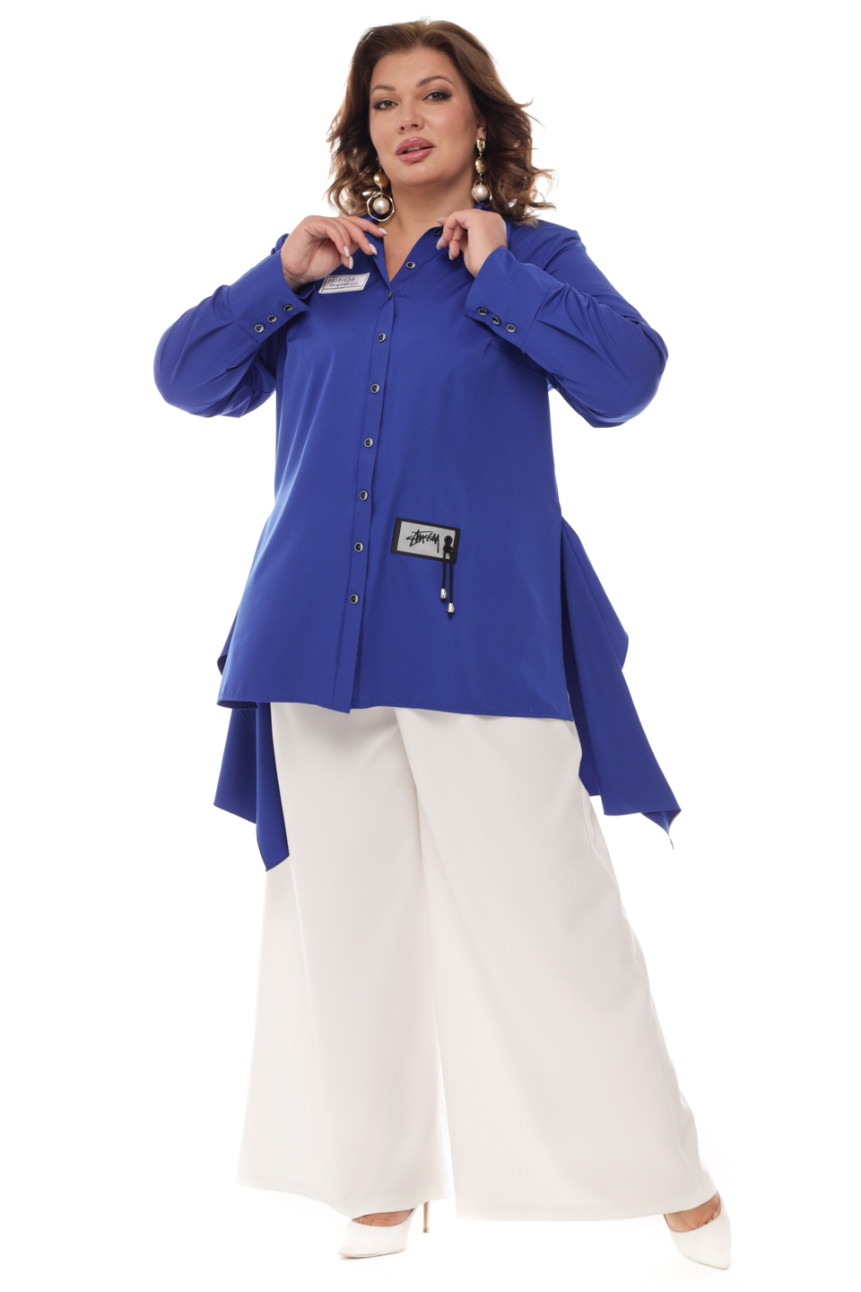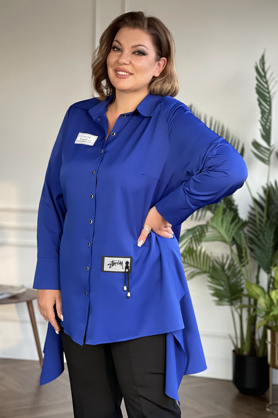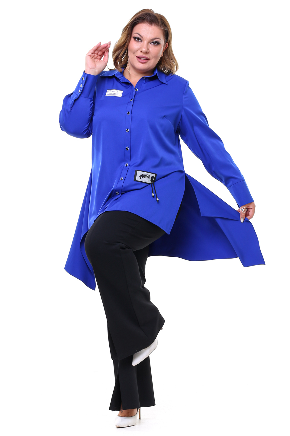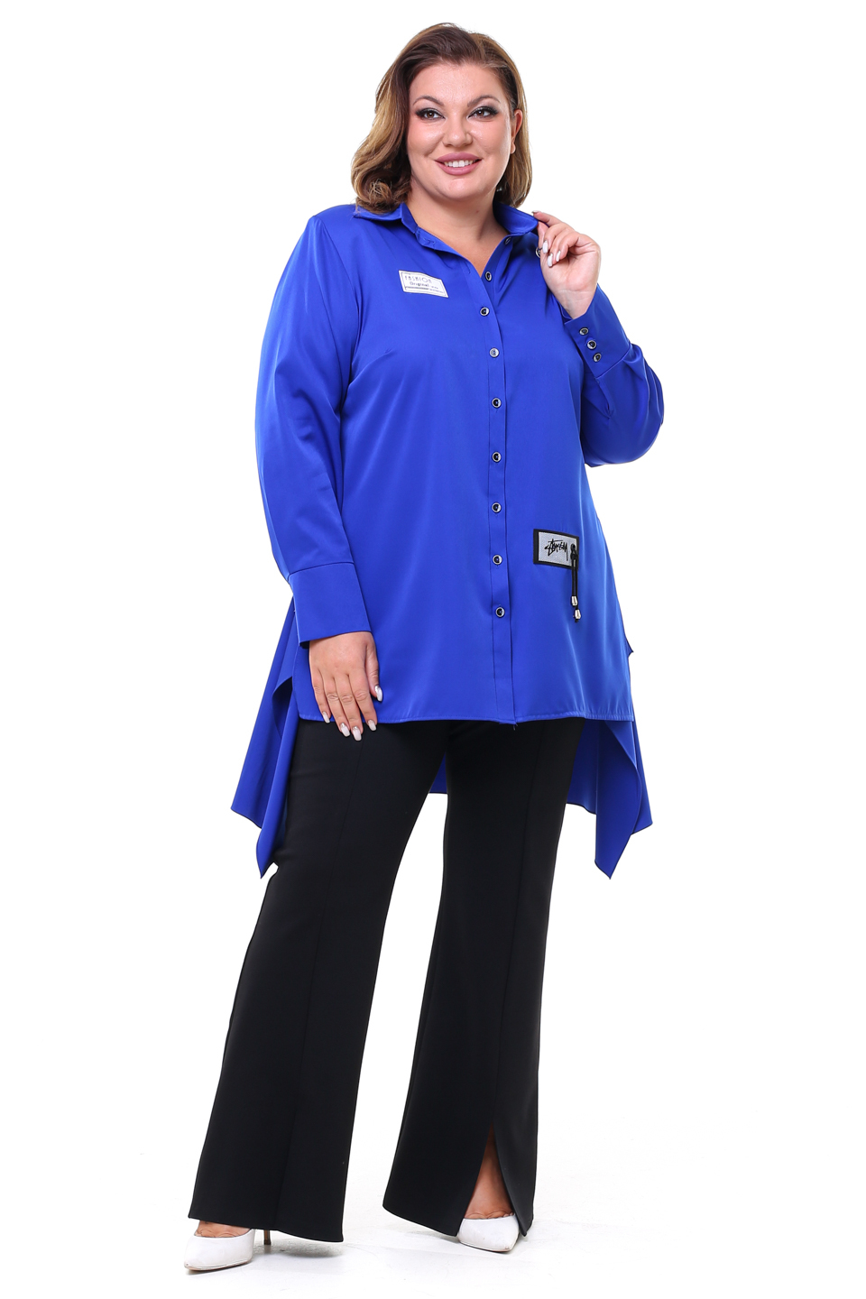 Рубашка с симметричной удлиненной спинкой электрик