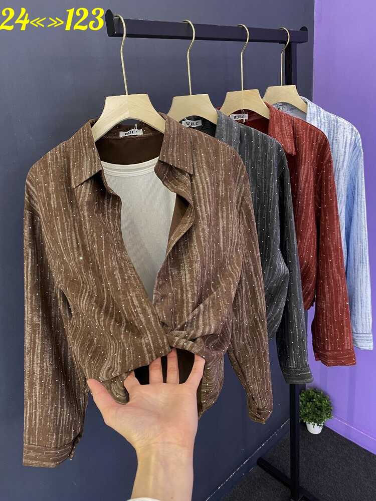 Женская рубашка+топик фабричный китай со стразами размер 42-44-46-48 оверсайз.