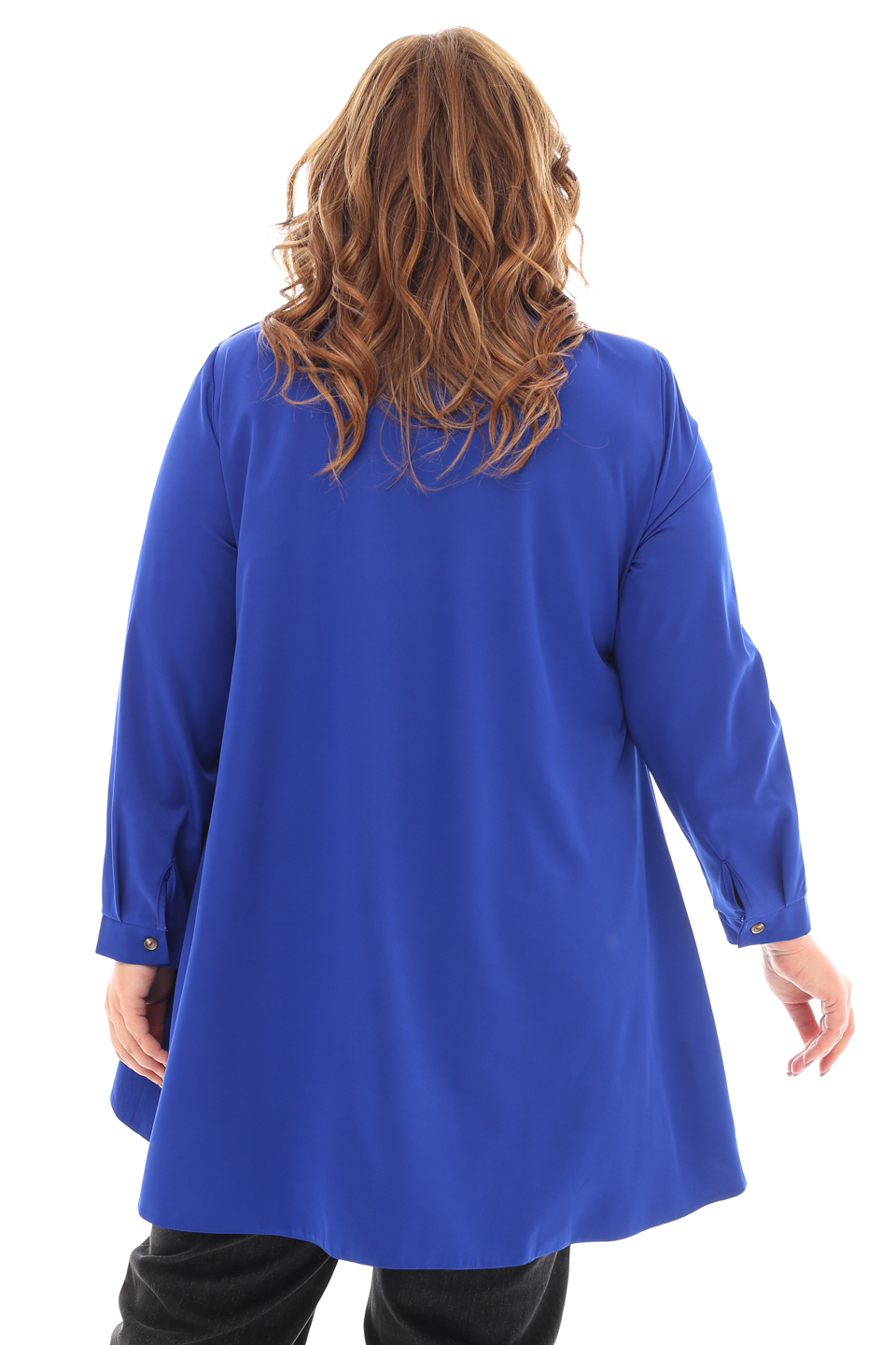 Стильная удлиненная рубашка свободного кроя - идеальный вариант для женщин, ценящих простоту и элегантность. модель привлекает оригинальным дизайном. рубашка застегивается спереди на оригинальные пуговицы под планку. имеет круглый вырез, оформленный широким кантом и рукава полной длины с небольшими разрезами. асимметричный низ визуально стройнит фигуру и зрительно вытягивает силуэт. оригинальный ярус сбоку декорирован пряжкой и кокетливыми рюшами, что добавляет женственности и романтизма. декоративные планки по спинке украшены хлястиком. удлиненная спинка способствует оптимальной посадке по фигуре. свободный крой искусно обыгрывает силуэт, а мягкий, приятный телу материал подарит комфорт на весь день. отлично подходит для комбинирования с брюками и легинсами.