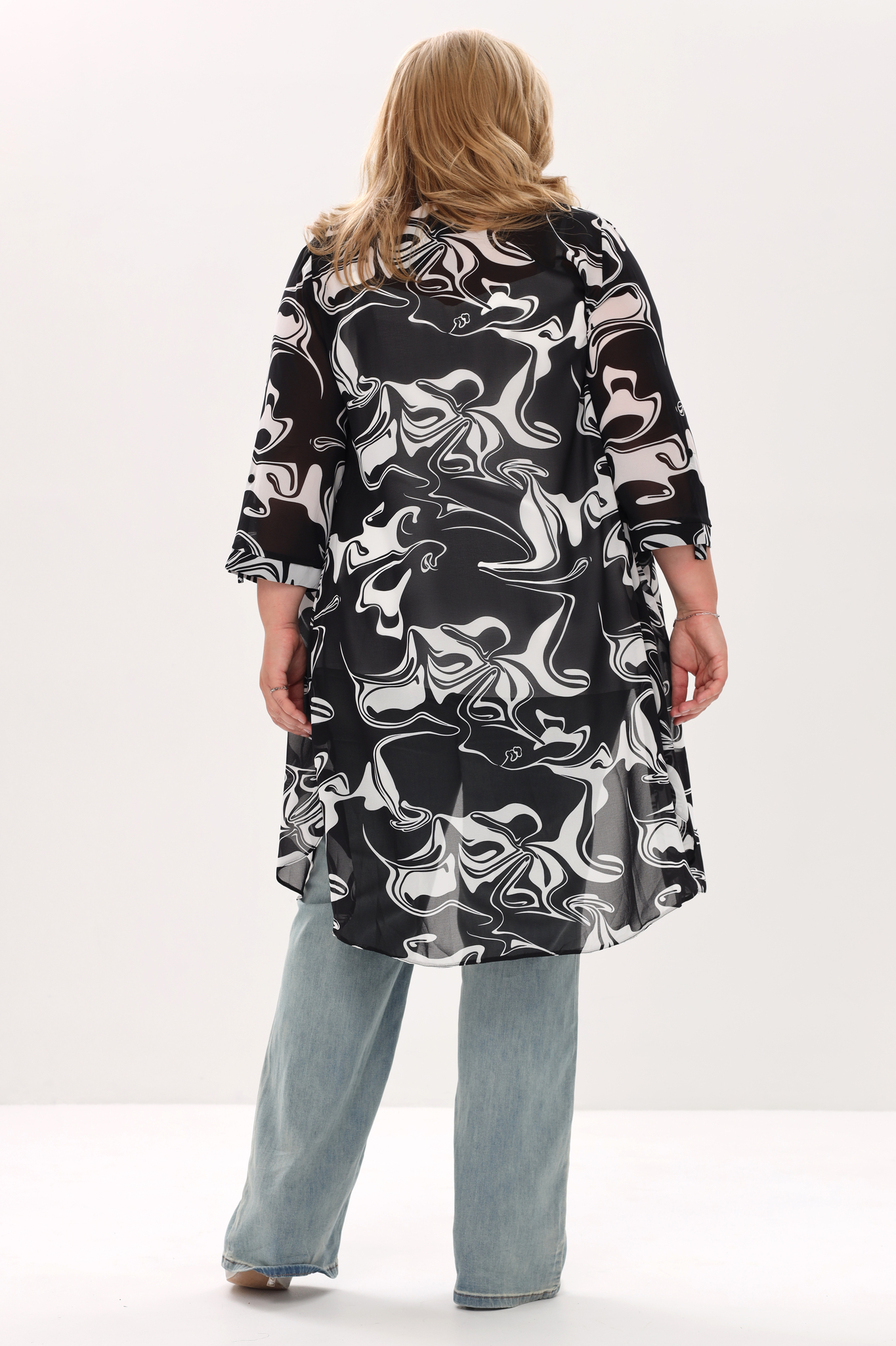 Рубашка шифоновая удлиненная "волны" черная