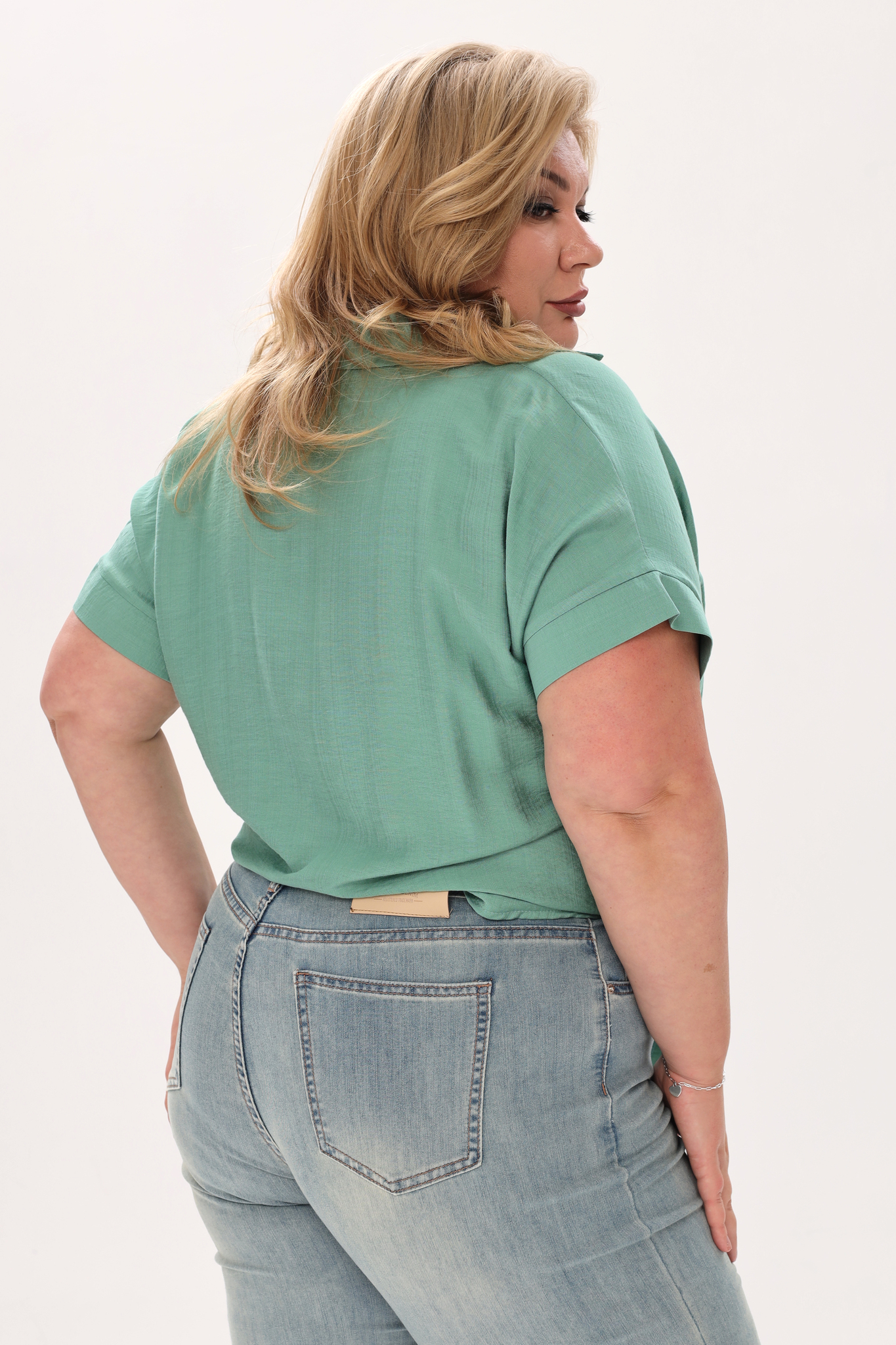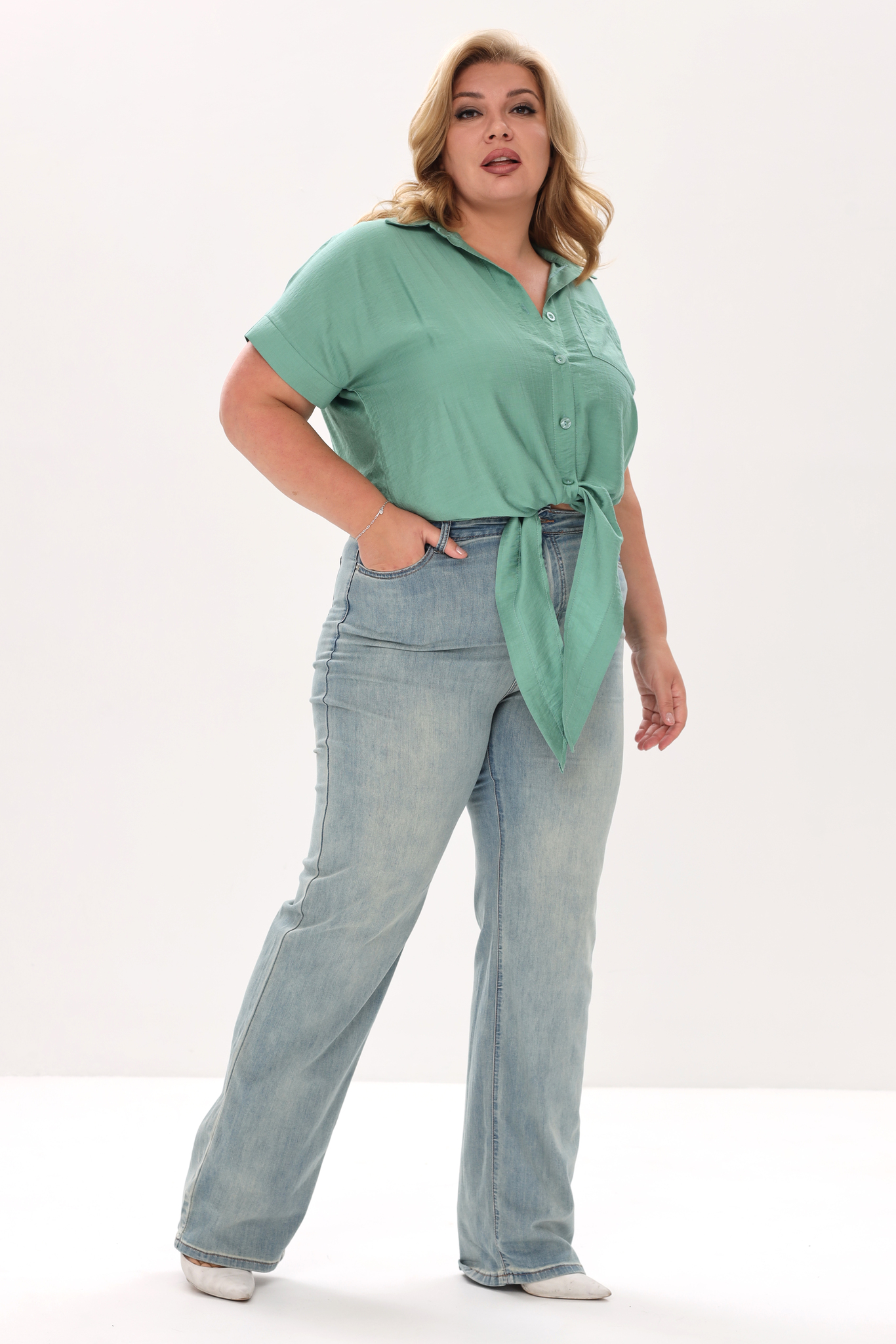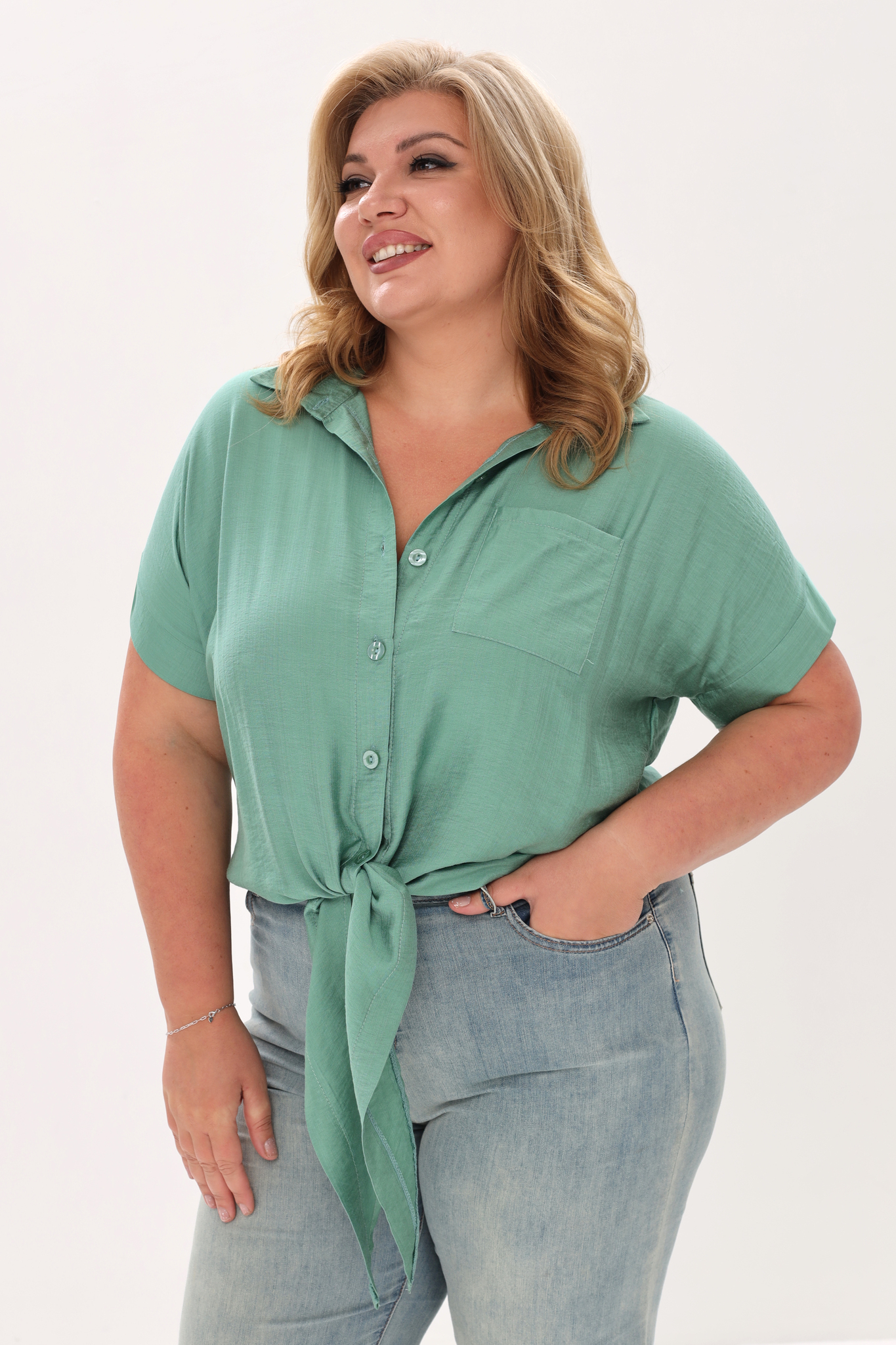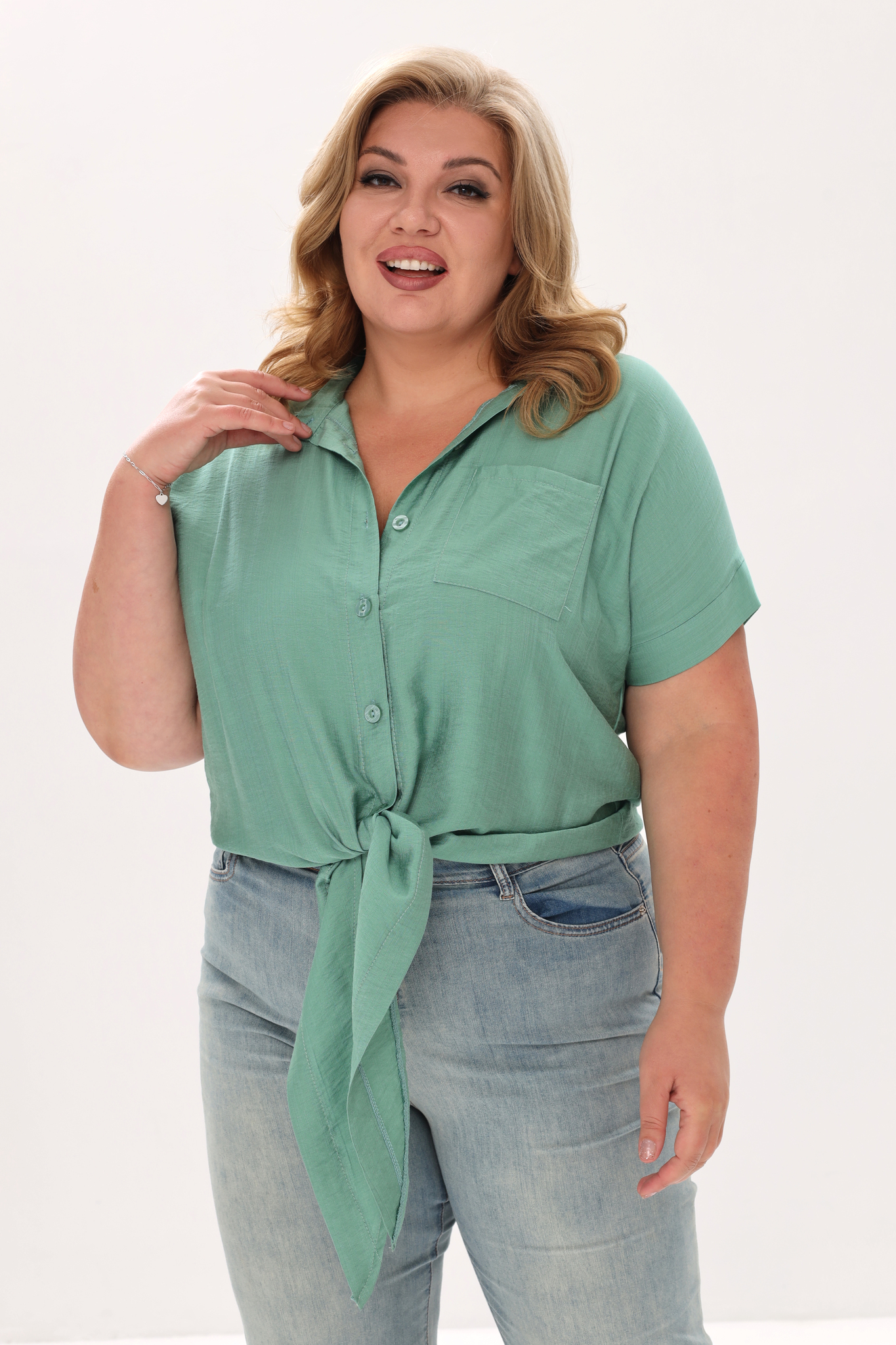 Укороченная рубашка прямого кроя из струящегося материала с крэш эффектом. короткие цельнокроеные рукава оформлены по низу небольшой планкой. круглый вырез дополнен классическим отложным воротником. модель застёгивается на небольшие пуговки под планку. оригинальные завязки по переду способствуют оптимальной посадке по фигуре. накладной карман на груди добавляет практичности. рубашка превосходно сочетается как юбками, так и с брюками и шортами.