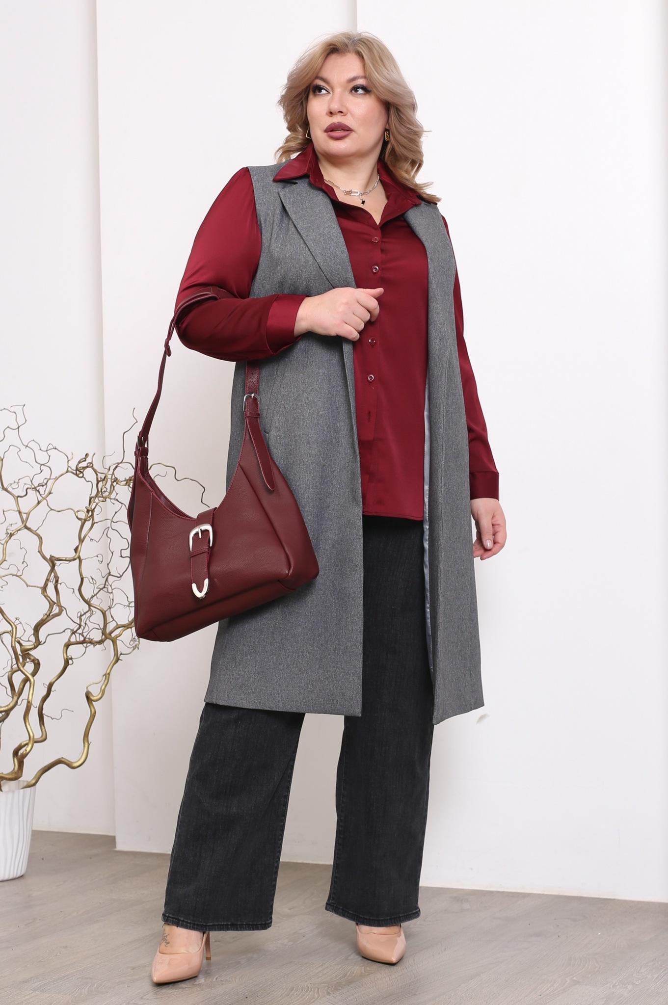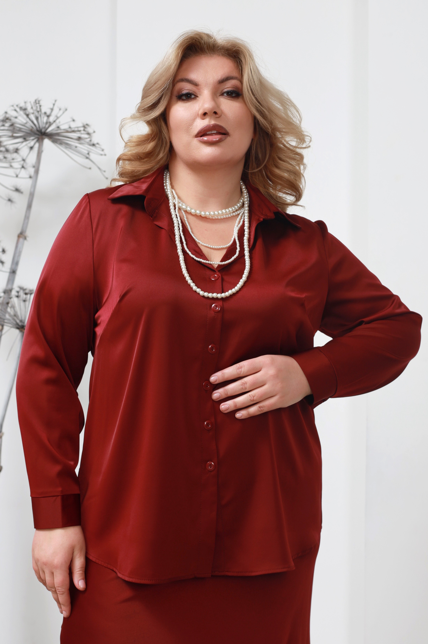 Рубашка атласная бордовая