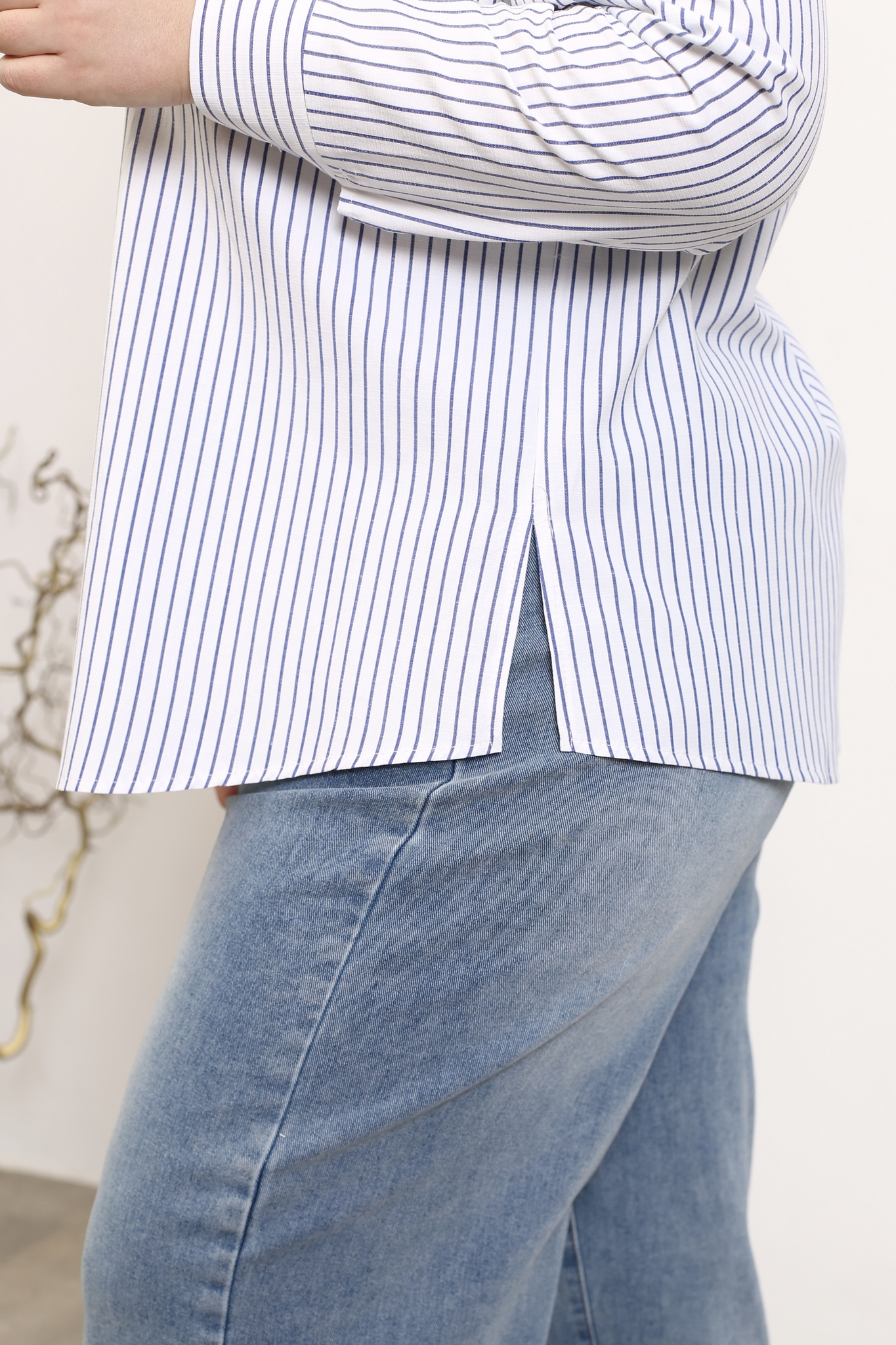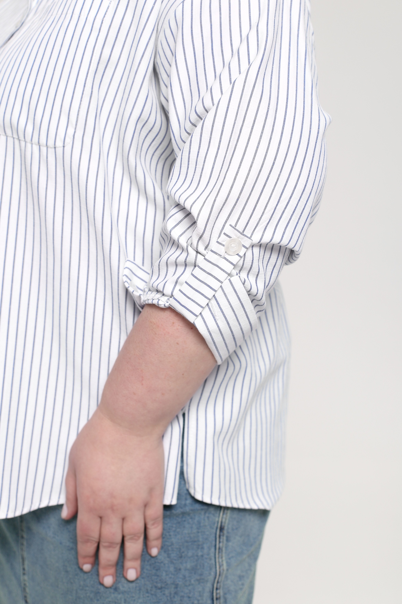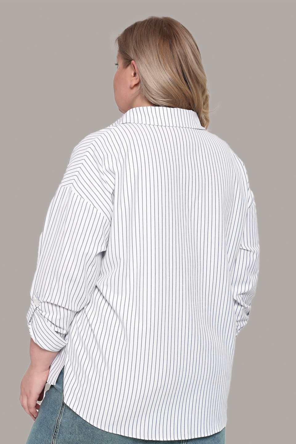 Оригинальная рубашка прямого кроя из мягкого материала. круглый вырез дополнен классическим отложным воротником. рукава полной длины с приспущенной проймой по низу оформлены манжетами с пуговками. модель застёгивается на оригинальные пуговки под планку. накладной карман на груди добавляет практичности. актуальный полосатый принт добавляет динамичности. закругленный нижний край по бокам не сковывает движений и искусно обыгрывает фигуру, маскируя мелкие недостатки. рубашка отлично сочетается как с брюками, так и с легинсами.