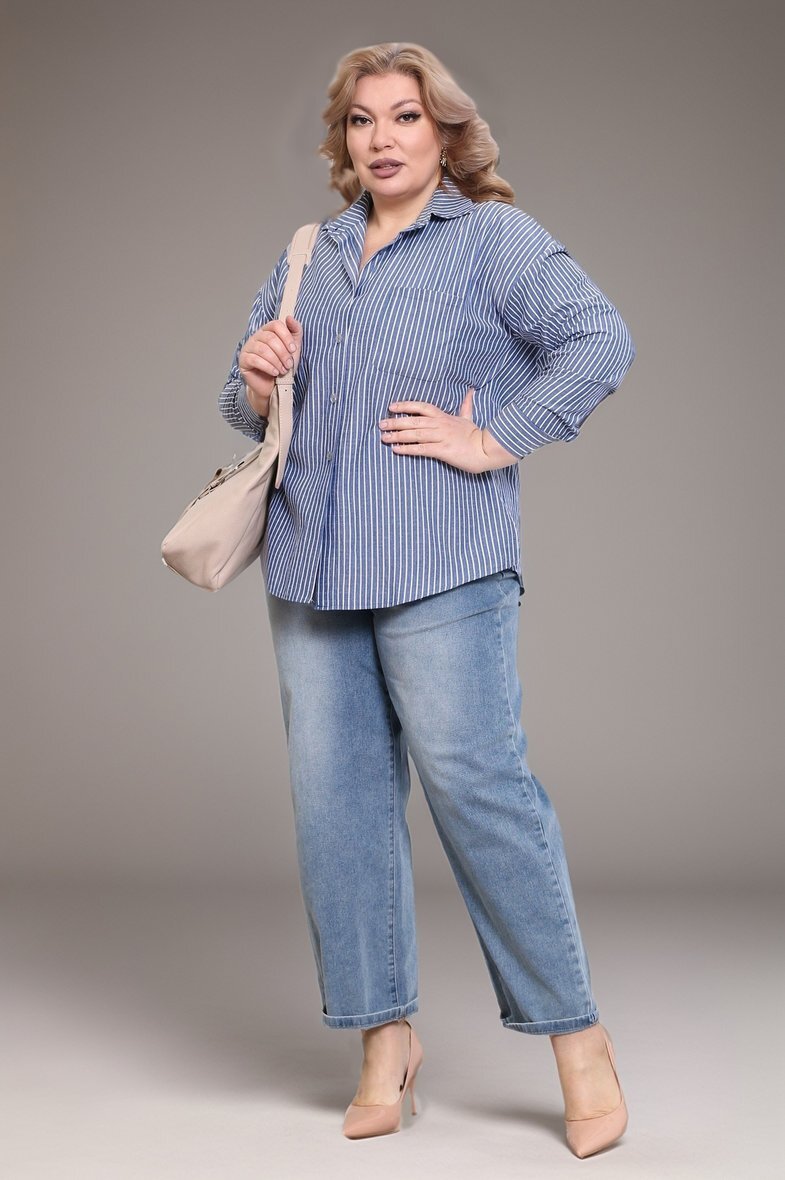 Оригинальная рубашка прямого кроя из мягкого материала. круглый вырез дополнен классическим отложным воротником. рукава полной длины с приспущенной проймой по низу оформлены манжетами с пуговками. модель застёгивается на оригинальные пуговки под планку. накладной карман на груди добавляет практичности. актуальный полосатый принт добавляет динамичности. закругленный нижний край по бокам не сковывает движений и искусно обыгрывает фигуру, маскируя мелкие недостатки. рубашка отлично сочетается как с брюками, так и с легинсами.