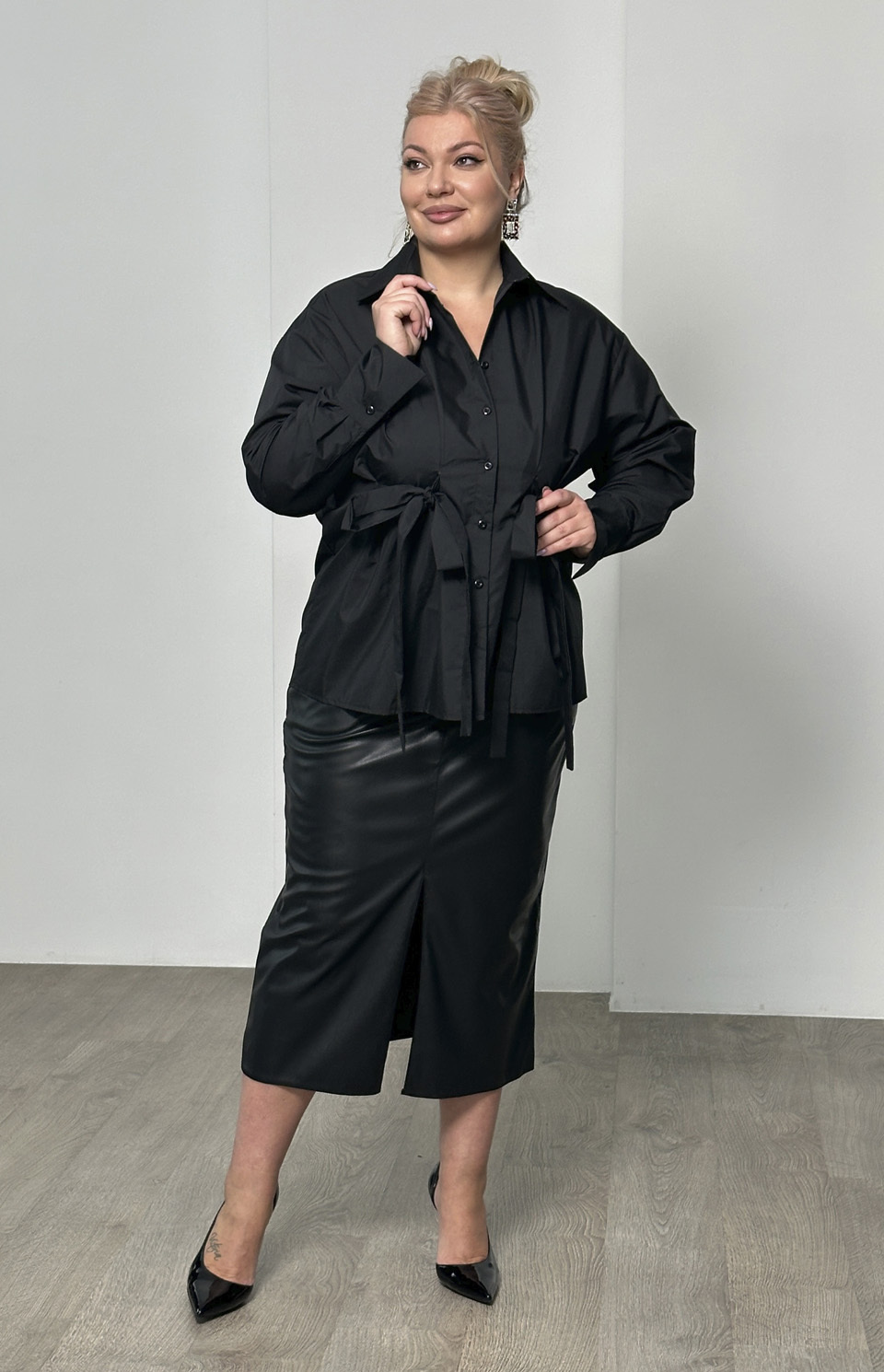 Рубашка с завязками на талии черная