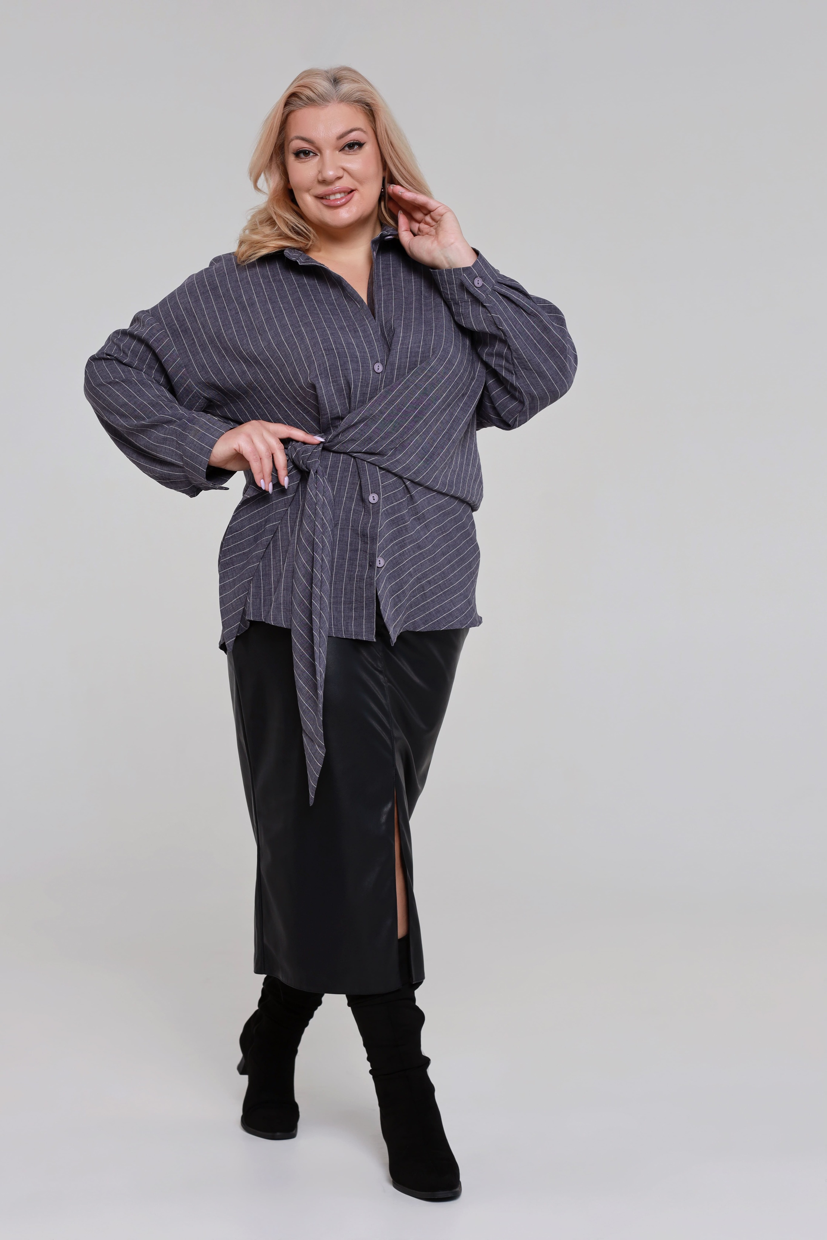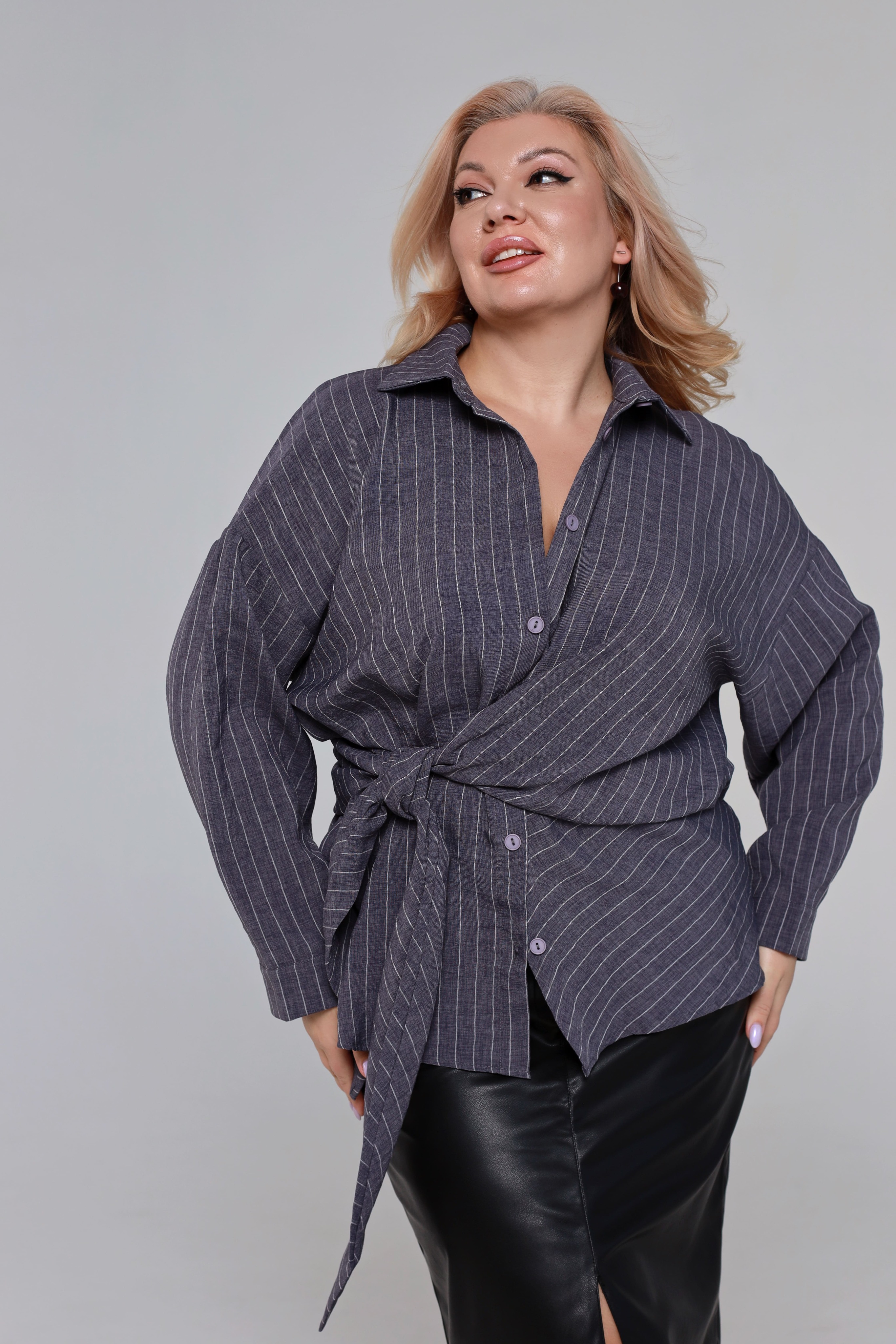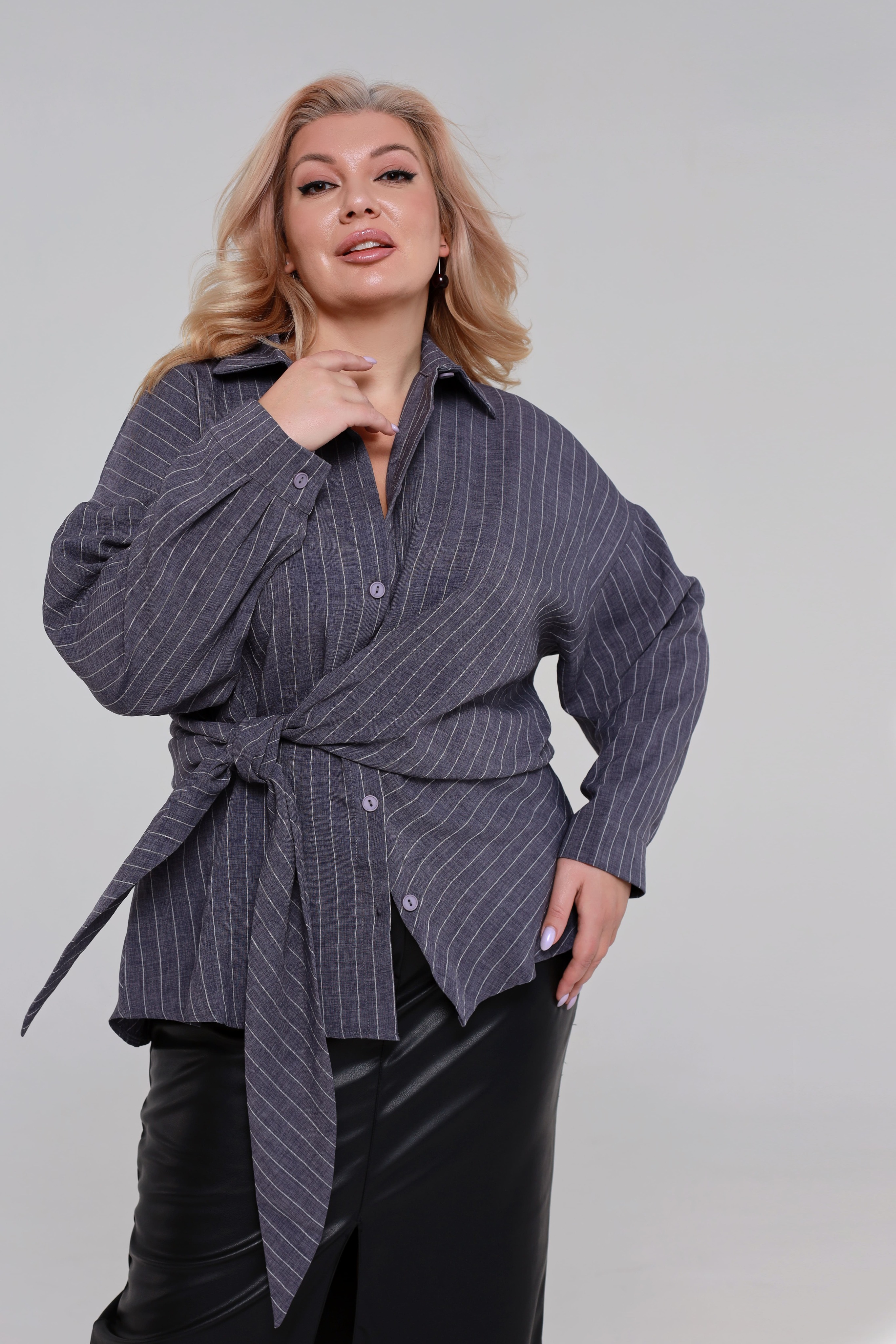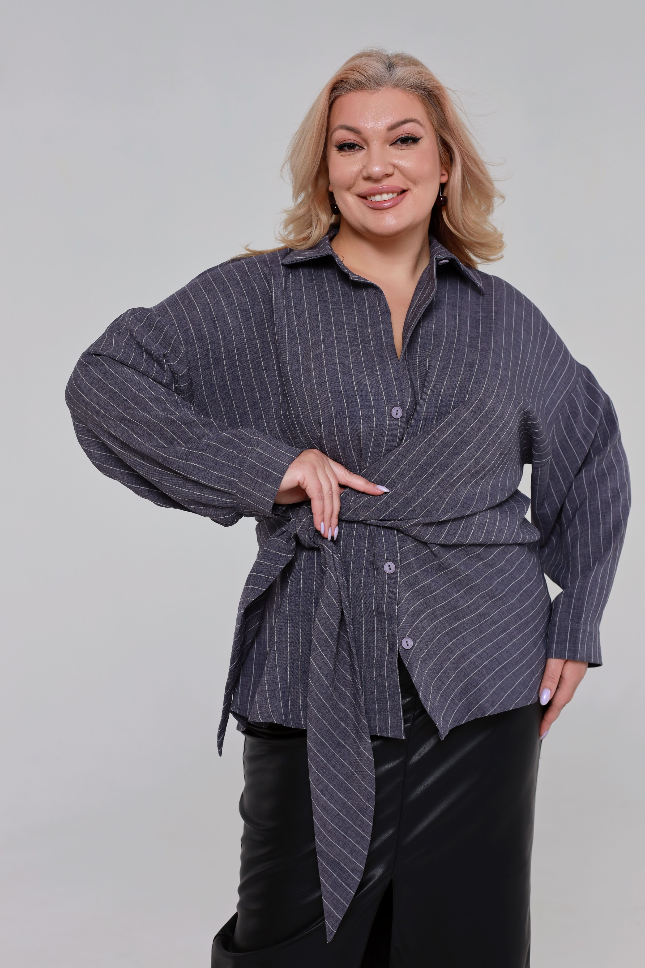 Рубашка "чикаго" полоска с завязкой сбоку серая