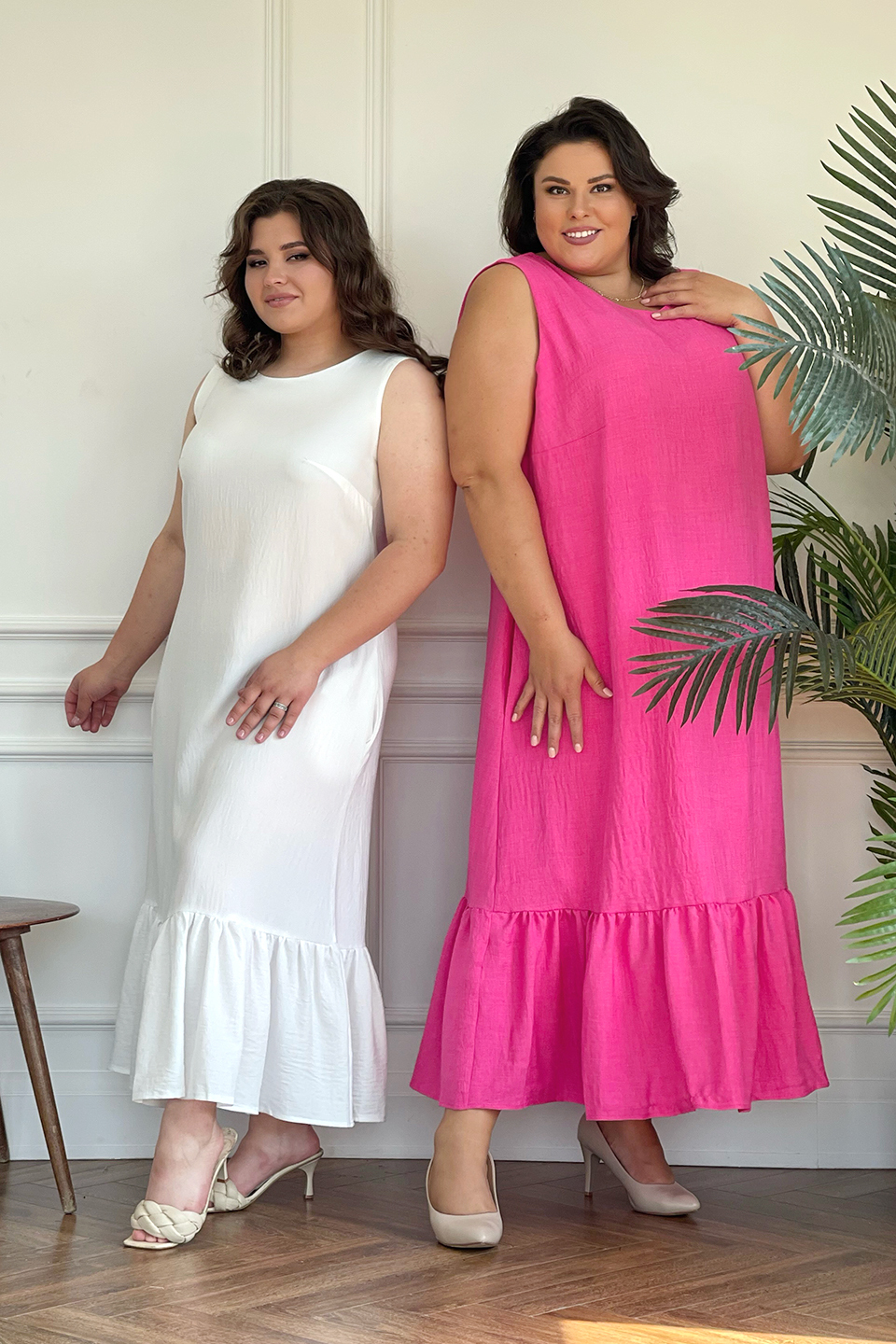 Романтичный сарафан-макси из мягкого материала имеет круглый вырез. вытачки на груди обеспечивают оптимальную посадку по фигуре. оригинальный волан по низу добавляет женственности и искусно обыгрывает силуэт. однотонная расцветка освежает образ и добавляет нежности. свободный крой не сковывает движений и скрывает несовершенства фигуры. вшивные карманы по бокам добавляют практичности. модель приятна телу, хорошо сидит и красиво обыгрывает фигуру. сарафан незаменим в жаркую погоду, когда хочется носить максимально легкую и открытую одежду.
