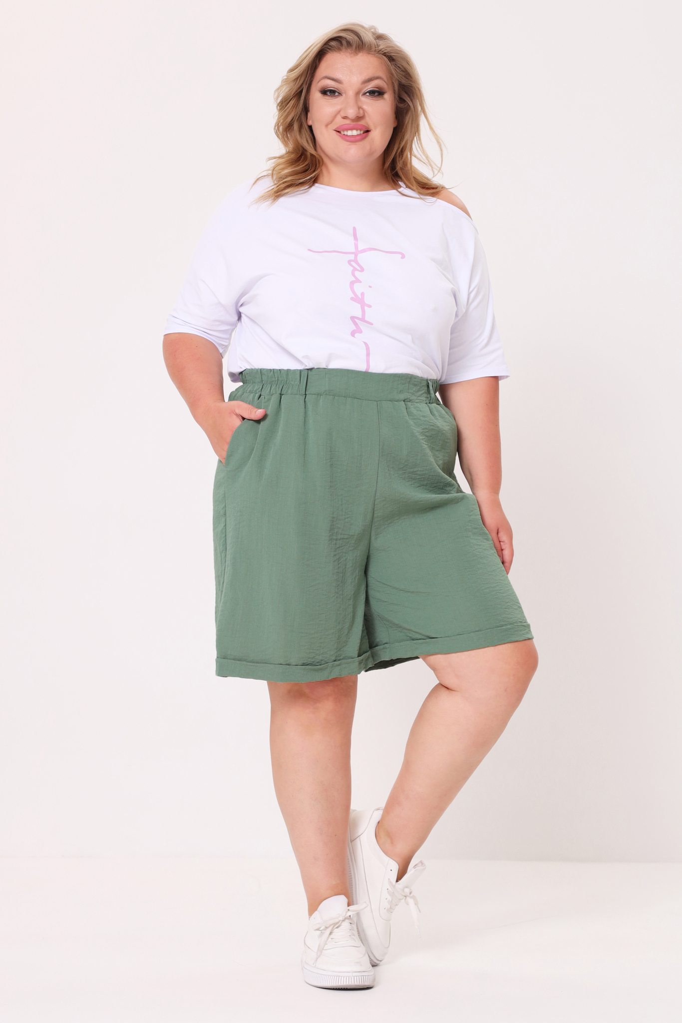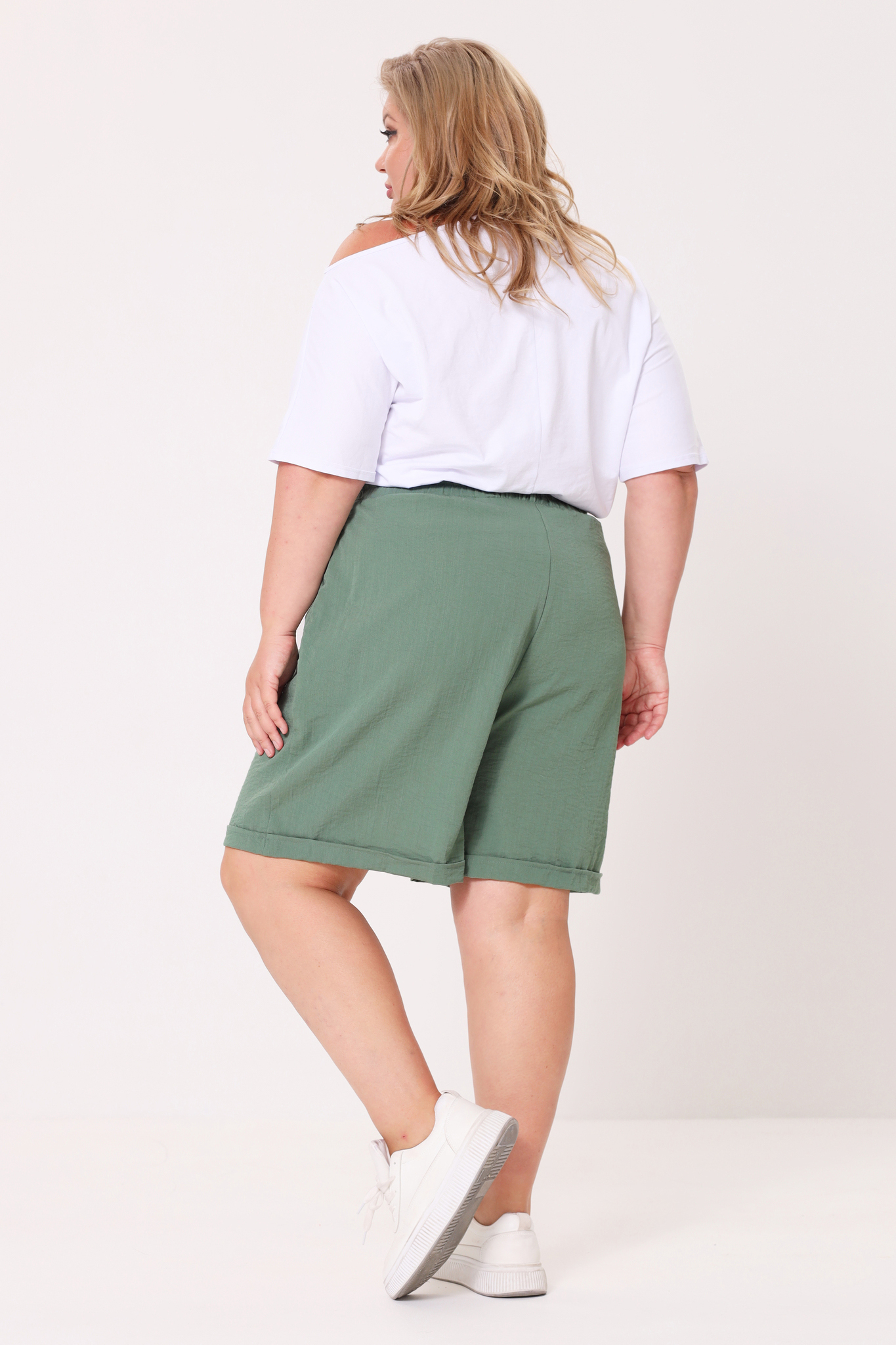 Шорты из мягкого струящегося материала отлично сидят за счет комфортной высокой посадки и эластичной резинки на поясе со шлевками. глубокие карманы по бокам добавляют практичности. по низу небольшие отвороты, с помощью которых можно отрегулировать длину. модель не сковывает движений, прекрасно подчёркивает фигуру и привлекательно выглядит. благодаря свободному крою создается ощущение комфорта, свободы и раскованности. данная модель – идеальный вариант для прогулок и отдыха, уместный как в домашних, так и в городских образах. эти шорты будут прекрасно смотреться с кроссовками, кедами и даже туфлями.