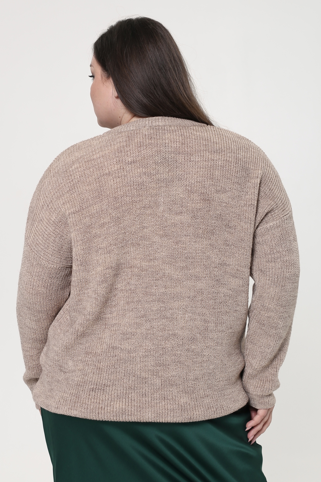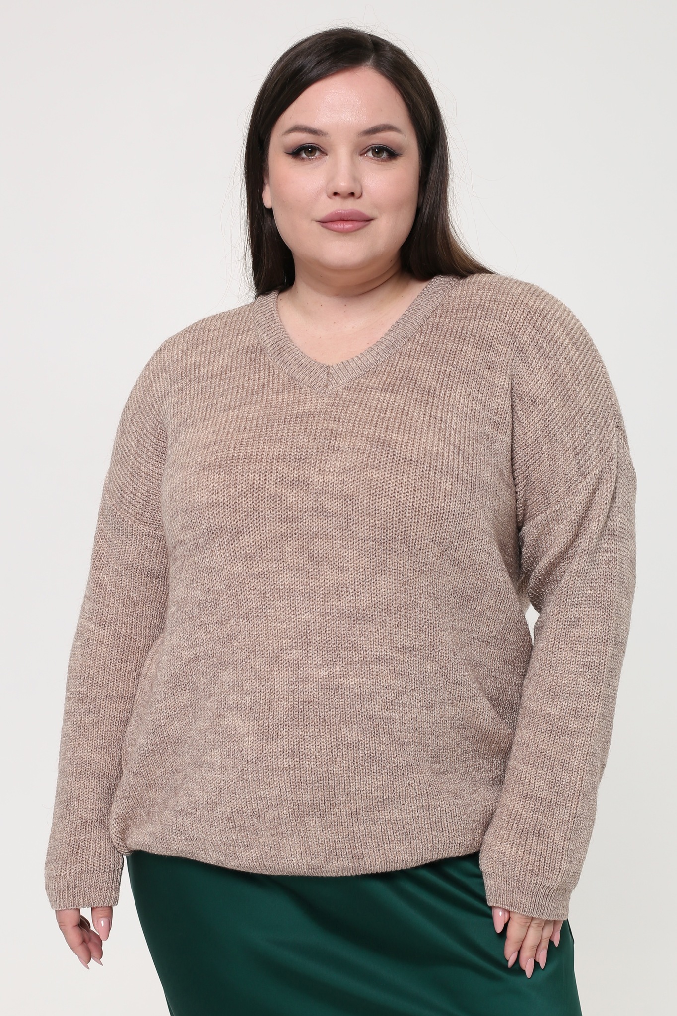 Мягкий вязанный свитер свободного кроя выполнена из мягкого трикотажа. модель имеет v-образный вырез и приспущенные рукава полной длины. фактурная вязка освежает образ и добавляет элегантности. свободный силуэт искусно обыгрывает фигуру, а мягкий материал обеспечивает максимальный комфорт в течение всего дня. однотонная классическая модель прослужит не один сезон, сохраняя свой первостепенный идеальный внешний вид. отлично сочетается с юбками и брюками.