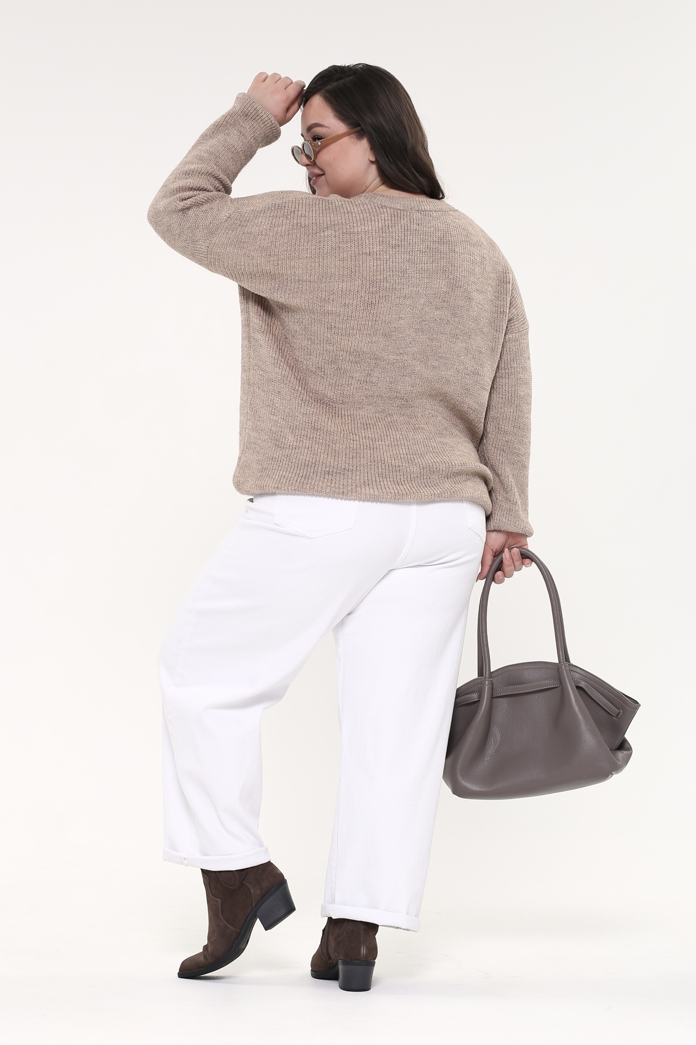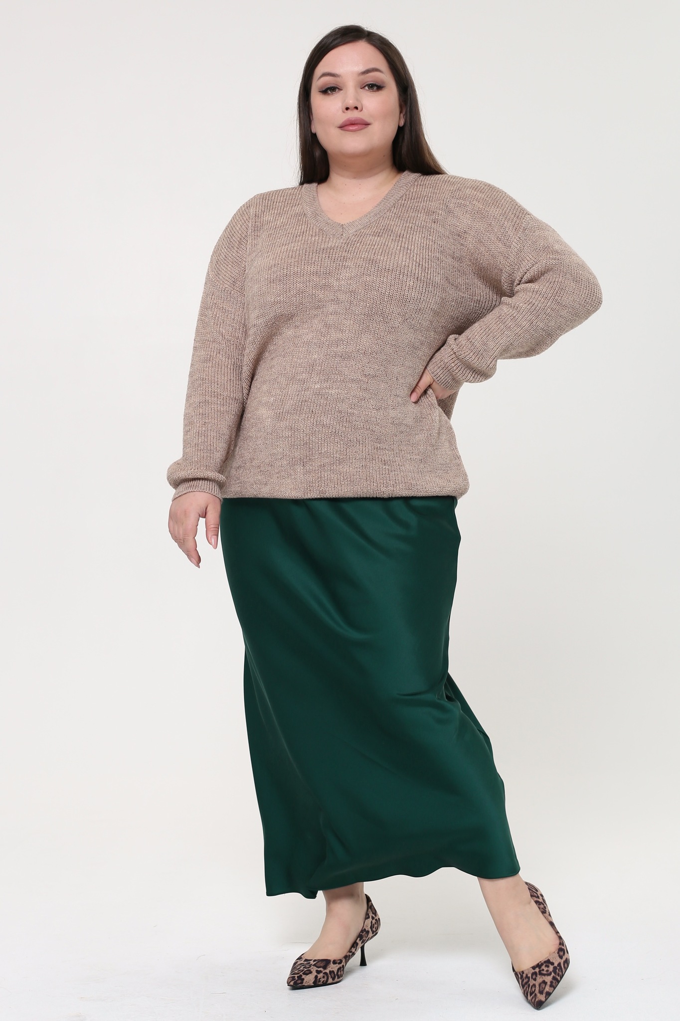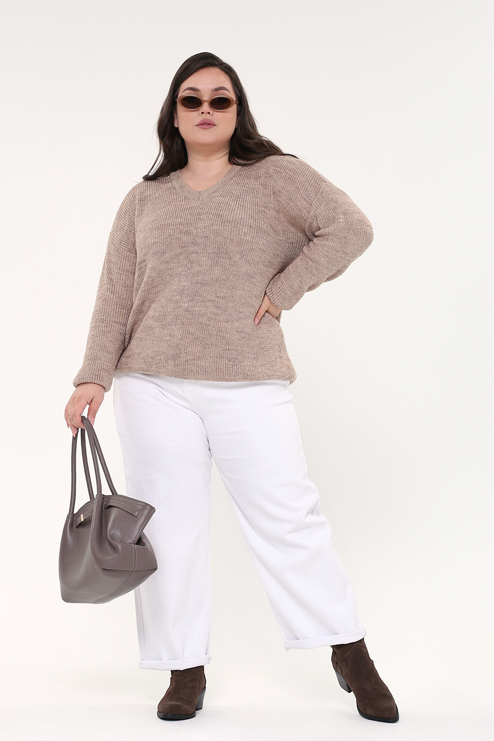 Свитер вязаный v-вырез бежевая