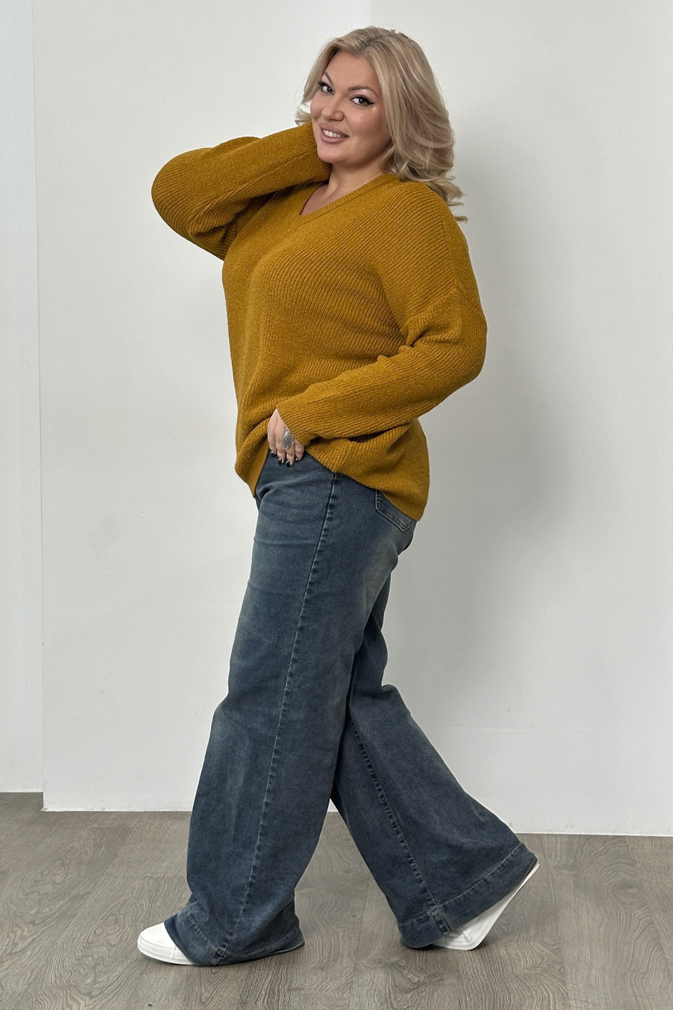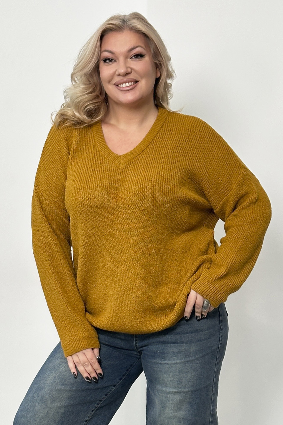 Мягкий вязанный свитер свободного кроя выполнена из мягкого трикотажа. модель имеет v-образный вырез и приспущенные рукава полной длины. фактурная вязка освежает образ и добавляет элегантности. свободный силуэт искусно обыгрывает фигуру, а мягкий материал обеспечивает максимальный комфорт в течение всего дня. однотонная классическая модель прослужит не один сезон, сохраняя свой первостепенный идеальный внешний вид. отлично сочетается с юбками и брюками.