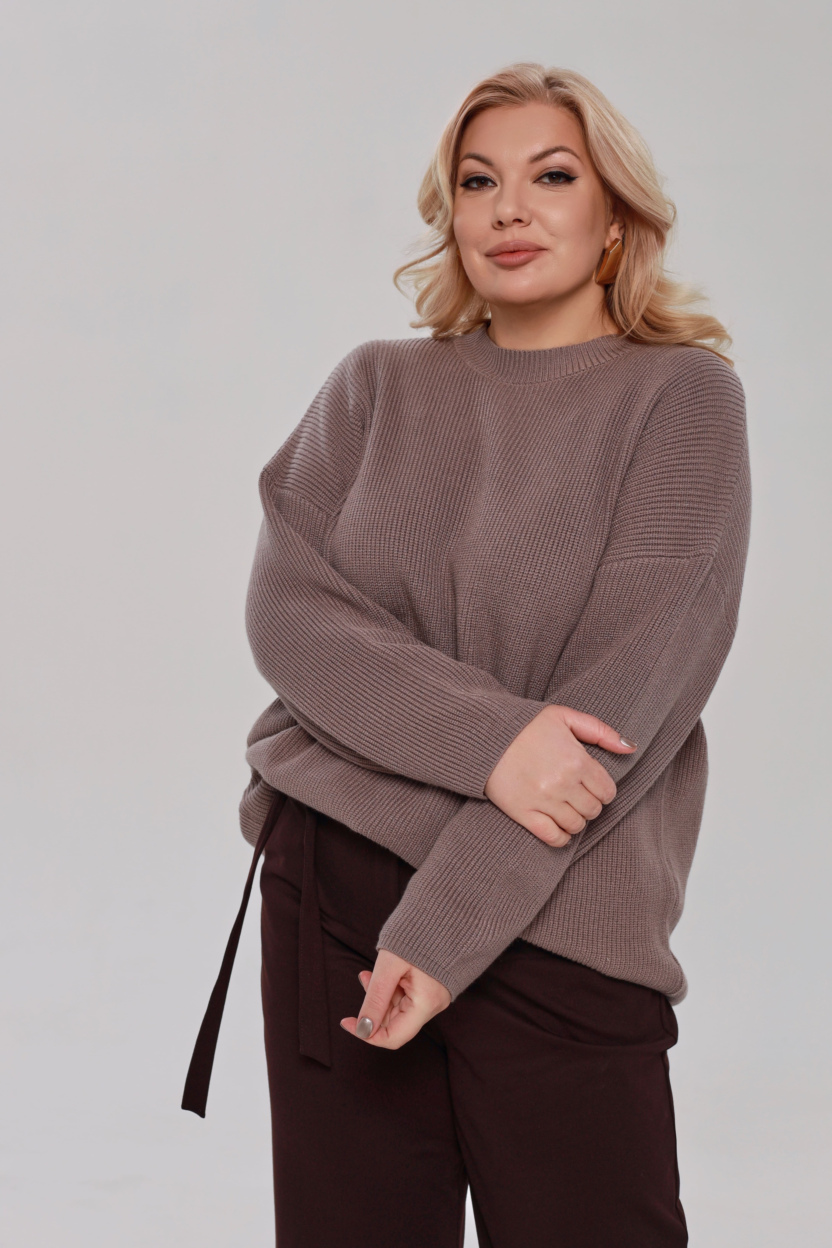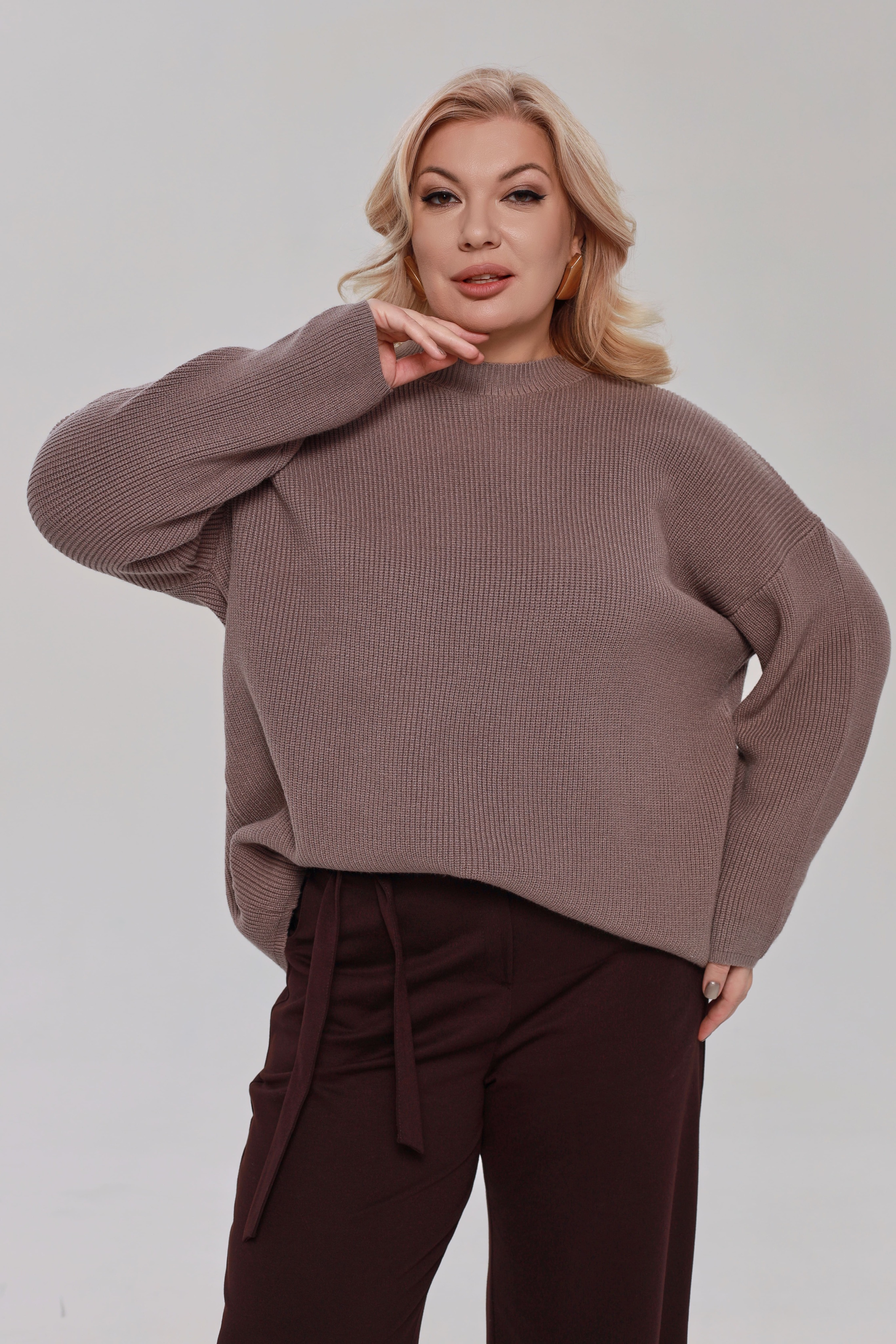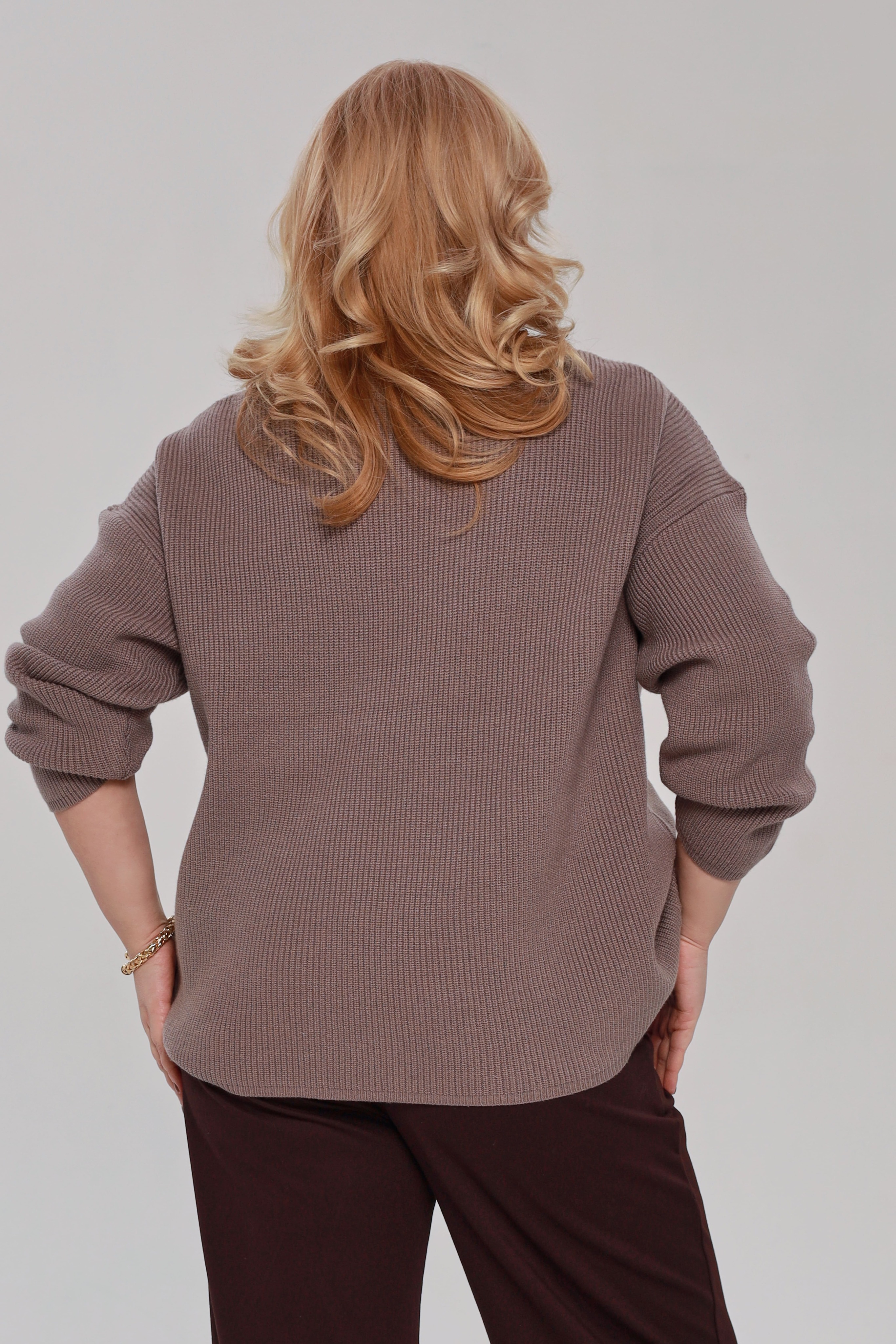 Стильный вязанный свитер свободного кроя выполнена из мягкого трикотажа. модель имеет круглый вырез и приспущенные рукава полной длины. фактурная вязка освежает образ и добавляет элегантности. свободный силуэт искусно обыгрывает фигуру, а мягкий материал обеспечивает максимальный комфорт в течение всего дня. однотонная классическая модель прослужит не один сезон, сохраняя свой первостепенный идеальный внешний вид. отлично сочетается с юбками и брюками.