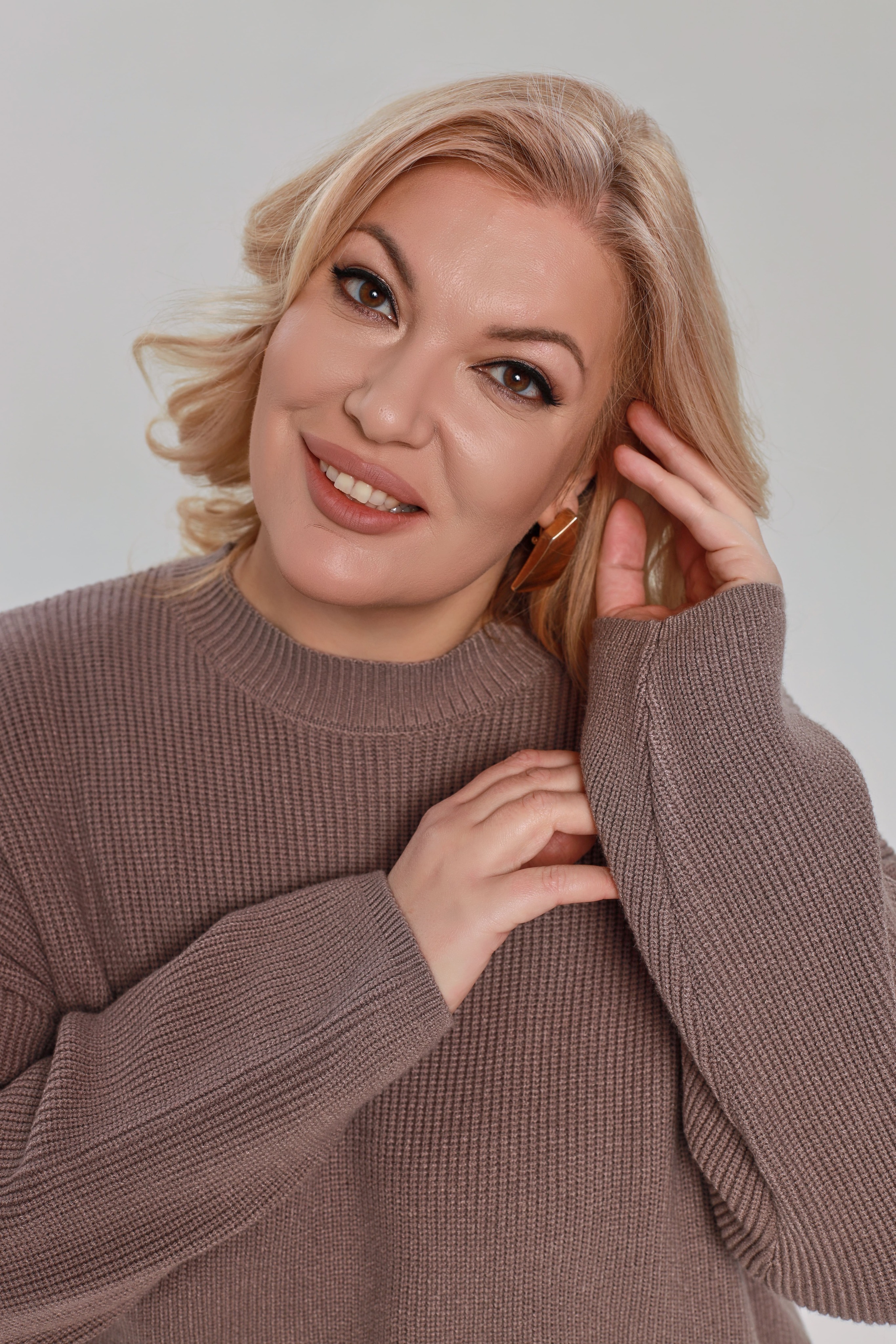 Свитер с круглым вырезом бежевый
