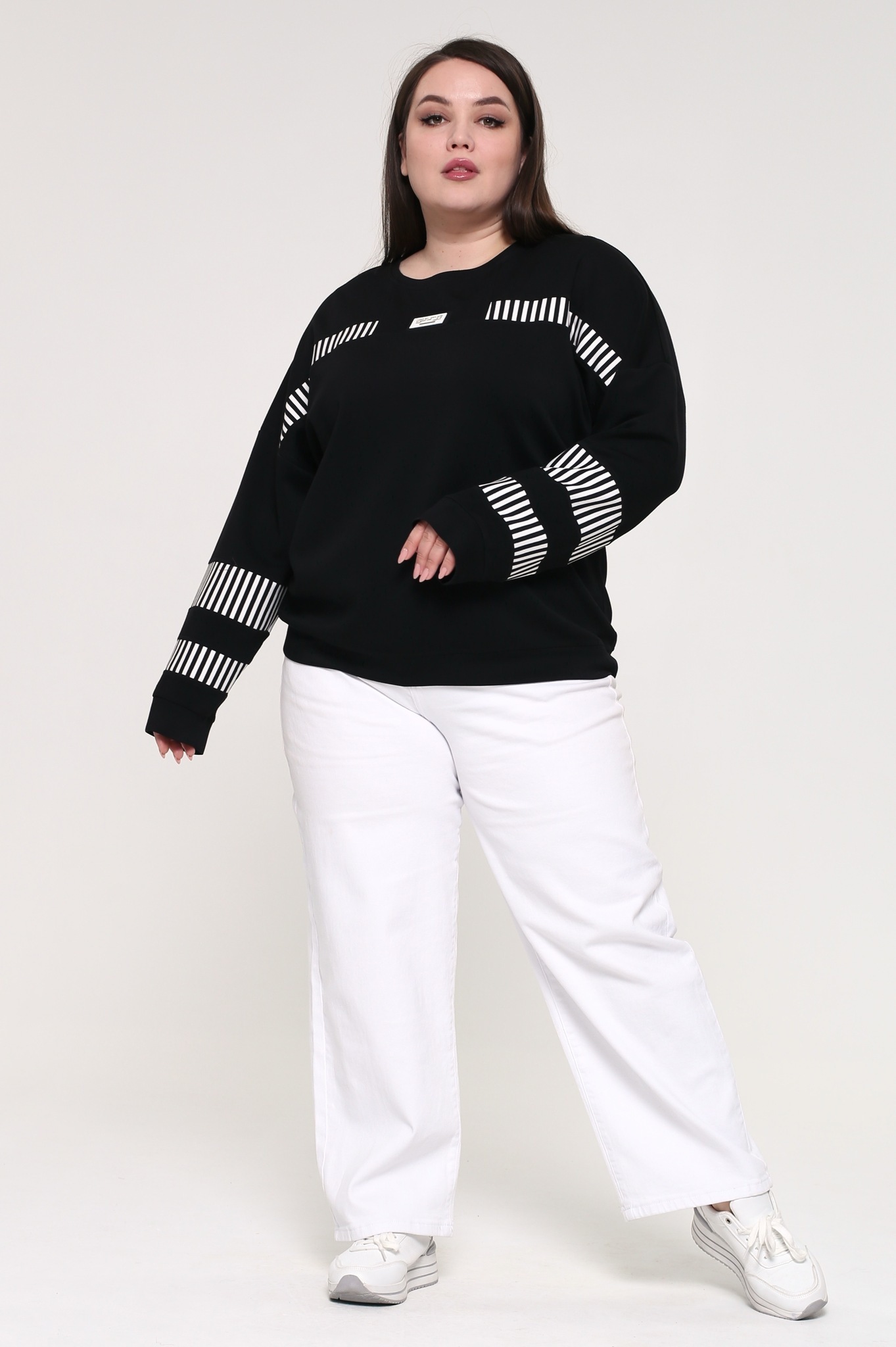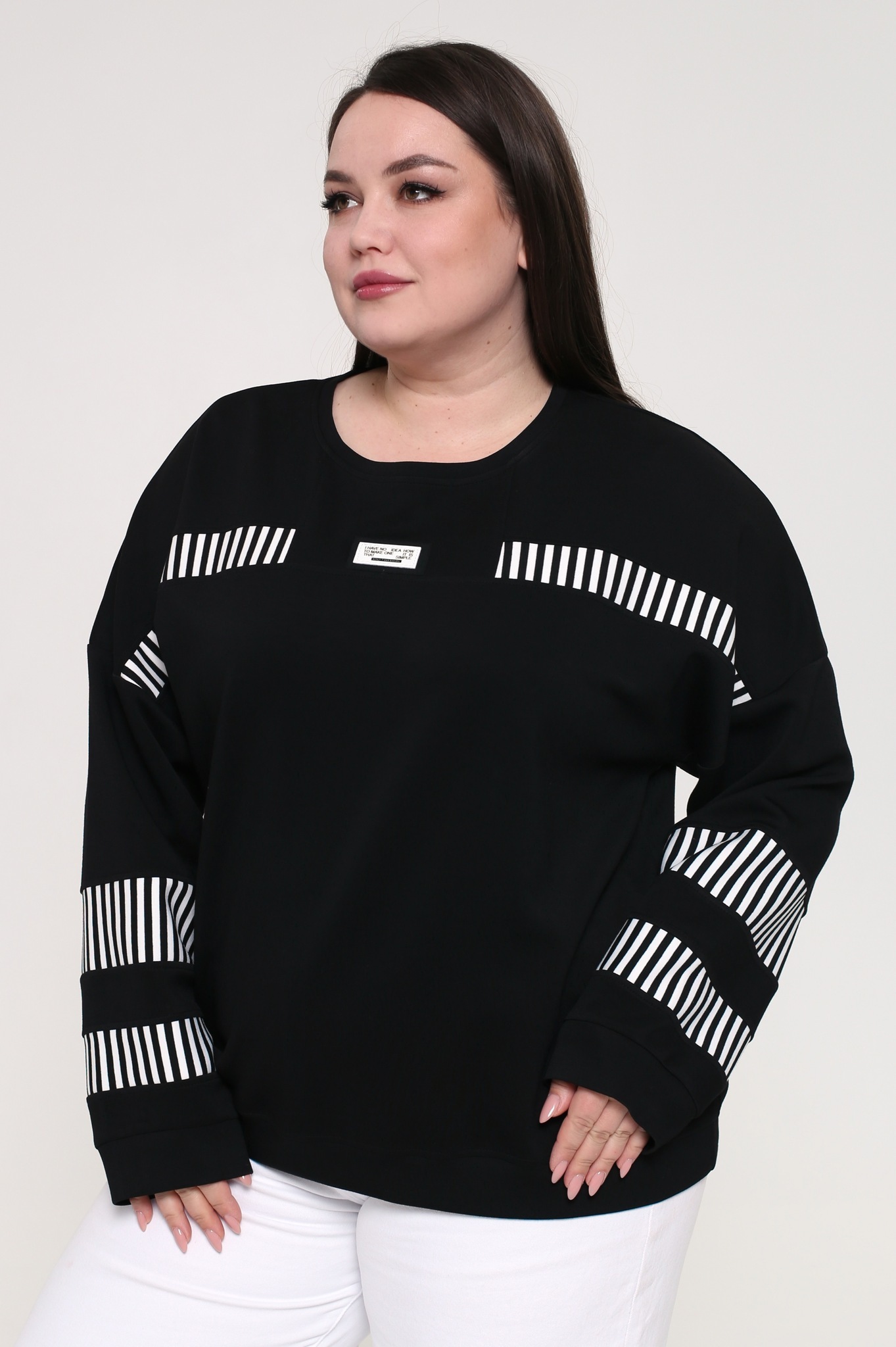Свитшот с белыми вставками в полоску черный