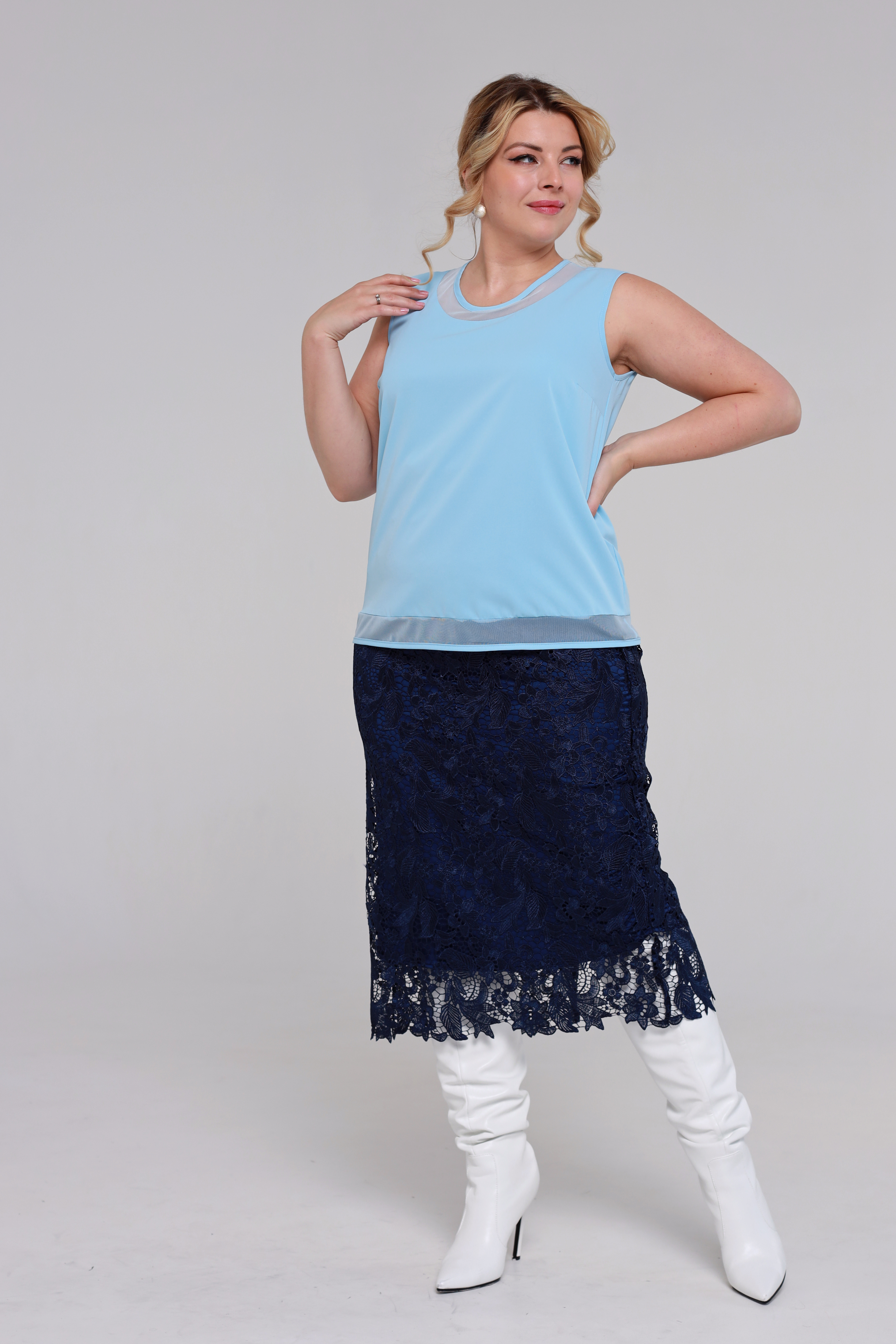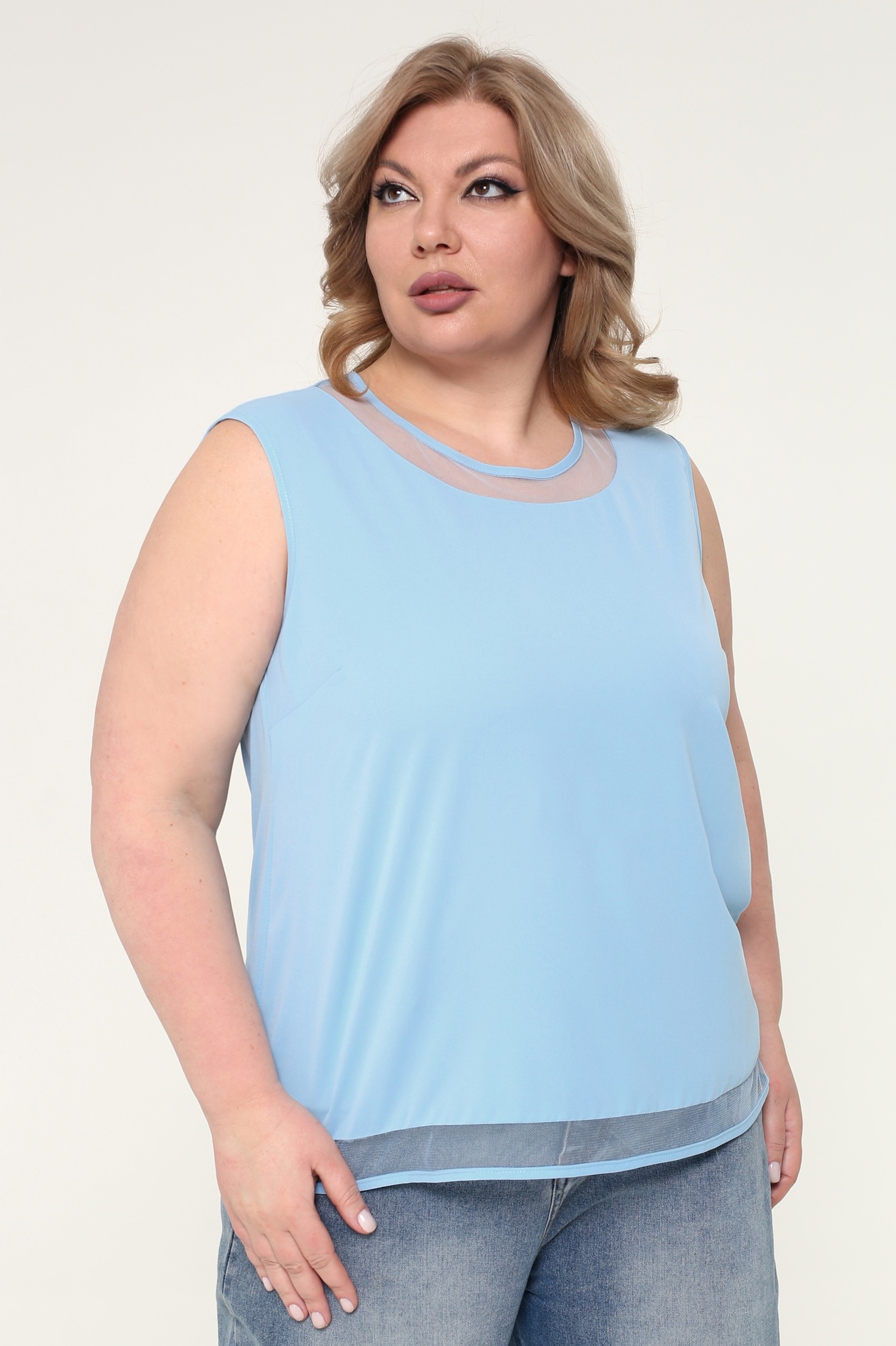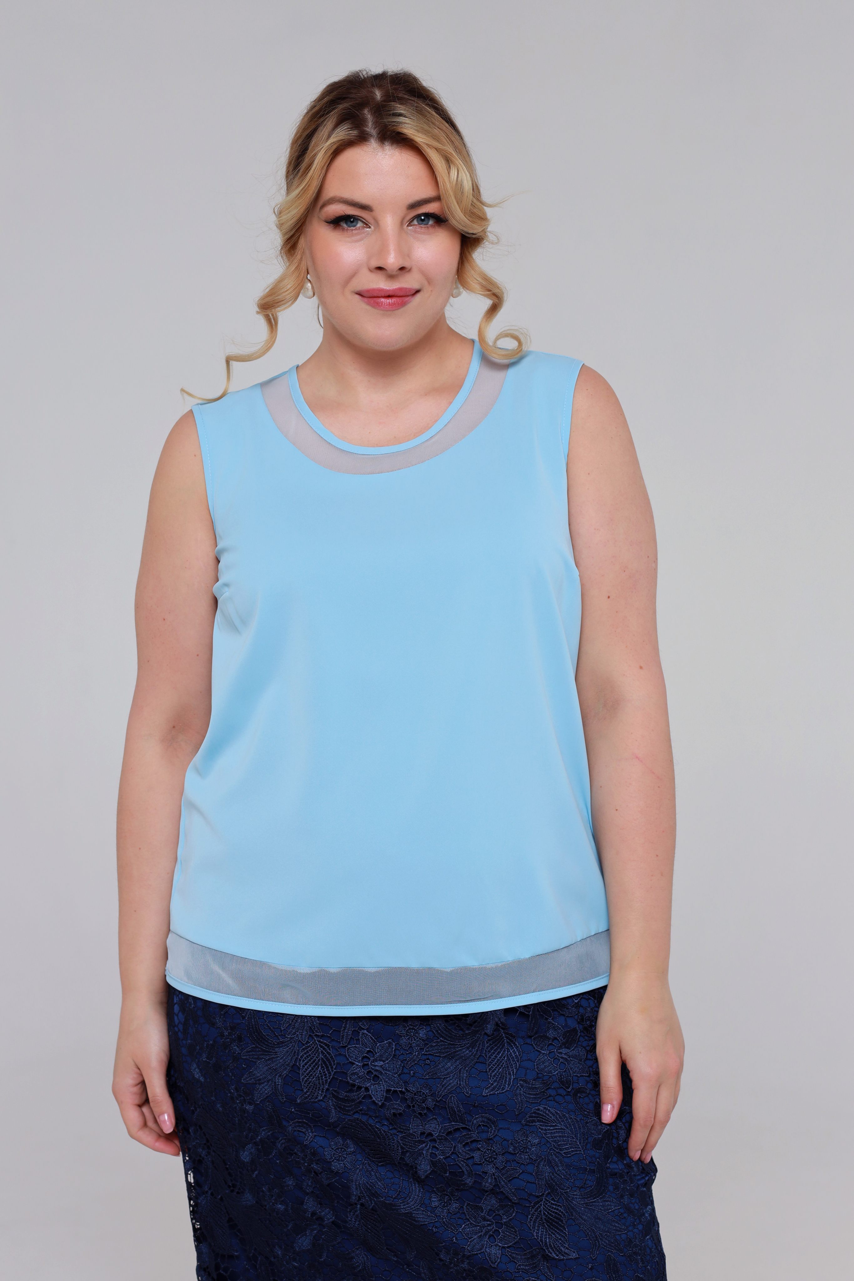 Топ однотонный с круглым вырезом, дополненный прозрачной вставкой голубой