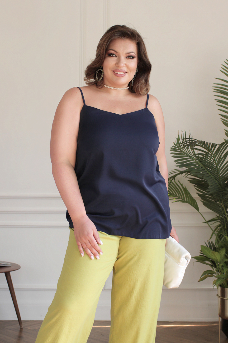 Классический однотонный топ свободного кроя из струящегося материала на регулируемых тонких бретелях. v-образный вырез добавляет модели женственности и романтизма. модель можно комбинировать с юбками и брюками, также будет хорошей базой под пиджаки и жакеты. топ позволяет выглядеть стильно при минимальных финансовых затратах.